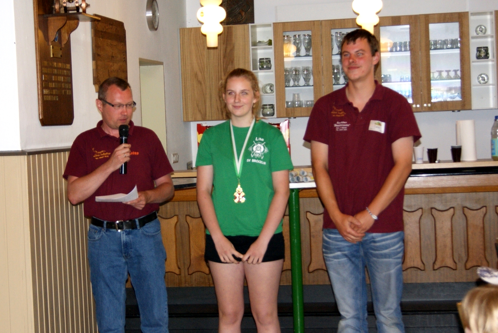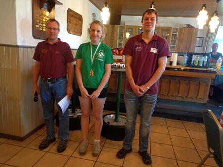 Die Kinderkönigin des KV I, Lisa Reuter, umrahmt von Jugendsportleiter Jörg Picker und seinem Stellvertreter Daniel Wilker (Foto Hartmut Weber-Bockhop)