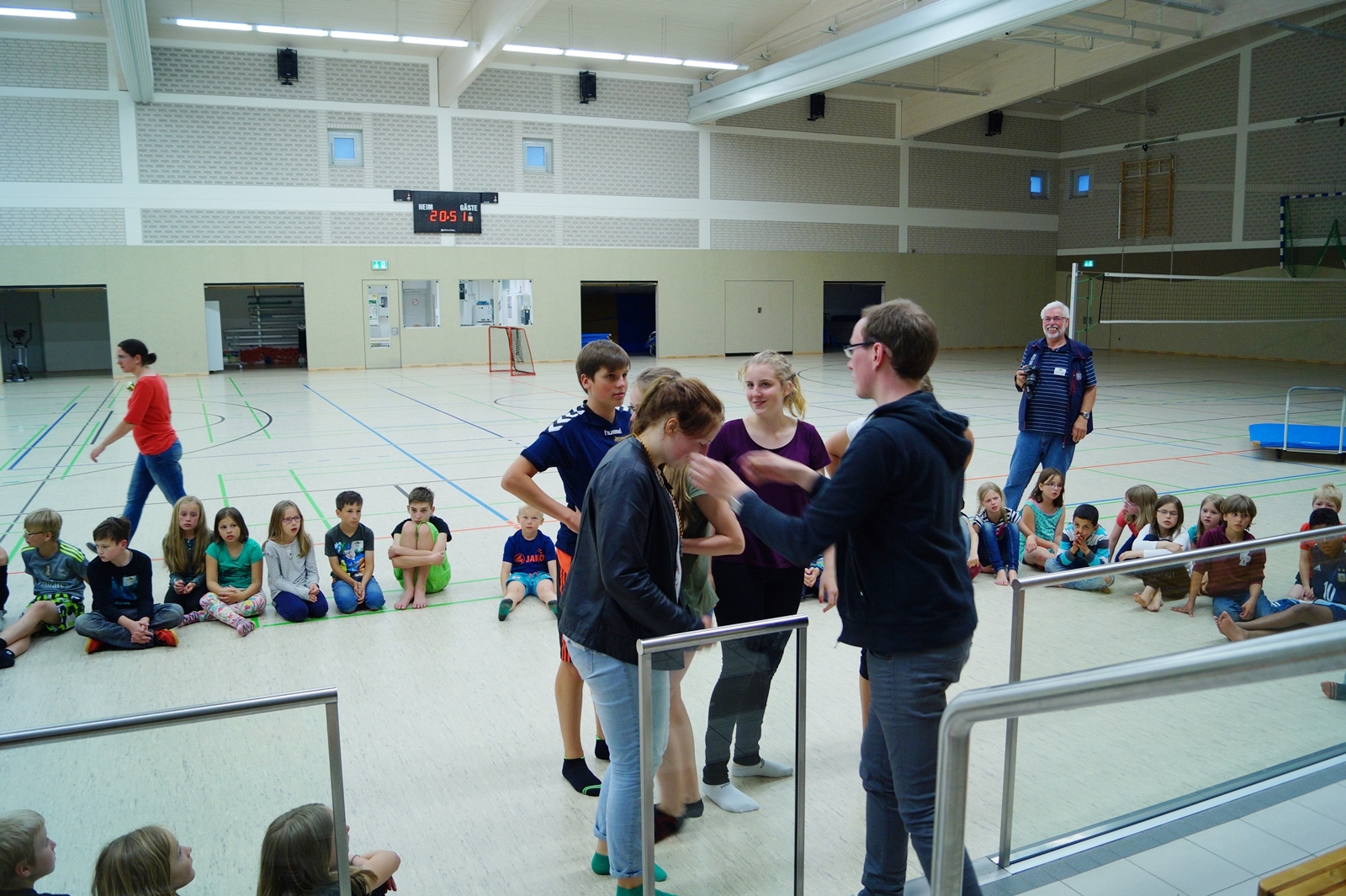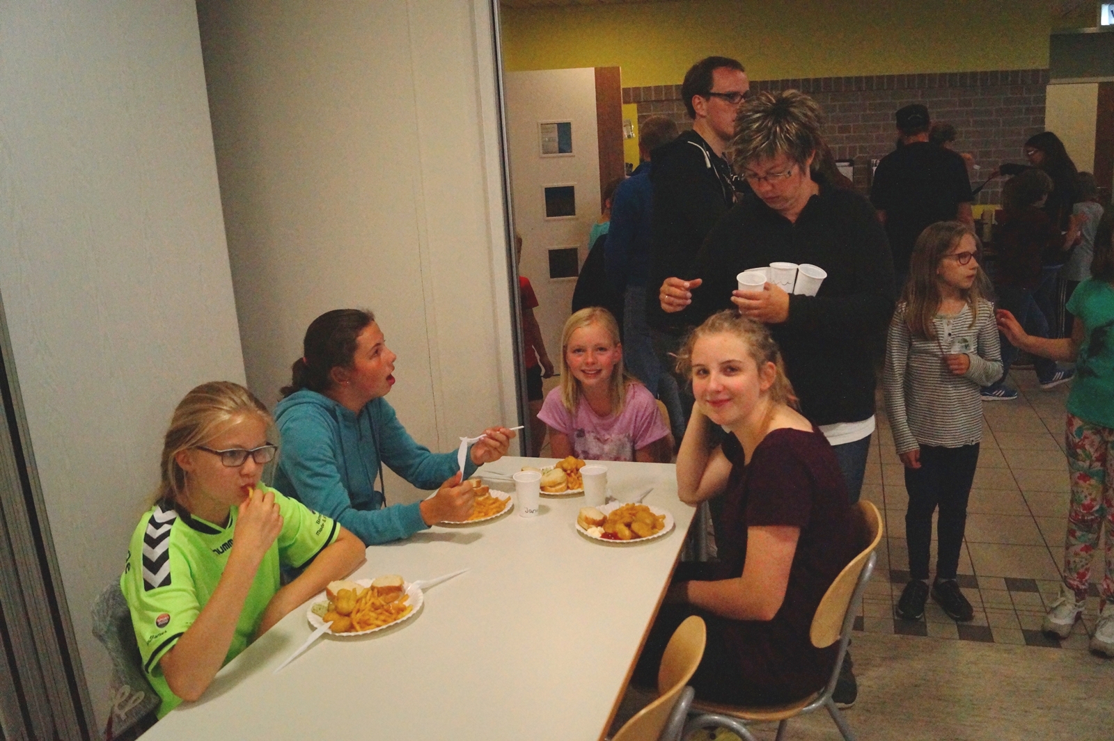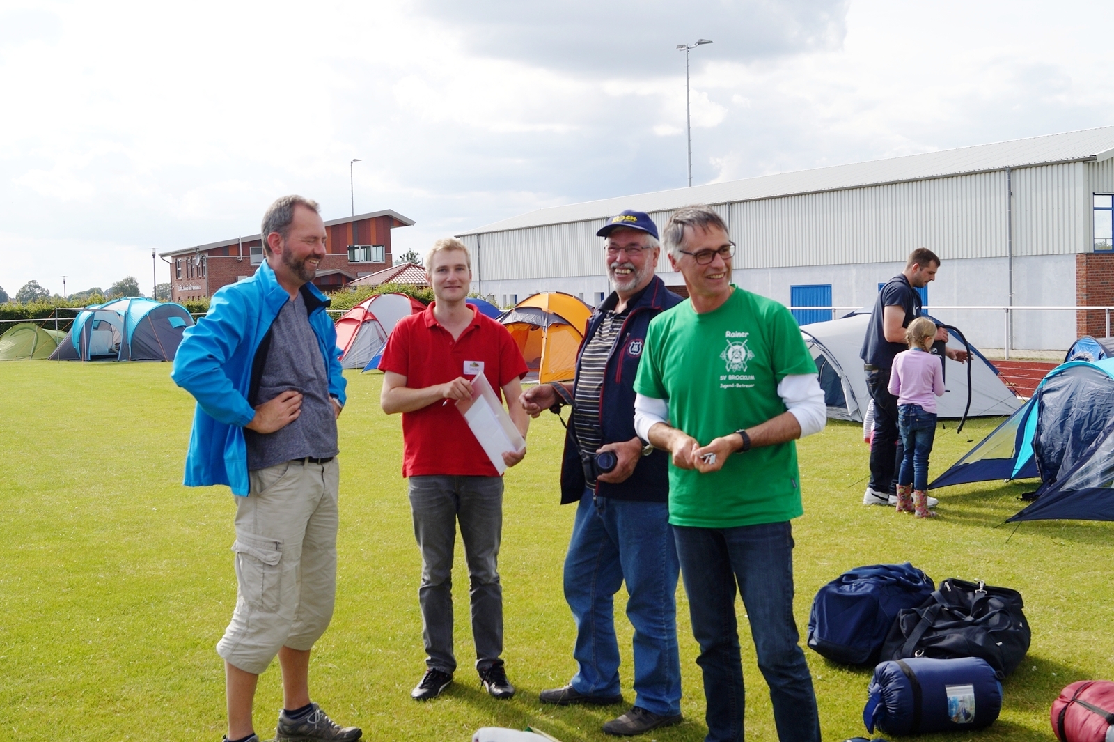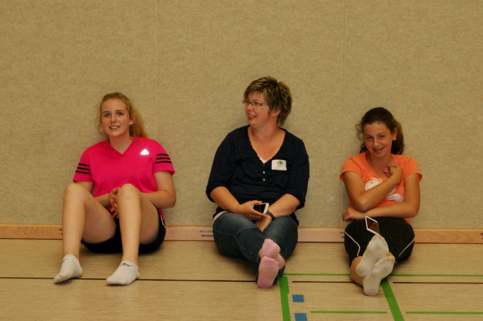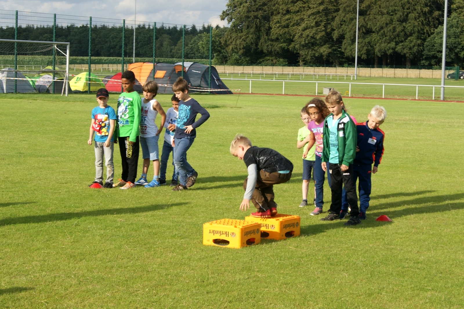 Auch der Staffellauf am nächsten Tag hatte es in sich, da im Rund des Stadions an sechs Stationen verschiedene Aufgaben bewältigt werden mussten wie Sackhüpfen oder Hindernisse. Die Siegerehrung am Abend ergab, dass „Die Großen“ in der Besetzung Ronja Finkenstädt, Johanna Grewe, Erik Wehrmann, Alexa Thrien und Lisa Reuter gewonnen hatten, aber es wurde nicht bierernst genommen, da für alle Teilnehmer Preise bereitstanden. Zwischendurch konnte aber auch eine Auszeit genommen werden, wobei das Spielmobil des Landkreises Diepholz wertvolle Dienste leistete. Hatte Petrus sich bis dahin von seiner guten Seite gezeigt, so ließ er in der Nacht auf Sonntag einen heftigen Regenschauer runtergehen, der einige Zelte unter Wasser setzte und die Bewohner veranlasste, ihre Schlafsäcke in der Sporthalle aufzuschlagen.