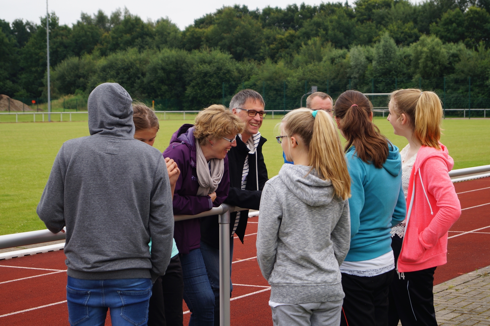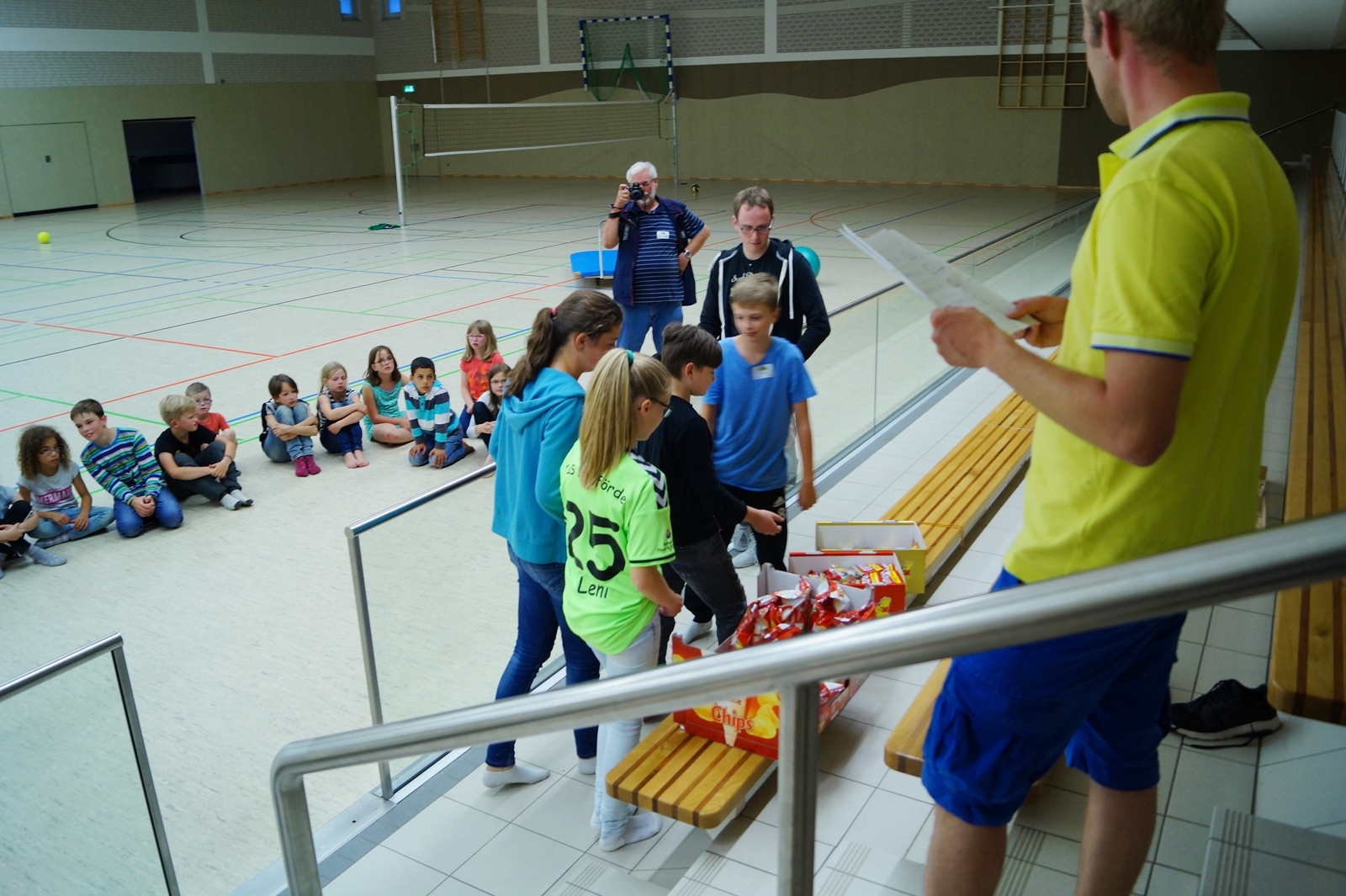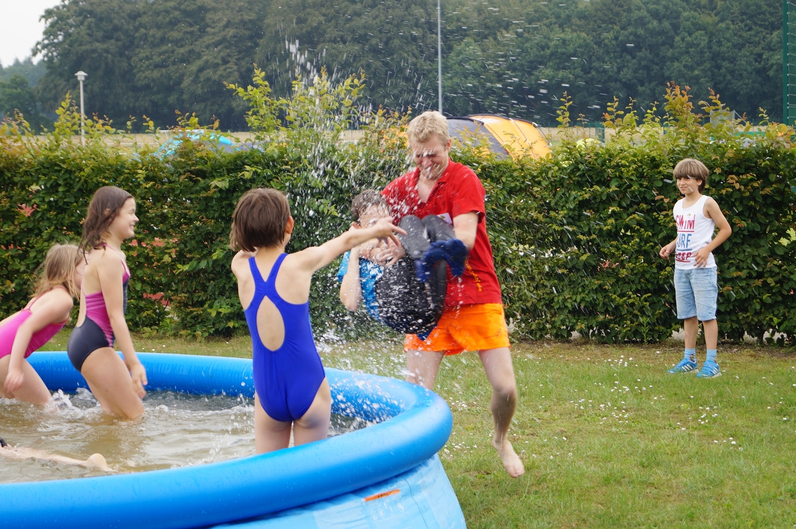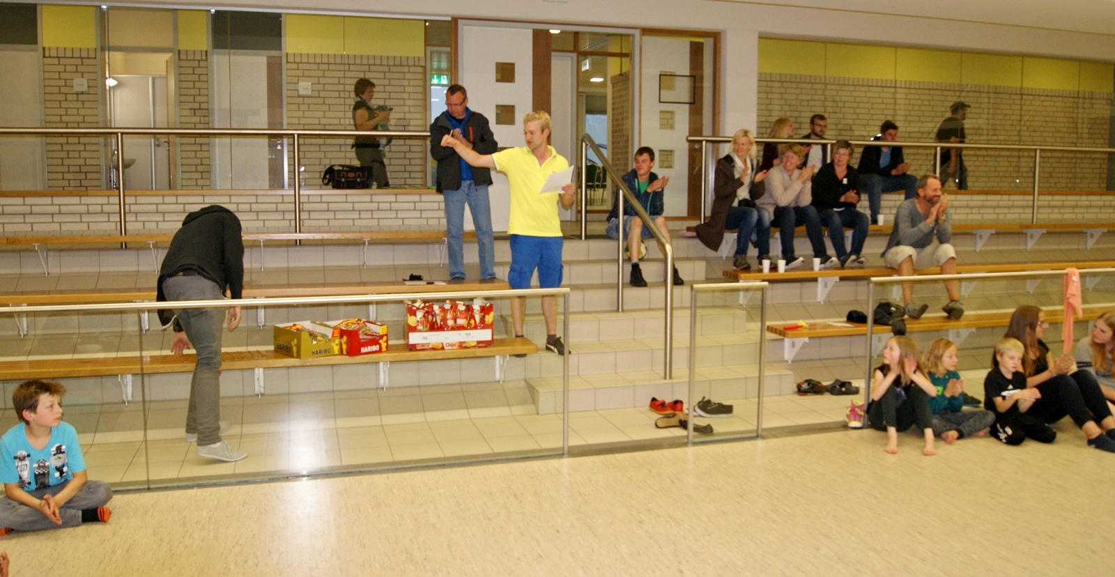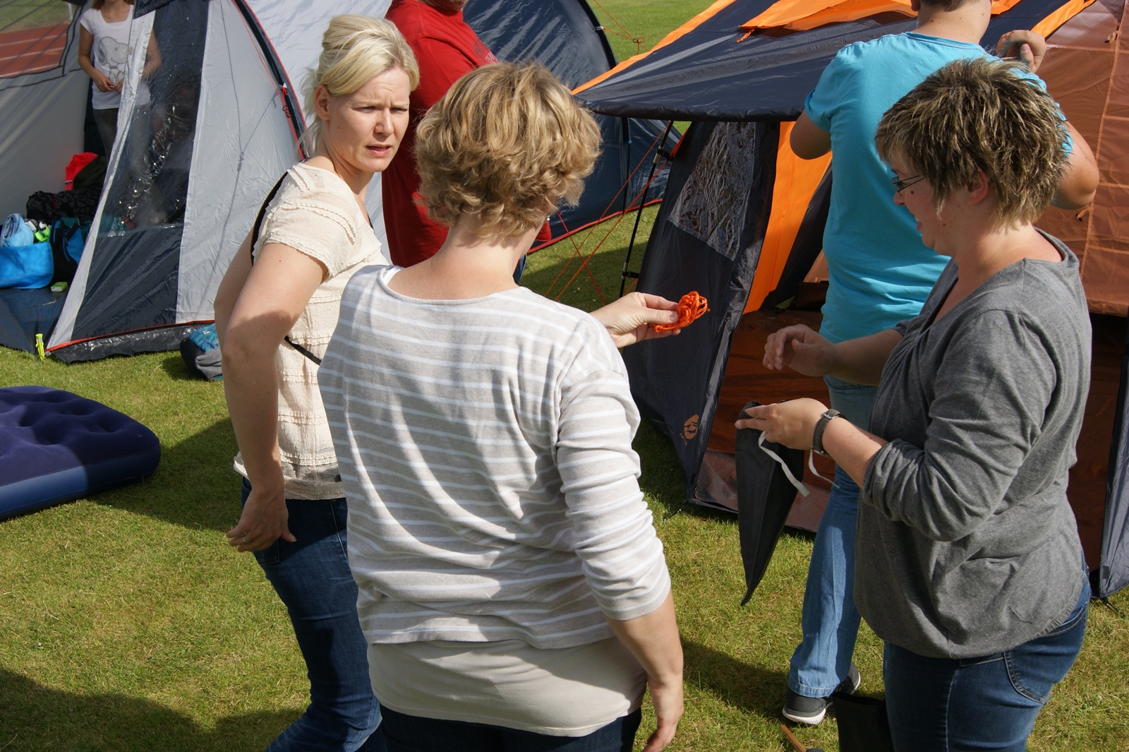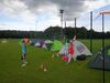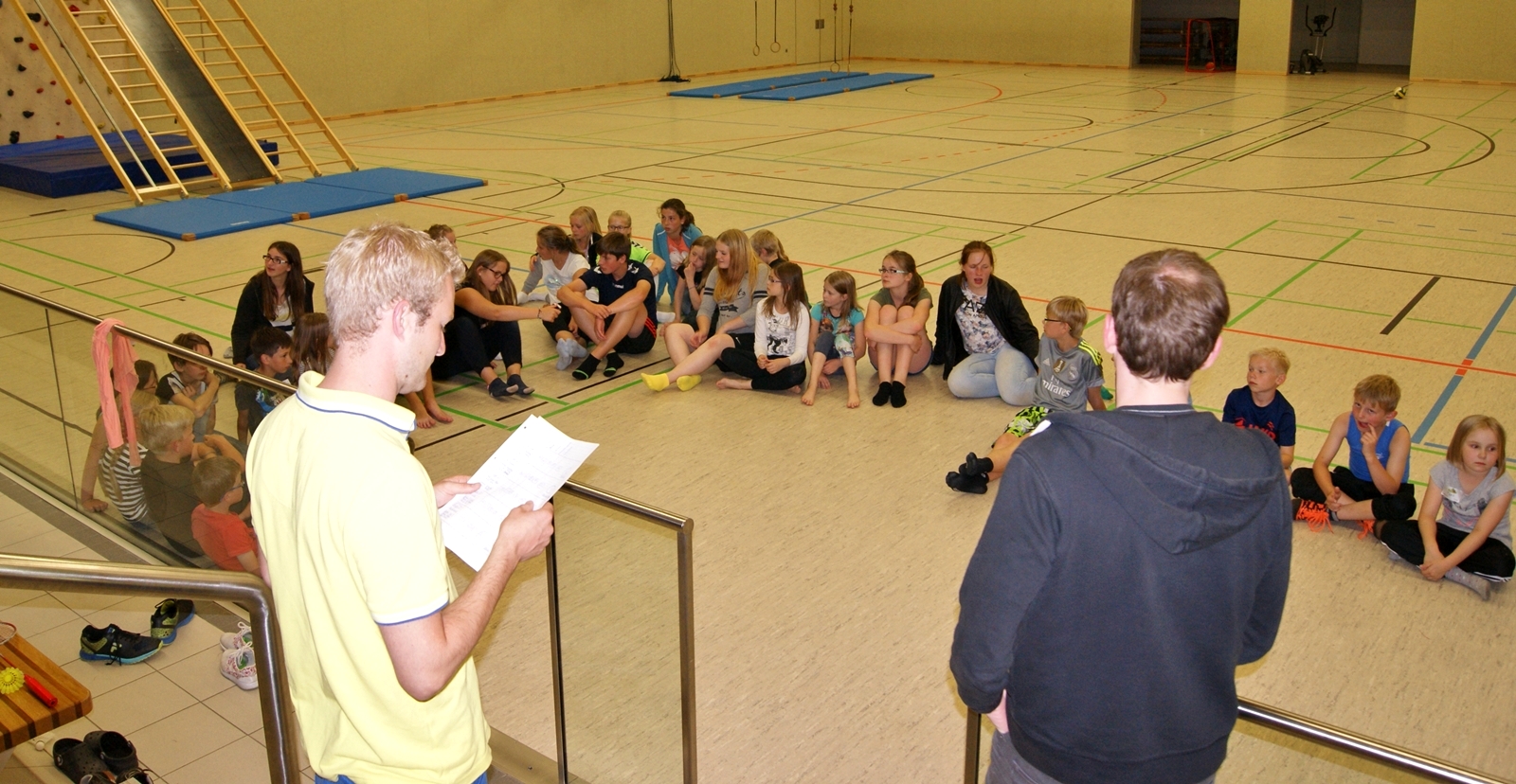 Auch der Staffellauf am nächsten Tag hatte es in sich, da im Rund des Stadions an sechs Stationen verschiedene Aufgaben bewältigt werden mussten wie Sackhüpfen oder Hindernisse. Die Siegerehrung am Abend ergab, dass „Die Großen“ in der Besetzung Ronja Finkenstädt, Johanna Grewe, Erik Wehrmann, Alexa Thrien und Lisa Reuter gewonnen hatten, aber es wurde nicht bierernst genommen, da für alle Teilnehmer Preise bereitstanden. Zwischendurch konnte aber auch eine Auszeit genommen werden, wobei das Spielmobil des Landkreises Diepholz wertvolle Dienste leistete. Hatte Petrus sich bis dahin von seiner guten Seite gezeigt, so ließ er in der Nacht auf Sonntag einen heftigen Regenschauer runtergehen, der einige Zelte unter Wasser setzte und die Bewohner veranlasste, ihre Schlafsäcke in der Sporthalle aufzuschlagen.
