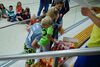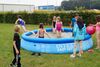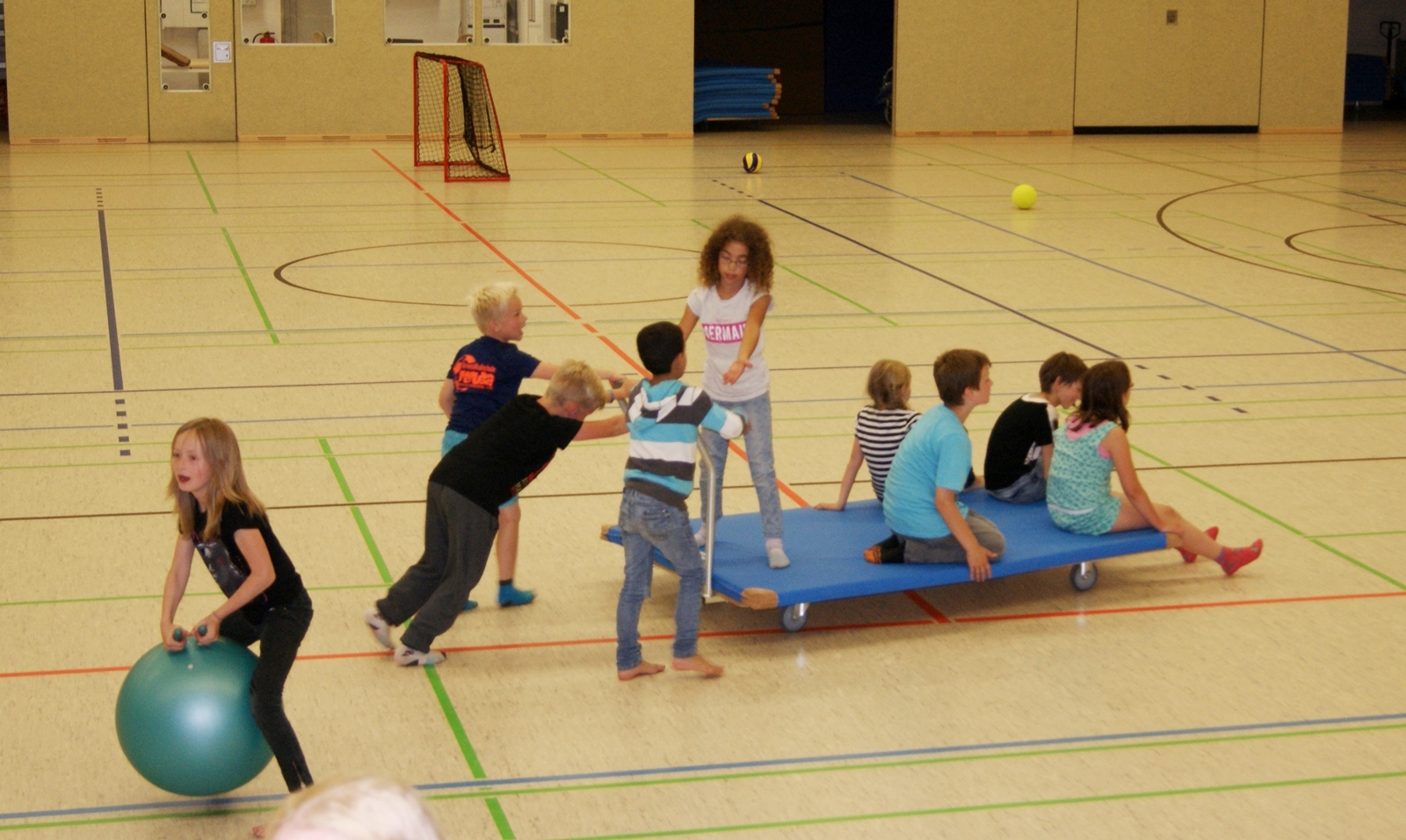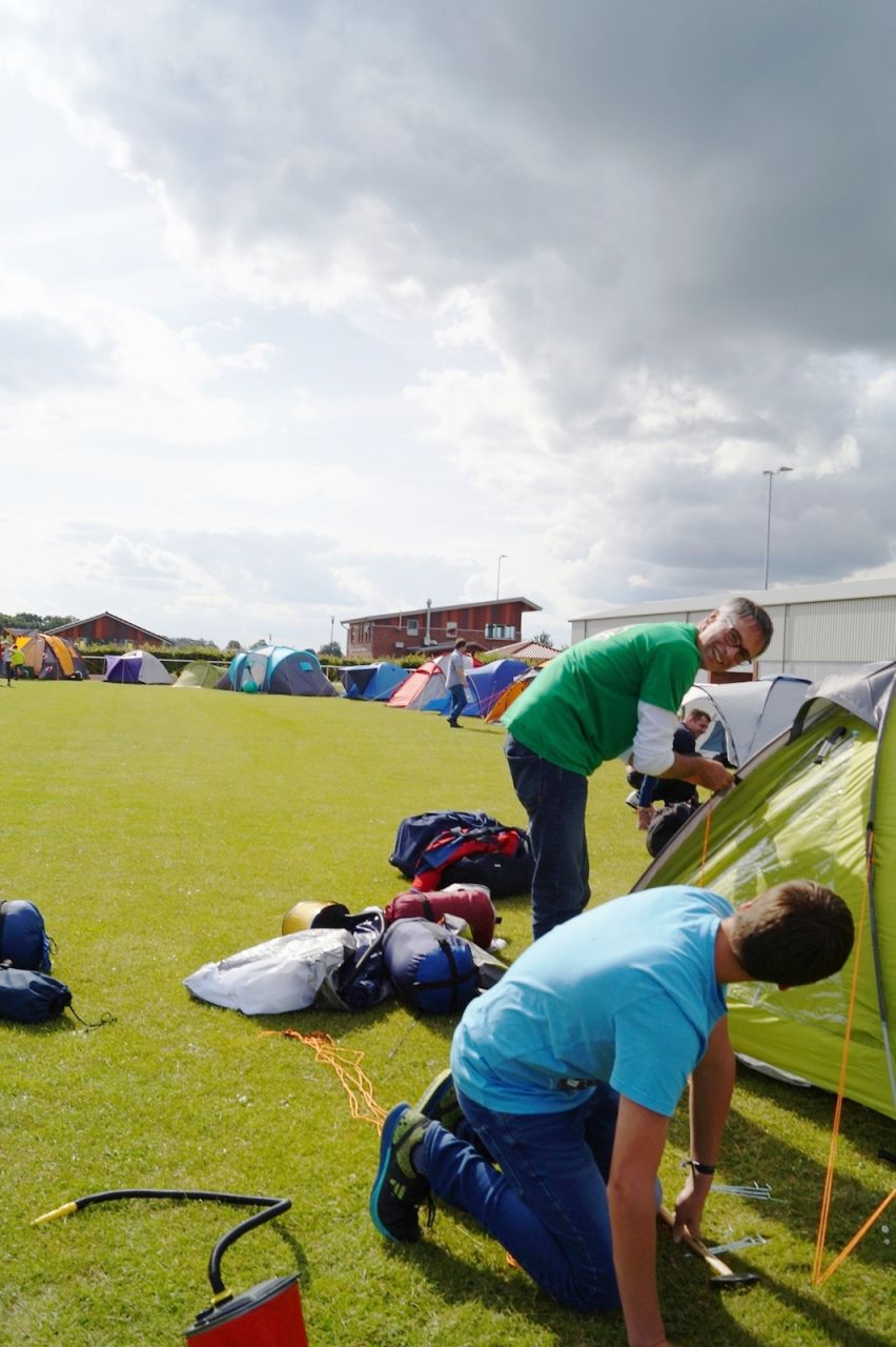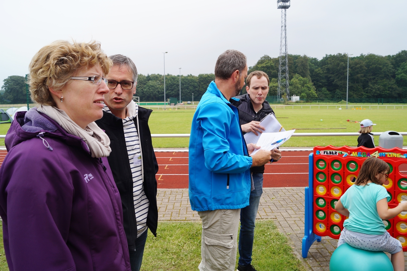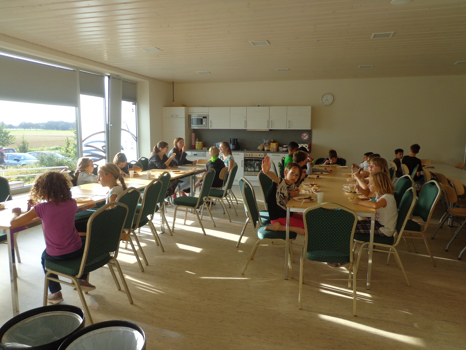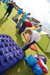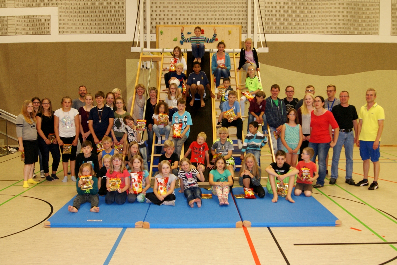 Auch der Staffellauf am nächsten Tag hatte es in sich, da im Rund des Stadions an sechs Stationen verschiedene Aufgaben bewältigt werden mussten wie Sackhüpfen oder Hindernisse. Die Siegerehrung am Abend ergab, dass „Die Großen“ in der Besetzung Ronja Finkenstädt, Johanna Grewe, Erik Wehrmann, Alexa Thrien und Lisa Reuter gewonnen hatten, aber es wurde nicht bierernst genommen, da für alle Teilnehmer Preise bereitstanden. Zwischendurch konnte aber auch eine Auszeit genommen werden, wobei das Spielmobil des Landkreises Diepholz wertvolle Dienste leistete. Hatte Petrus sich bis dahin von seiner guten Seite gezeigt, so ließ er in der Nacht auf Sonntag einen heftigen Regenschauer runtergehen, der einige Zelte unter Wasser setzte und die Bewohner veranlasste, ihre Schlafsäcke in der Sporthalle aufzuschlagen.