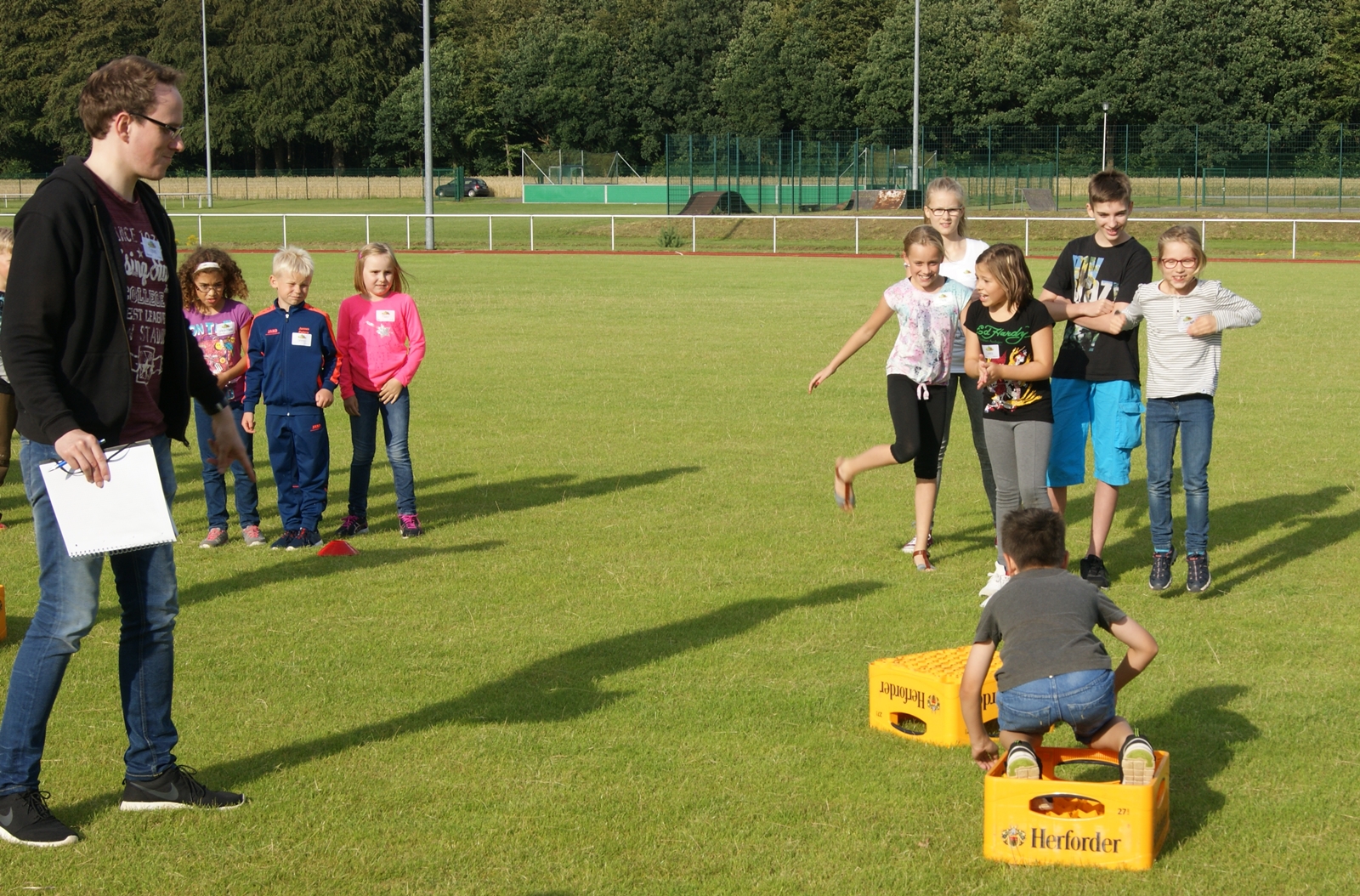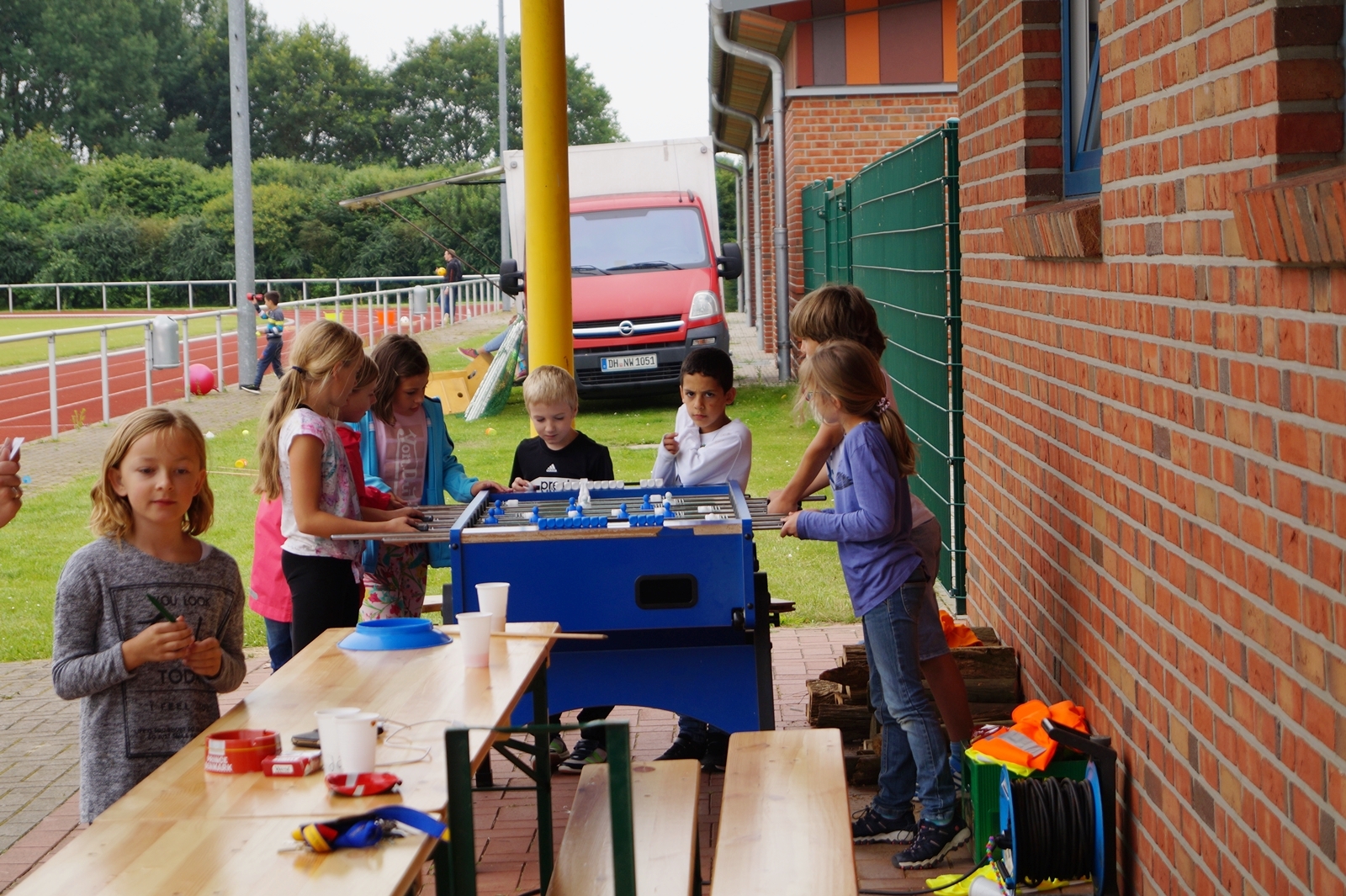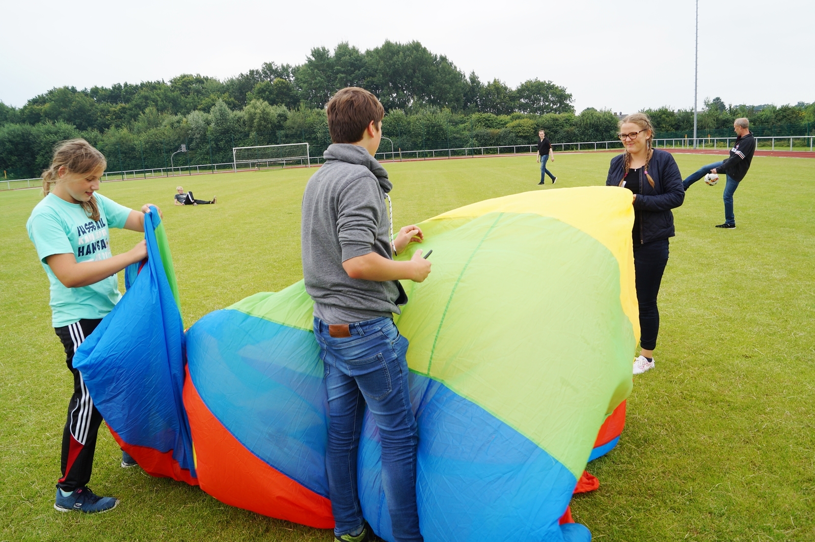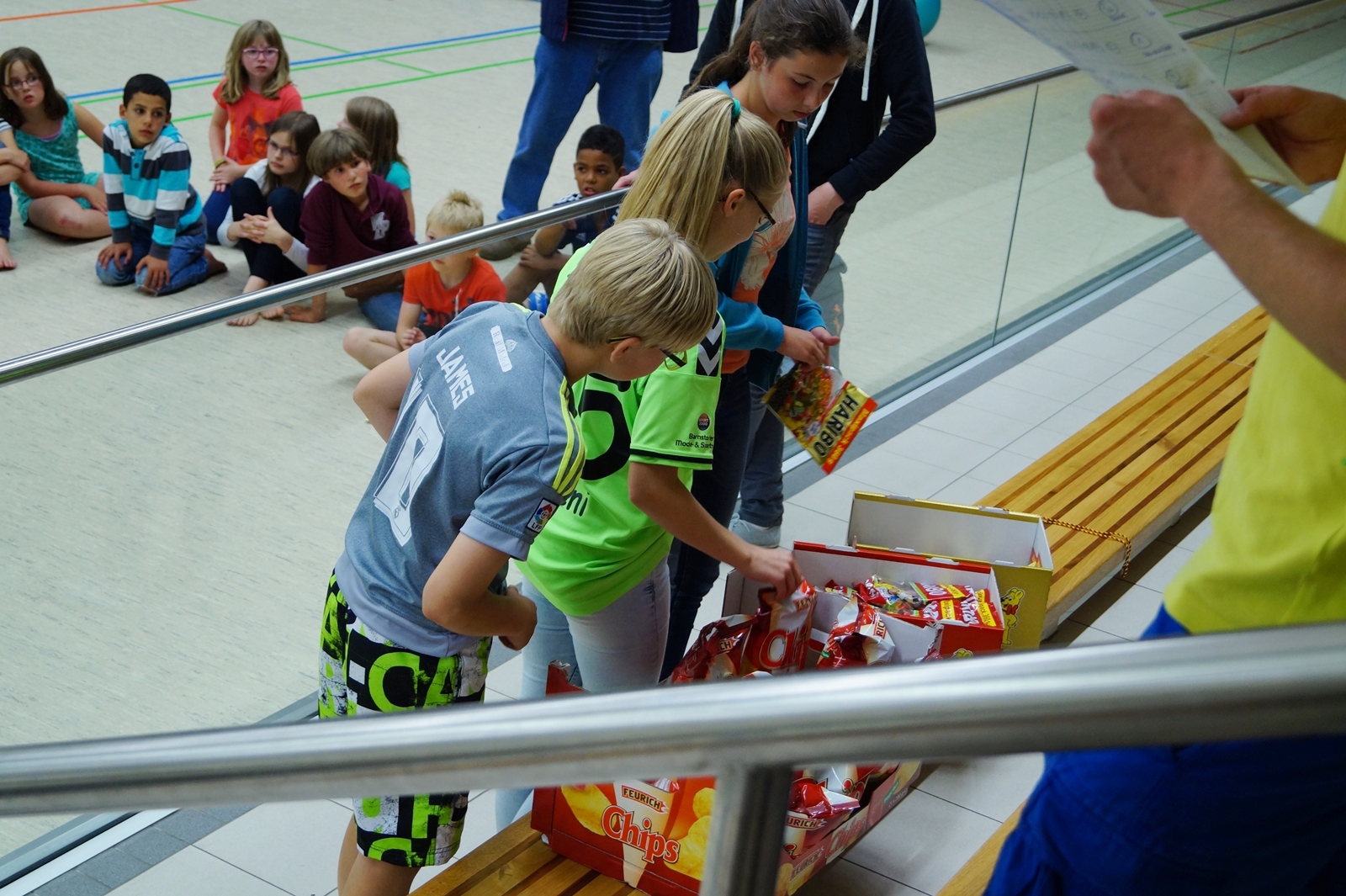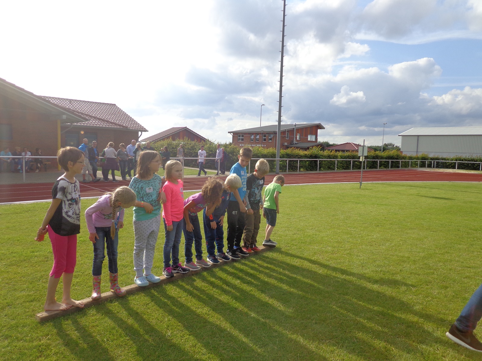 Vor Trinken und Futtern waren aber erstmal Gruppenspiele angesagt, die sich Tobias Winkelmann-Bünte ausgedacht hatte. Insgesamt wurden acht Teams gebildet, die sich mit Namen wie „Blondies“, „Ninjas“ oder „Mondlichter“ mit Begeisterung in verschiedene Aktionen stürzten wie auf dem Balkenbalancieren oder Kisten stapeln.