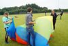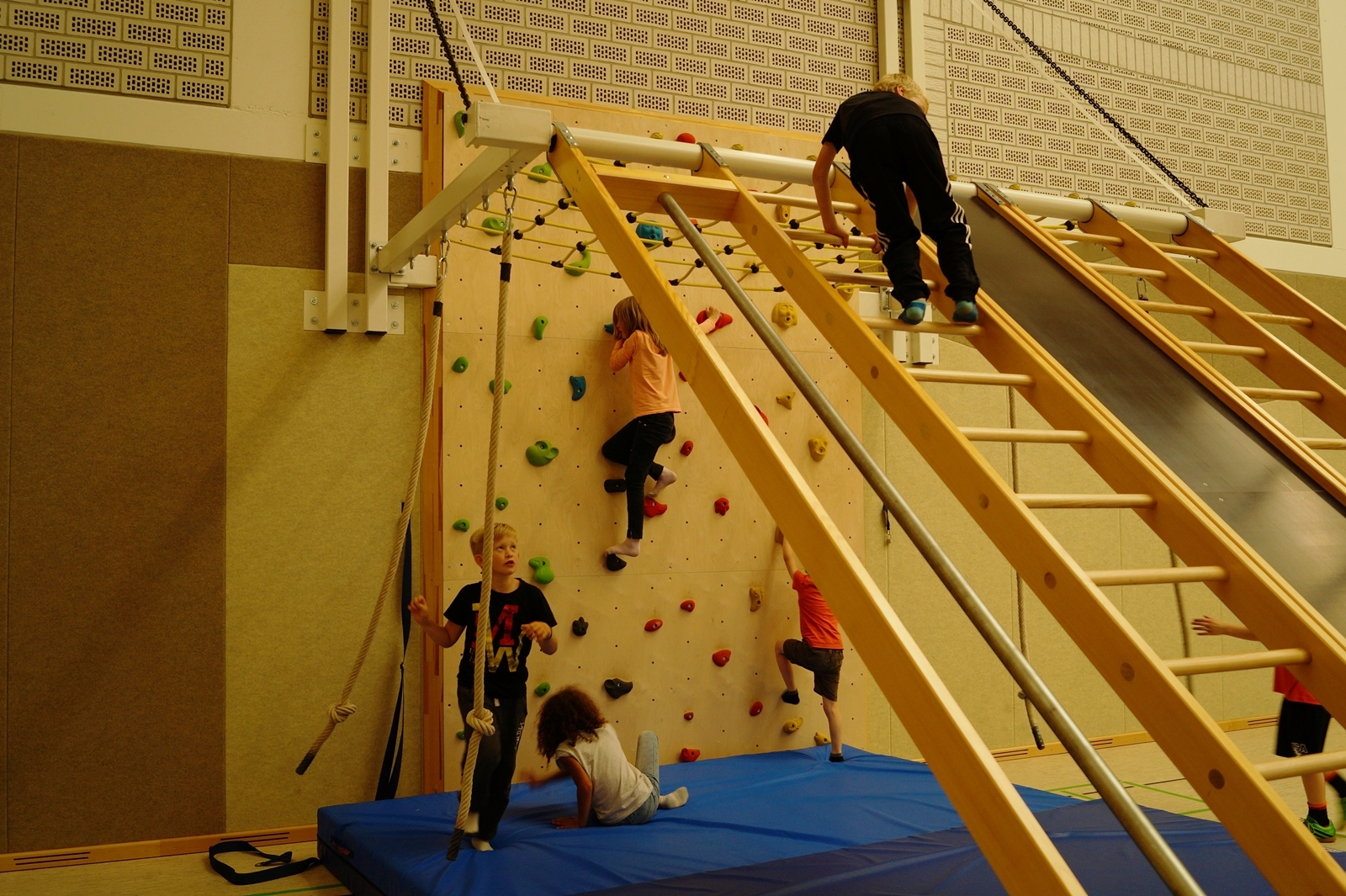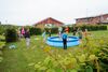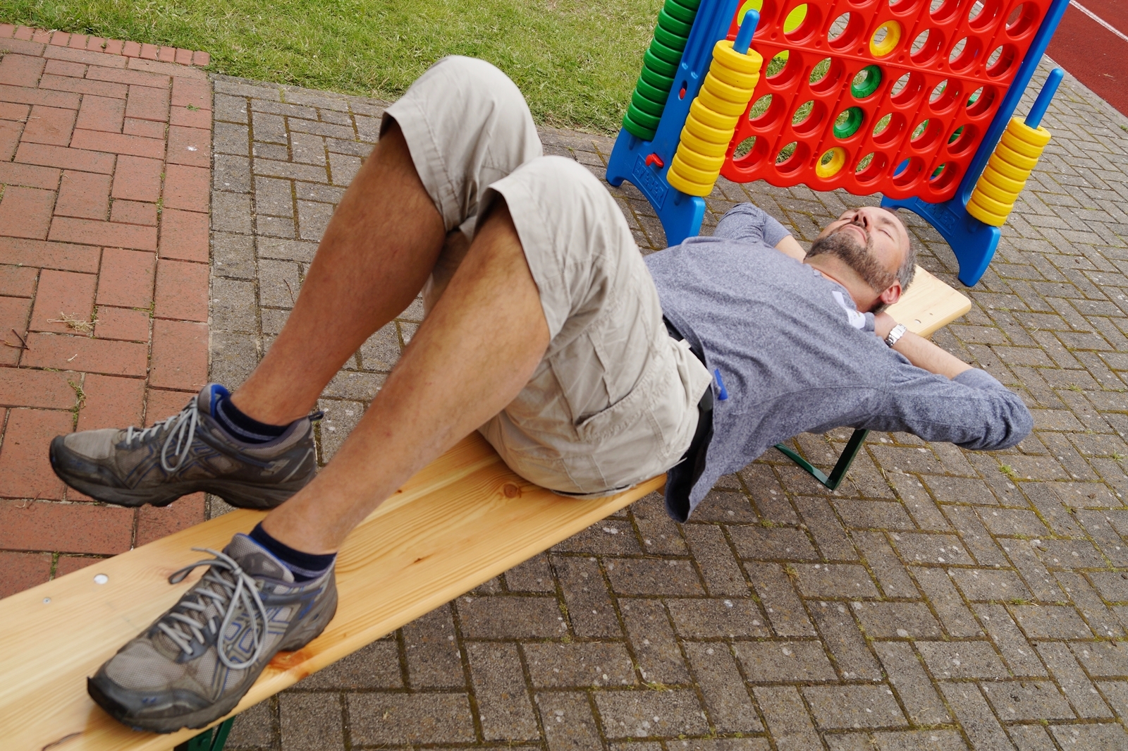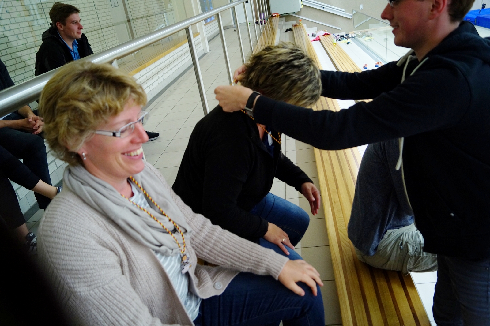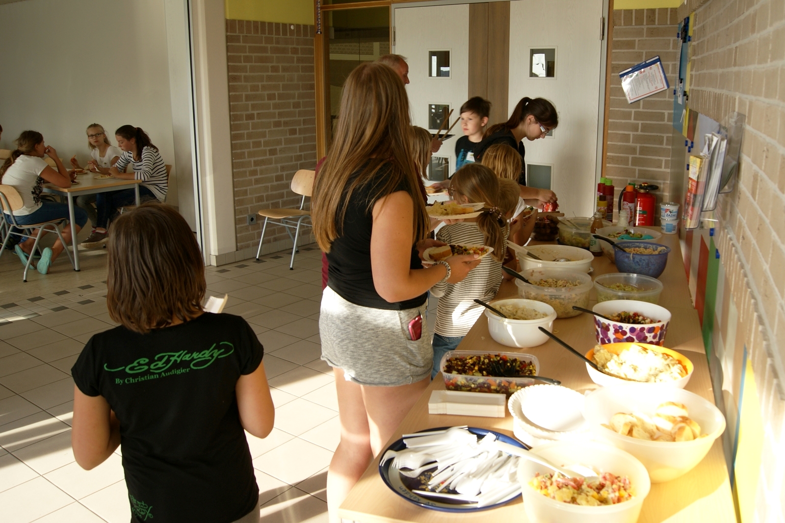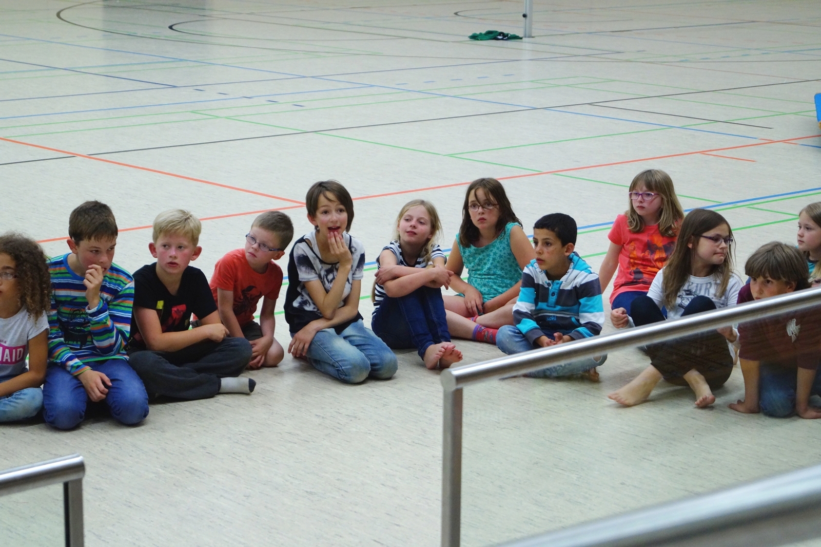 Vor Trinken und Futtern waren aber erstmal Gruppenspiele angesagt, die sich Tobias Winkelmann-Bünte ausgedacht hatte. Insgesamt wurden acht Teams gebildet, die sich mit Namen wie „Blondies“, „Ninjas“ oder „Mondlichter“ mit Begeisterung in verschiedene Aktionen stürzten wie auf dem Balkenbalancieren oder Kisten stapeln.