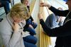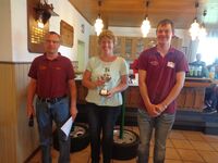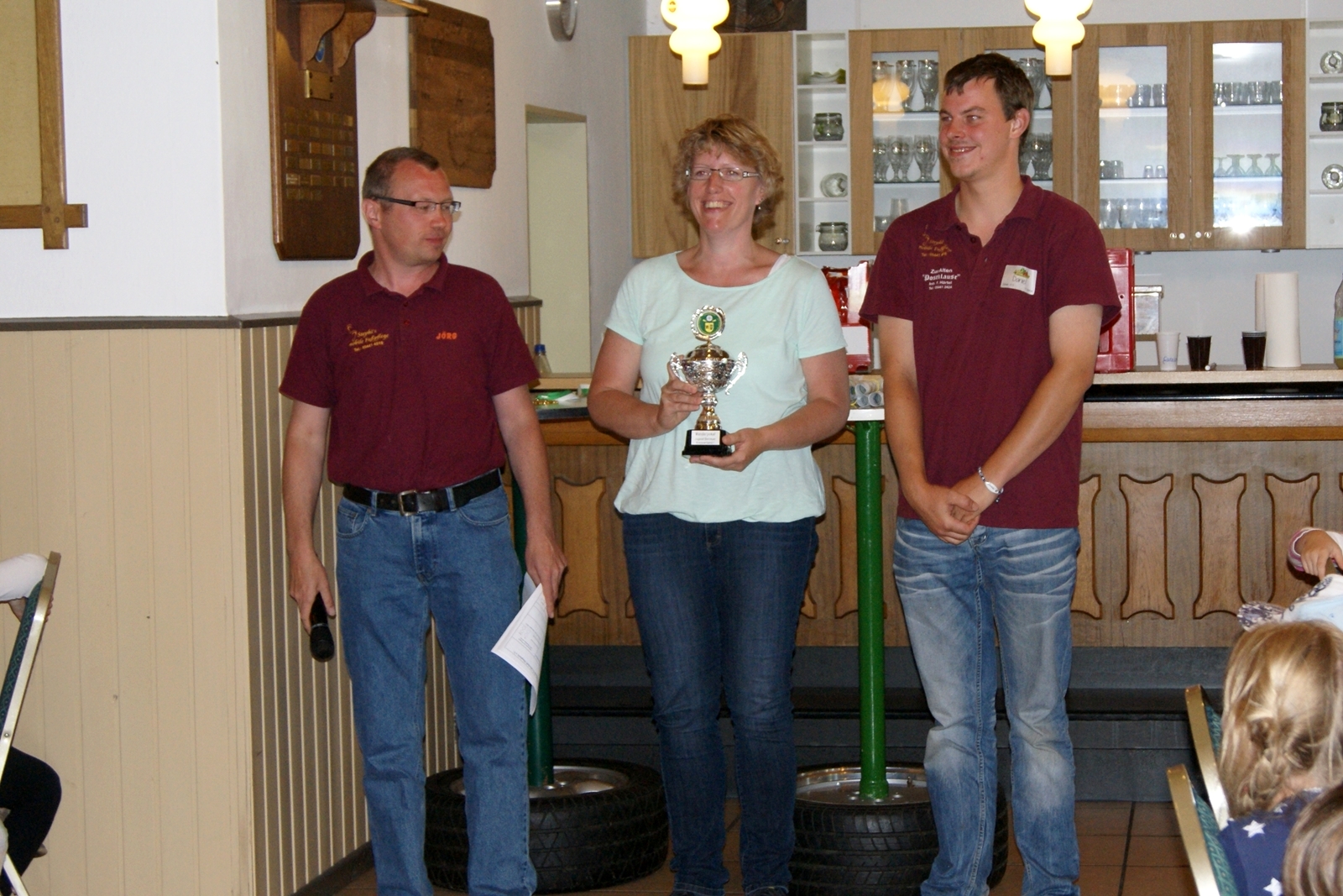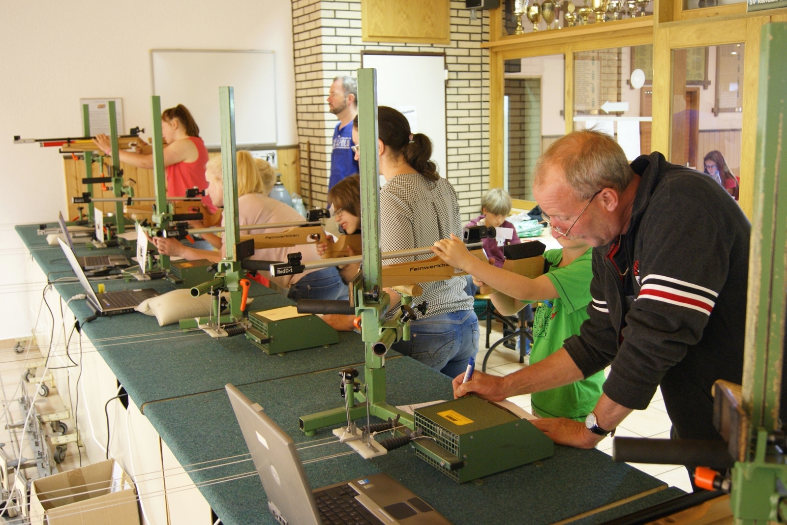 Beim Ausschießen des Betreuerpokals musste freihändig mit dem Lichtpunkt-Gewehr hantiert werden, was zu einigen Problemen führte, wobei Claudia Reuter aus Brockum die ruhigste Hand bewies vor Jörg Picker (Diepholz), Marion Telthörster vom Förderverein und Julia Langhorst (Rehden).