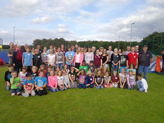 Erwartungsvoll blicken Kinder und Betreuer auf das Wochenende im Zeltlager (Foto Hartmut Weber-Bockhop)