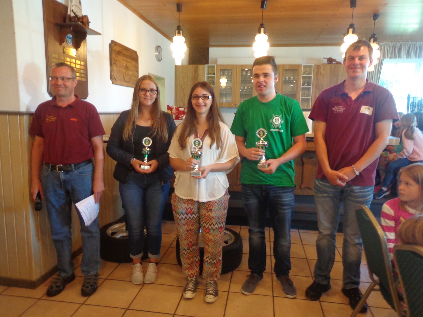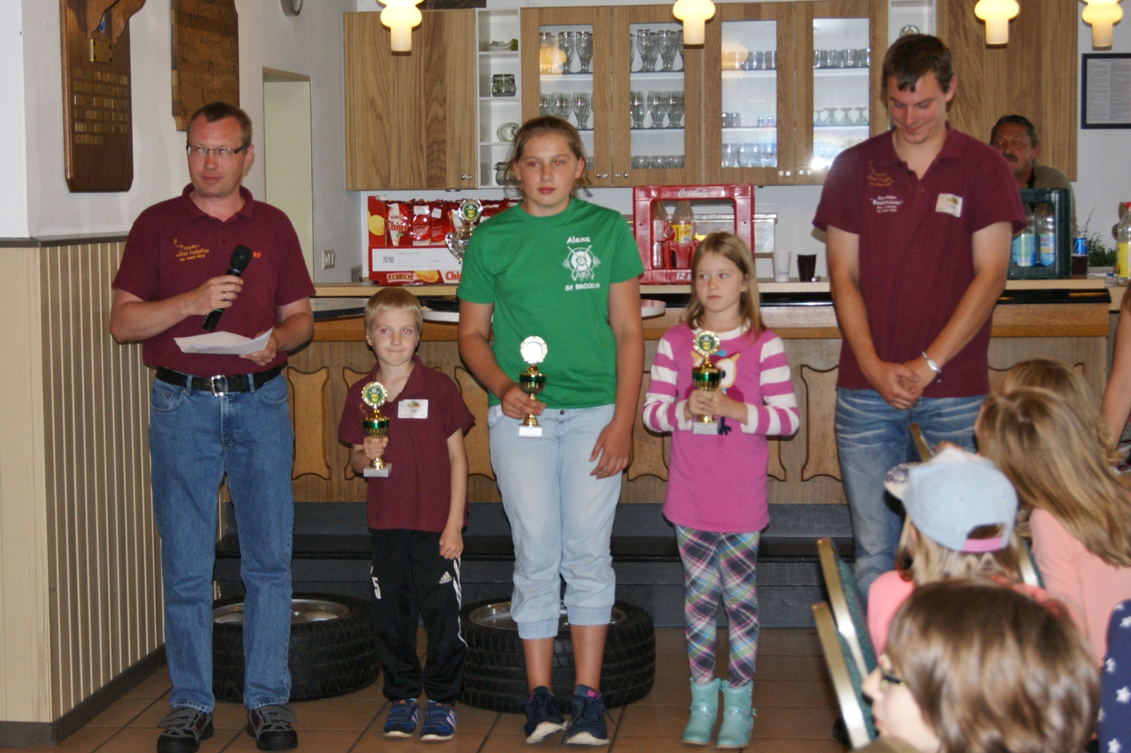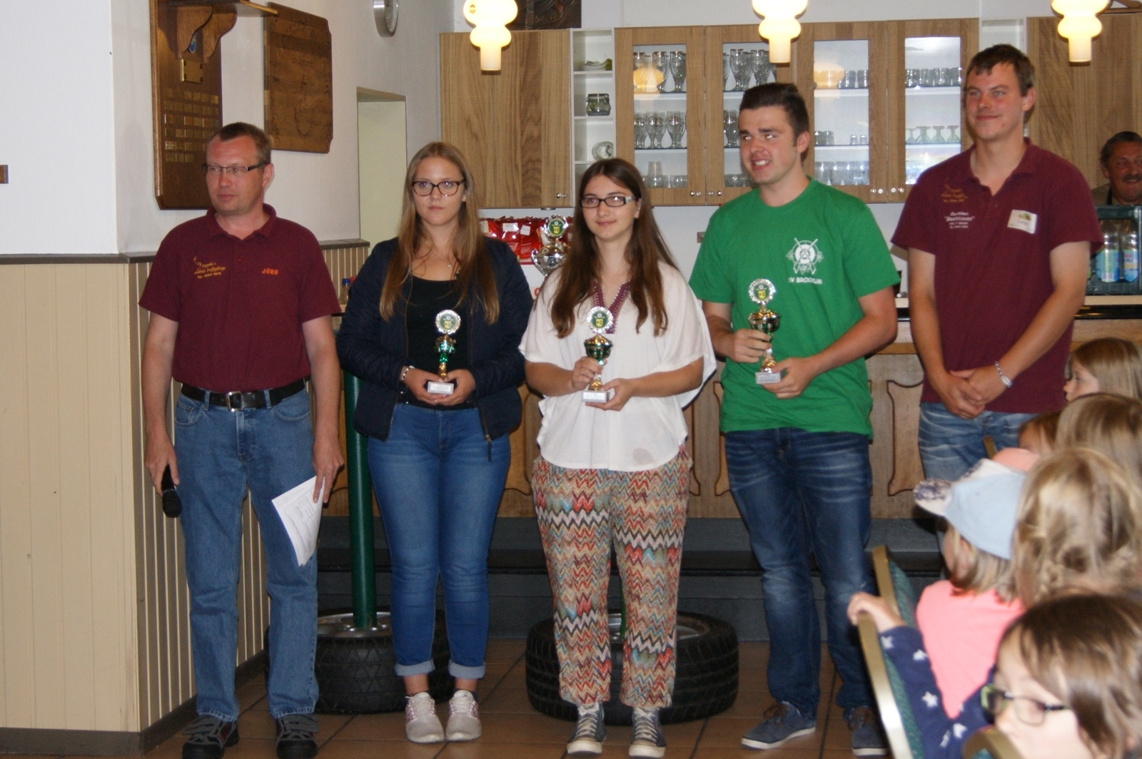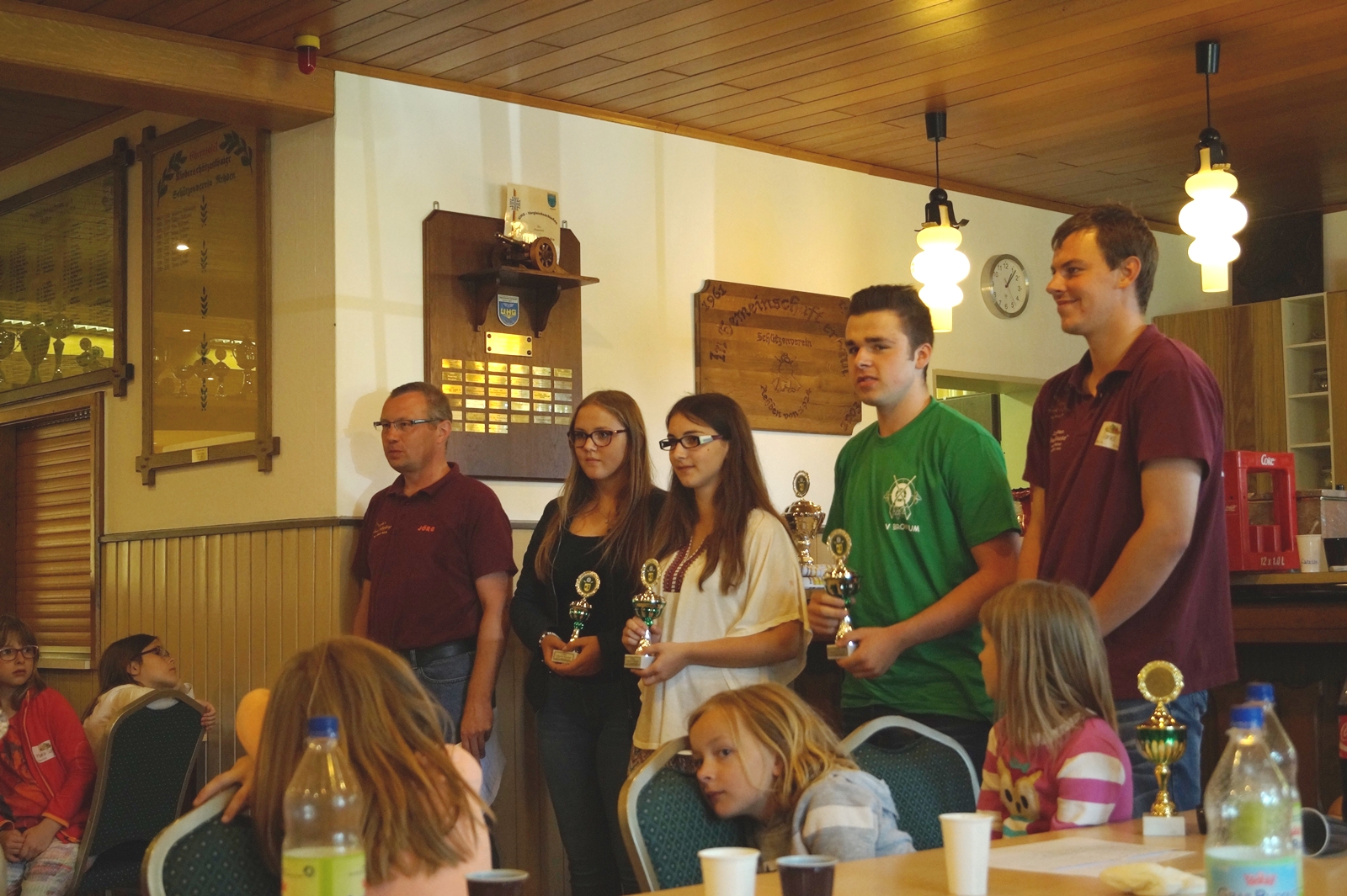 Am Sonntagmorgen wurden nach dem Frühstück die Zelte abgebaut, da der „Tag der Jugend“ des KV I in der Schützenhalle in Rehden stattfand, wo eine stattliche Anzahl von Pokalen auf ihre stolzen Besitzer wartete. Die Schießaufsicht hatte alle Hände voll zu tun, um die spannenden Wettbewerbe mit Lichtpunkt- und Luftgewehr abzuwickeln und die Emotionen der Kids in Grenzen zu halten. Nach dem Mittagessen bedankte sich Manfred Rüffer beim ausrichtenden Schützenverein Rehden für die Gastfreundschaft und ausgezeichnete Organisation und gab das Wort weiter an die Jugendsportleiter des KV I, Jörg Picker und Daniel Wilker, die für die Siegerehrung zuständig waren. Die Kinder des Fördervereins schossen mit dem Lichtpunktgewehr, wobei Laura von Zengen vor Merle Mackenstedt und Julie Lippig lag. In der Einzelwertung der Vereine setzte sich Jolina-Marie Tinnemeyer (Rehden) gegen Till-Mathis Tiedemann (Rehden) und Lenie Mattfeld (Brockum) durch.