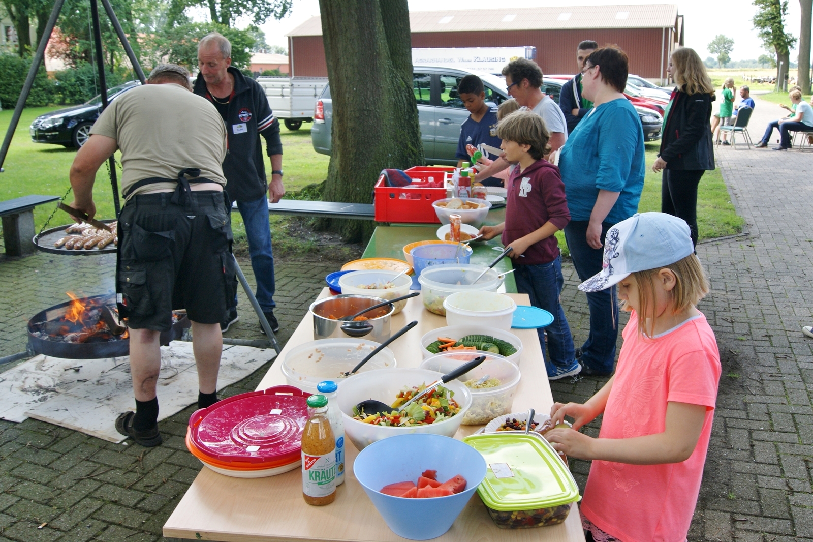 Die Organisation lag in den Händen der Jungschützen Rehden, so dass die Jugendwarte Sascha Langhorst, Marion Telthörster und Julia Langhorst gefragte Ansprechpartner waren. Sascha Langhorst war es auch, der ausgehend vom großen Betreuerzelt bei einer Geländebegehung die optimalen Möglichkeiten der Waldsportstätten erläuterte. In der Nähe des Zeltplatzes befanden sich WC, Wasch- und Duschräume sowie um die Ecke ein Selbstbedienungs-Shop mit kostenlosen Getränken. Die Mahlzeiten konnten im Eingangsbereich eingenommen werden und auf den Büfett-Tischen standen neben leckeren Salaten auch frisch Zubereitetes von den Grillmeistern Klaus Bollhorst und Johannes Lowak.