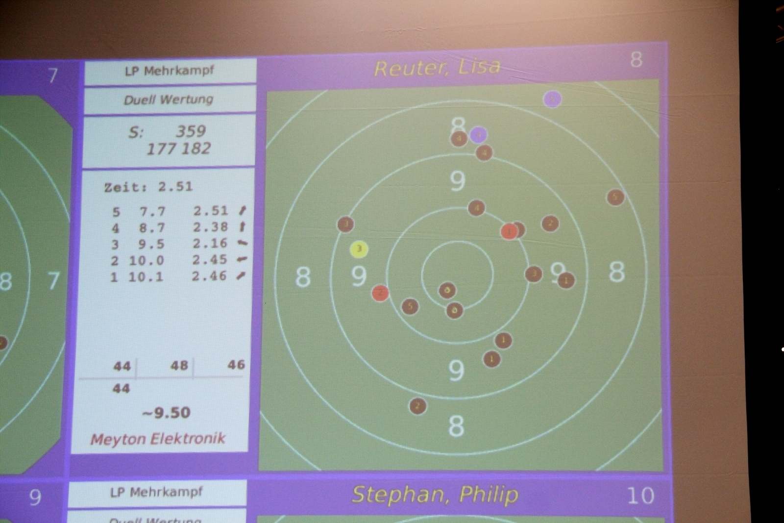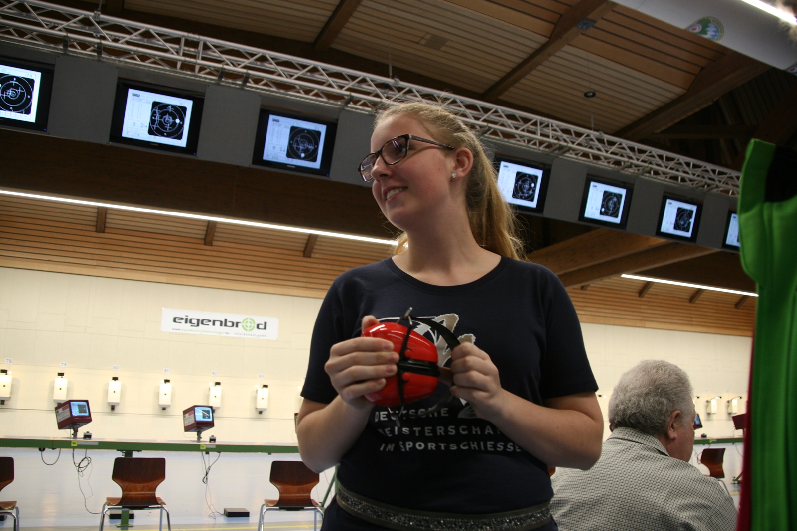 Am Donnerstag, dem 31. August war ihr erster Start gleich um 9:45 Uhr mit der mehrschüssigen Luftpistole, sie erzielte 17 Treffer und den Platz 28. Um 13:00 Uhr stand sie dann schon bereit für den nächsten Wettkampf: Der LP-Mehrkampf war als Rahmenprogramm ausgeschrieben, mit Luftpistole erst vier Serien a‘ fünf Schuß Präzision und anschließend gleich vier Serien a‘ fünf Schuß Duell, ein wohl bald vom DSB eingeführter neuer Wettkampf. Mit 359 Ringen sicherte sie sich den 4. Platz und war so Beste der weiblichen Teilnehmer geworden, sie erhielt dafür eine Urkunde, ebenso wie Lena Löhmann vom SV Mallinghausen für ihren 9. Platz.