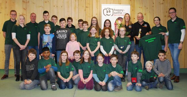 Im Anschluss bedankten sich die Jugendwarte bei den Sponsoren mit einem großen Blumenstrauß und einer Flasche Rehdener Kolbendreher. „Mit den neuen T-Shirts steht unseren Kindern und Jugendlichen für weitere Erfolge nichts mehr im Wege“ freute sich mit den Jugendwarten der Vizepräsident vom Schützenverein Rehden Tobias Winkelmann-Bünte, „die Fotobox (Happy-Selfie.de) war ein voller Erfolg und wurde von allen Gästen gerne angenommen“.