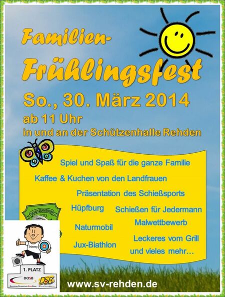 Diesem Aufruf zum Familien-Frühlingsfest auf dem Gelände vom Schützenverein Rehden folgten viele interessierte Gäste aus Nah und Fern. Die Verantwortlichen hatten dazu noch den sprichwörtlich guten Draht zum Wettergott, die Sonne ließ es sich nicht nehmen, vom frühen Morgen bis zum Abend anwesend zu sein!