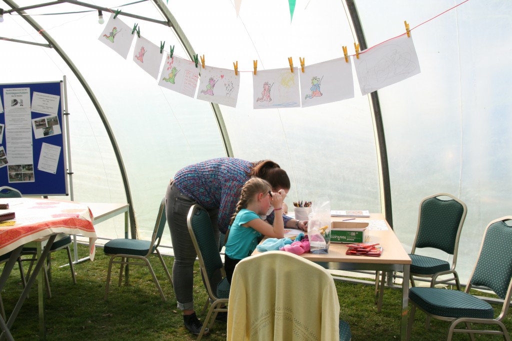 Denn es wurden viele Aktivitäten für Groß und Klein zum Mitmachen geboten, so gab es zum Beispiel einen Malwettbewerb, die Jägerschaft hatte ihr "Naturmobil "mit vielen Tierarten bereitgestellt und gaben gern Auskunft über die heimische Tierwelt, eine große Hüpfburg für die Kleinsten, eine alkoholfreie Cocktailbar, Kaffee und Kuchen von den Landfrauen, Leckeres vom Grill und einen Jux-Biathlon. Dazu gehörte auch das "Tandem-Skilaufen".