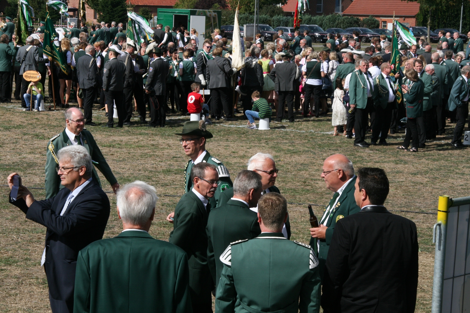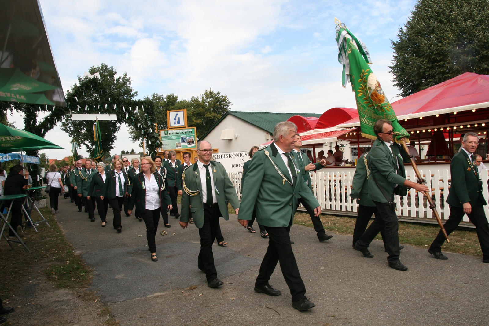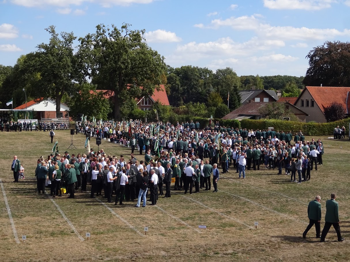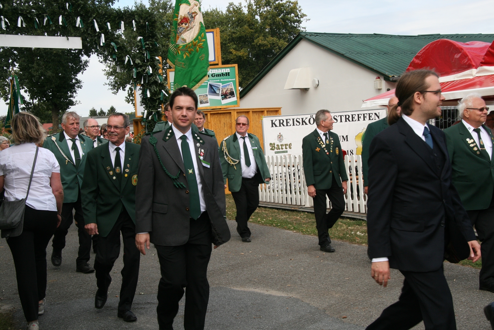 Den Reigen der Grußworte eröffnete Bürgermeister Marco Lampe er überbrachte die Grüße aus Rat u. Verwaltung u. wünschte allen Gästen fröhliche Stunden. BZ-Präsident Karl-Friedrich Scharrelmann erinnerte in seinem Grußwort auch an die 100 Jahrfeier vom SV Brockum, dass der Schützenverein Tradition - Freundschaft u. der Zusammenhalt auch heute wie damals, einen hohen Stellenwert hier im Verein habe. KV I-Präsident Manfred Rüffer feute sich auf die kommende Feier im Festzelt, mit Blick auf die mit Vereinskönigen gefüllte Tribüne, meinte er: "Ihr Könige habt dafür gesorgt, dass es diese Kreiskönigstreffen gibt, dass diese Tradition des Königsschießen weiterlebt, Danke!" Stellvtr. Landrat Heiner Richmann lobte diese gut organisierte Veranstaltung: "man kann mit Fug u. Recht sagen, das grüne Schützenherz des Landkreises Diepholz schlägt heute hier in Brockum u. das kräftig!" Axel Knöerig, MdB u. Stellvtr. Vorsitzender des KSB Diepholz sowie auch Schützenbruder, überbrachte die besten Wünsche von den 74000 KSB-DH-Mitgliedern. Es ist schon erwähnenswert, das hier 63 Schützenvereine mit ihren Majestäten gekommen sind, dazu noch 8 Spielmannszüge, welche sie dann musikalisch zum Festzelt geleiten werden. Sein Lob ging an den Vorstand, seine Mitglieder u. die weiteren Helfer. Er hob hervor, das bei den letzten Ehrungen des KSB Diepholz 34 von 66 Sportschützen u. 18 von 31 Mannschaften geehrt worden sind. Das besagt, das ca. 50 % der Geehrten aus dem Schützenwesen kommen. Mit 4350 Mitgliedern sind die Schützen die viertgrößte Gruppe im KSB Diepholz. Er wünschte allzeit Gut Schuß u. eine gute Zusammenarbeit. MdL u. Schützenmitglied beim SK Diepholz Marcel Scharrelmann brachte es auf den Punkt: "ohne die Schützenvereine ist das Leben in unseren Dörfern um vieles ärmer, unser Schützenwesen gibt uns Geborgenheit, Geselligkeit u. Zusammenhalt!" Uns allen wünsche ich ein tolles Kreiskönigstreffen mit viel Spaß!