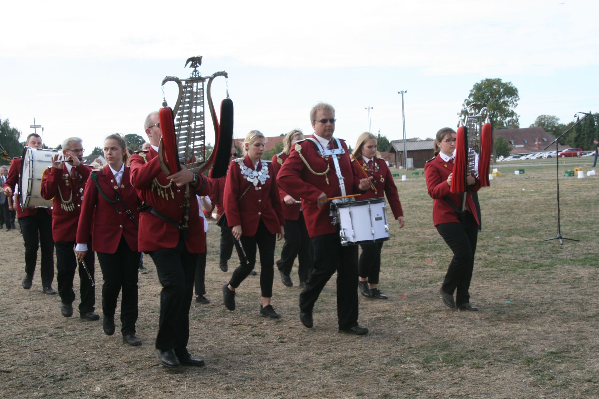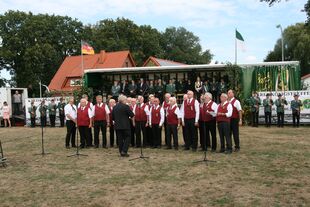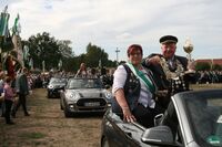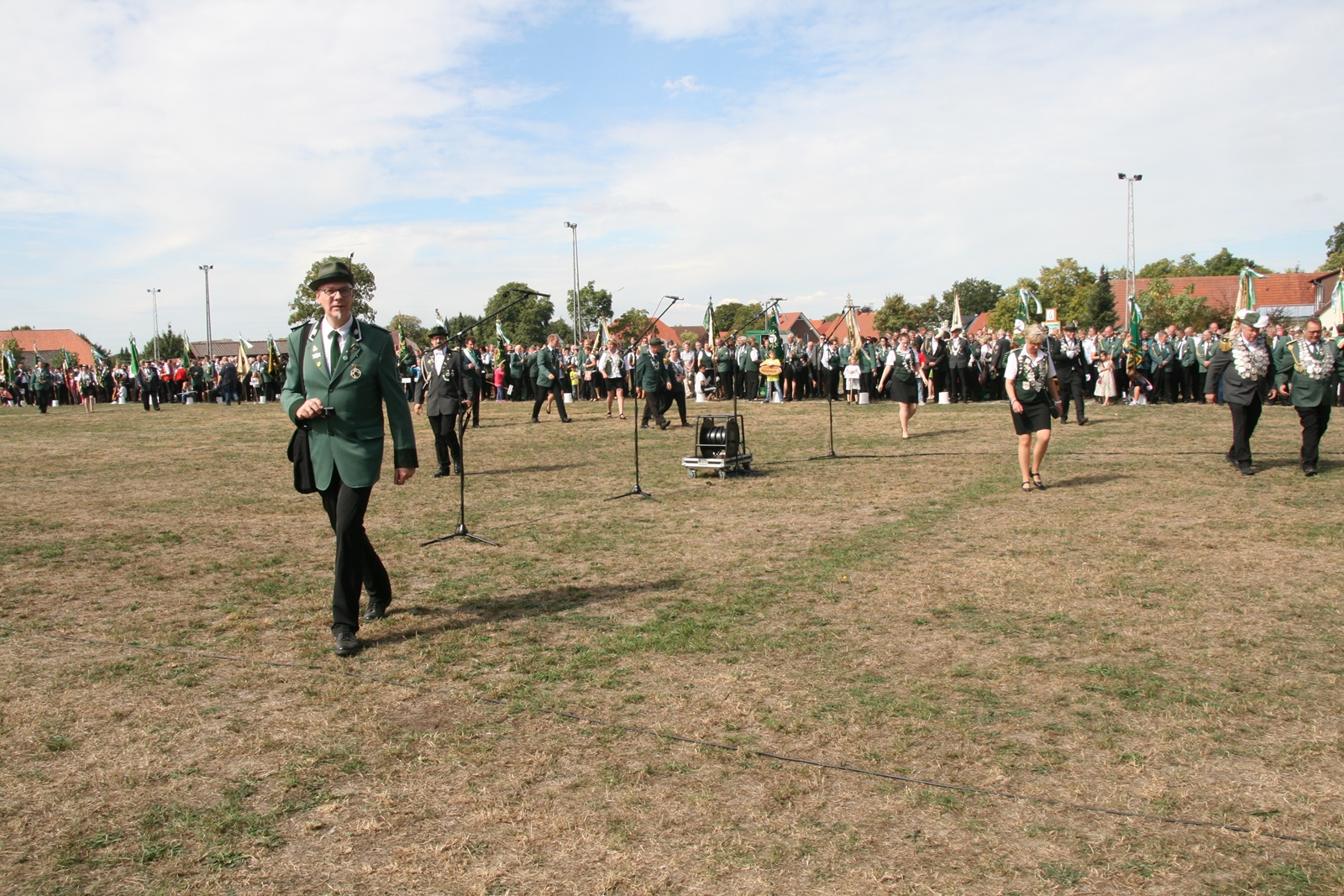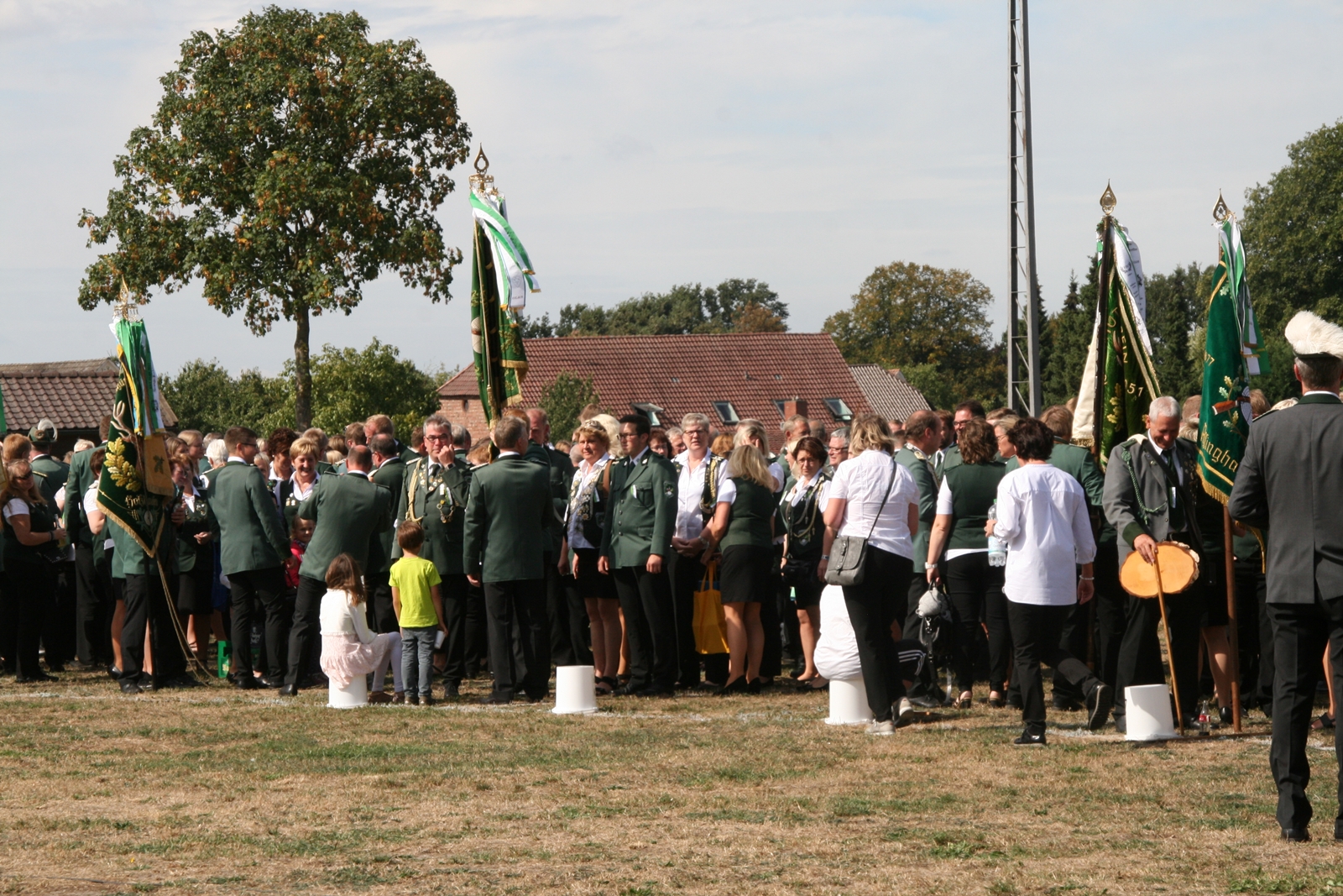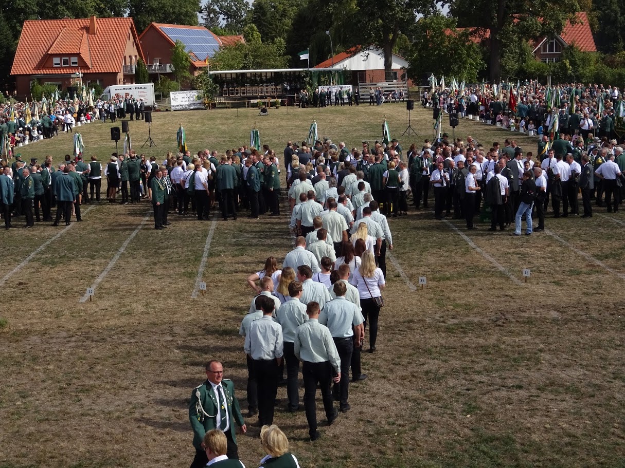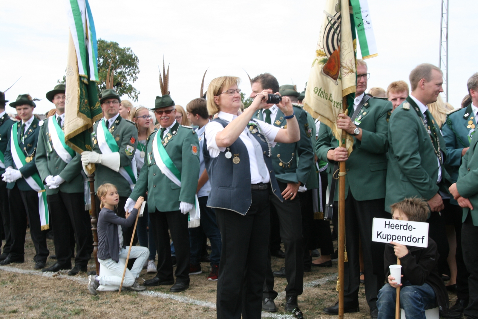 Den Reigen der Grußworte eröffnete Bürgermeister Marco Lampe er überbrachte die Grüße aus Rat u. Verwaltung u. wünschte allen Gästen fröhliche Stunden. BZ-Präsident Karl-Friedrich Scharrelmann erinnerte in seinem Grußwort auch an die 100 Jahrfeier vom SV Brockum, dass der Schützenverein Tradition - Freundschaft u. der Zusammenhalt auch heute wie damals, einen hohen Stellenwert hier im Verein habe. KV I-Präsident Manfred Rüffer feute sich auf die kommende Feier im Festzelt, mit Blick auf die mit Vereinskönigen gefüllte Tribüne, meinte er: "Ihr Könige habt dafür gesorgt, dass es diese Kreiskönigstreffen gibt, dass diese Tradition des Königsschießen weiterlebt, Danke!" Stellvtr. Landrat Heiner Richmann lobte diese gut organisierte Veranstaltung: "man kann mit Fug u. Recht sagen, das grüne Schützenherz des Landkreises Diepholz schlägt heute hier in Brockum u. das kräftig!" Axel Knöerig, MdB u. Stellvtr. Vorsitzender des KSB Diepholz sowie auch Schützenbruder, überbrachte die besten Wünsche von den 74000 KSB-DH-Mitgliedern. Es ist schon erwähnenswert, das hier 63 Schützenvereine mit ihren Majestäten gekommen sind, dazu noch 8 Spielmannszüge, welche sie dann musikalisch zum Festzelt geleiten werden. Sein Lob ging an den Vorstand, seine Mitglieder u. die weiteren Helfer. Er hob hervor, das bei den letzten Ehrungen des KSB Diepholz 34 von 66 Sportschützen u. 18 von 31 Mannschaften geehrt worden sind. Das besagt, das ca. 50 % der Geehrten aus dem Schützenwesen kommen. Mit 4350 Mitgliedern sind die Schützen die viertgrößte Gruppe im KSB Diepholz. Er wünschte allzeit Gut Schuß u. eine gute Zusammenarbeit. MdL u. Schützenmitglied beim SK Diepholz Marcel Scharrelmann brachte es auf den Punkt: "ohne die Schützenvereine ist das Leben in unseren Dörfern um vieles ärmer, unser Schützenwesen gibt uns Geborgenheit, Geselligkeit u. Zusammenhalt!" Uns allen wünsche ich ein tolles Kreiskönigstreffen mit viel Spaß!