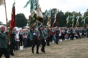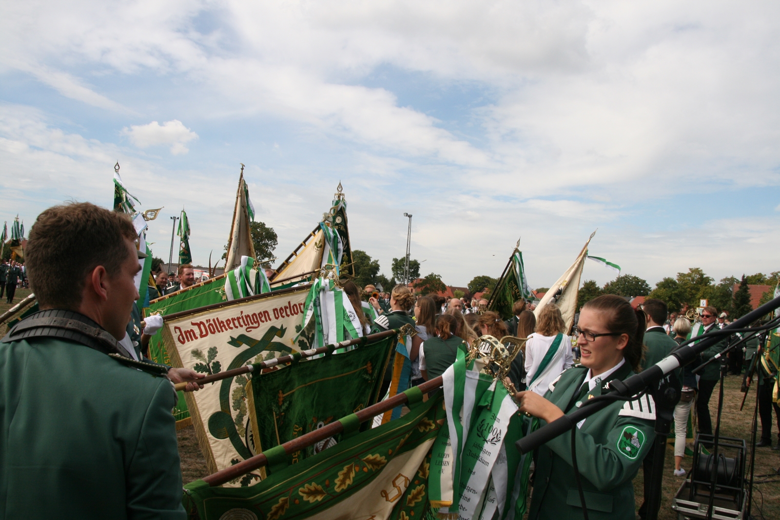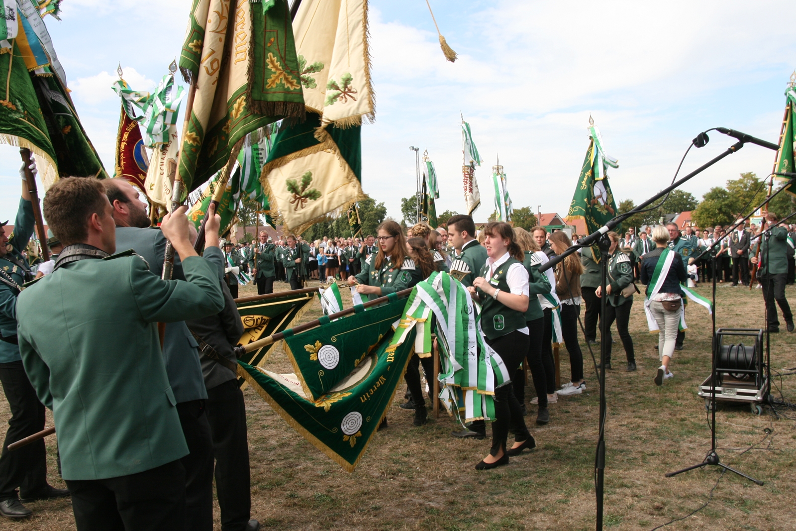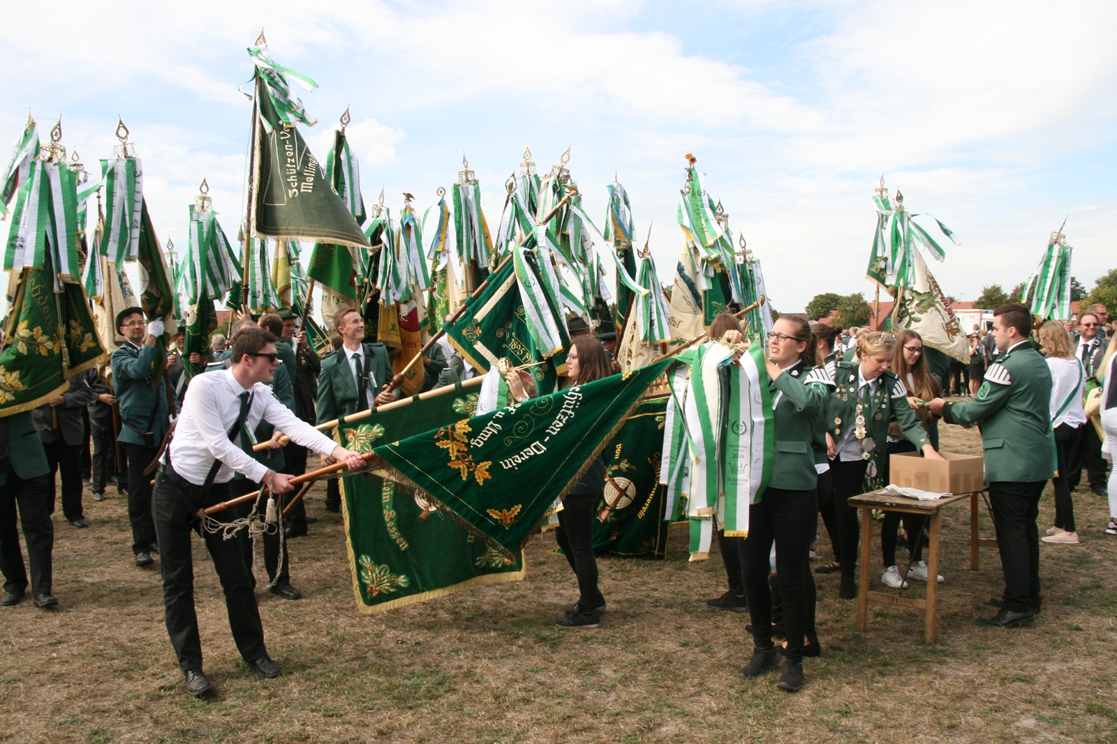 Es ist immer wieder ein imposantes Bild, wenn die Fahnenträger zur Vergabe der Fahnenbänder "stürmen"...