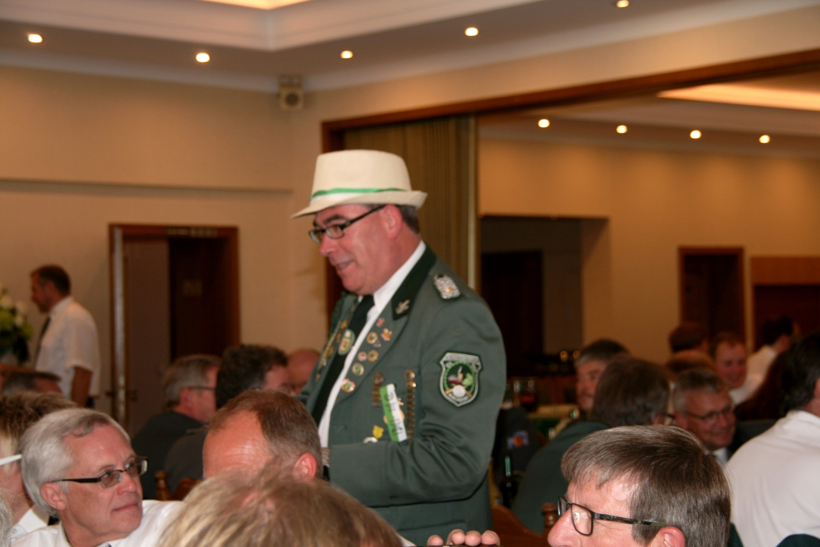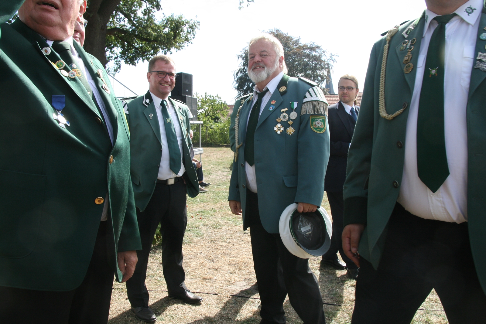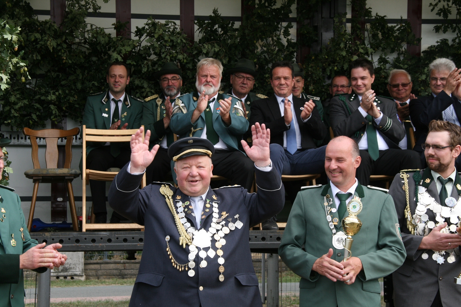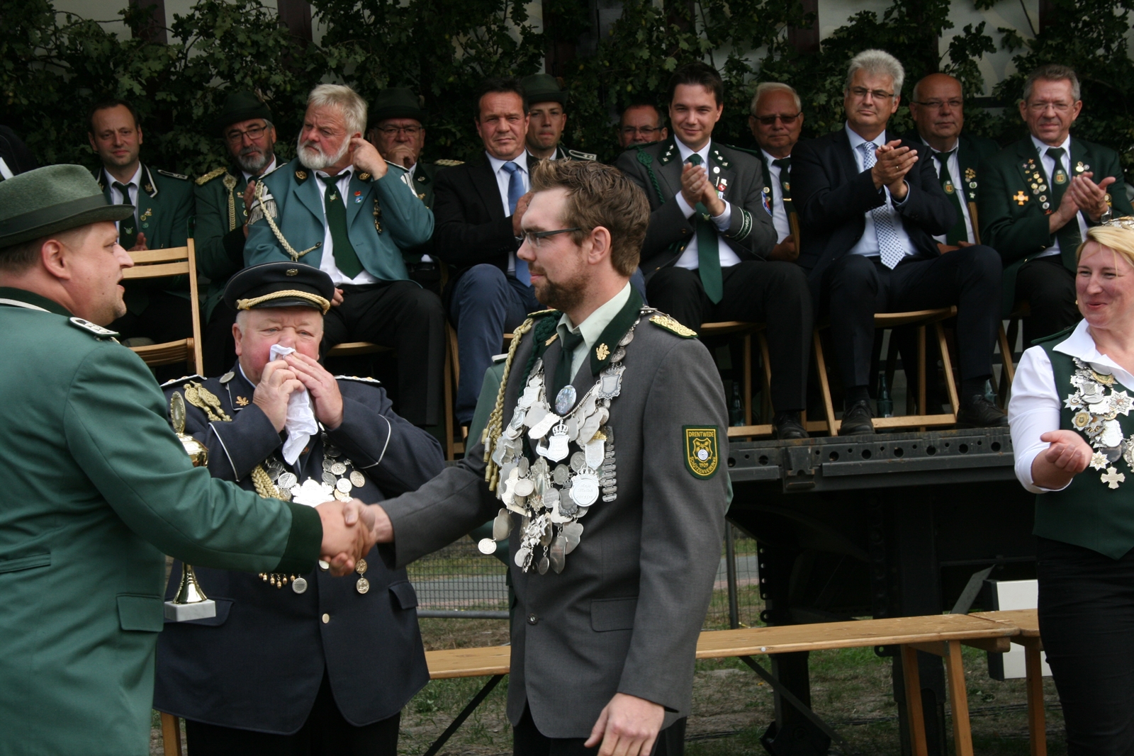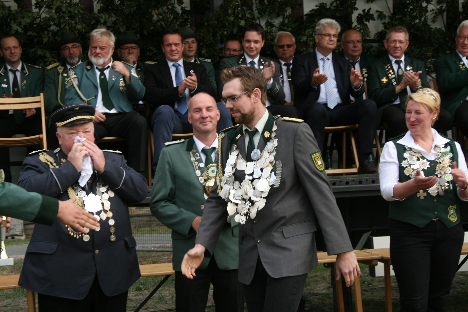 Die Proklamation verlief wie immer sehr spannend, erst der "lose" Aufruf der fünf topplatzierten Könige beginnend mit Tobias Kölpin vom SV Drentwede, Werner Beckmeyer KSV Ströhen, Mandy Luchtmann SV Wesenstedt-Harmhausen u. Udo Höpke vom SV Maasen. Der Jubel wollte auch nicht enden, als Mandy Luchtmann als zweite aufgerufen wurde! Werner Beckmeyer streckte vor Freude beide Arme in die Höhe, denn nun gab es in seinem Verein wieder etwas Großes zu feiern, im Juni hatte man gerade das 125 jährige Bestehen gefeiert und nun war "man" Kreiskönig! Ihm wurde sodann die Kreiskönigskette umgelegt u. viele Glückwünsche nahm er freudig entgegen.