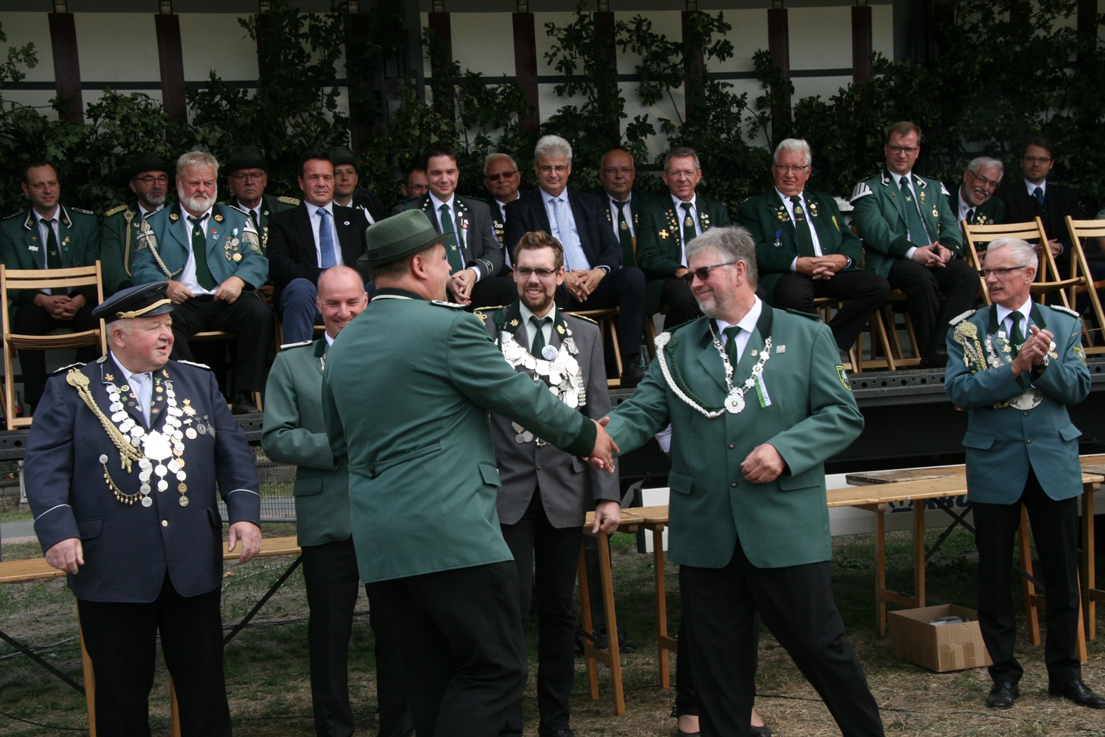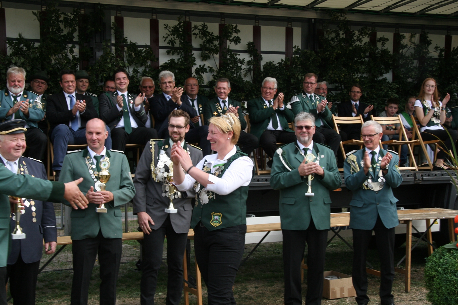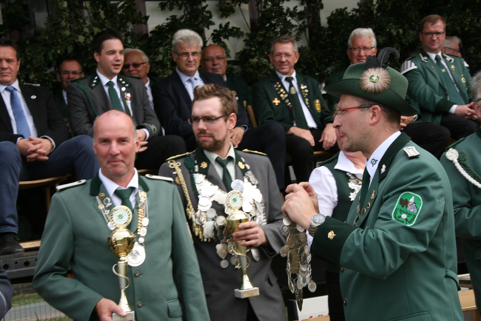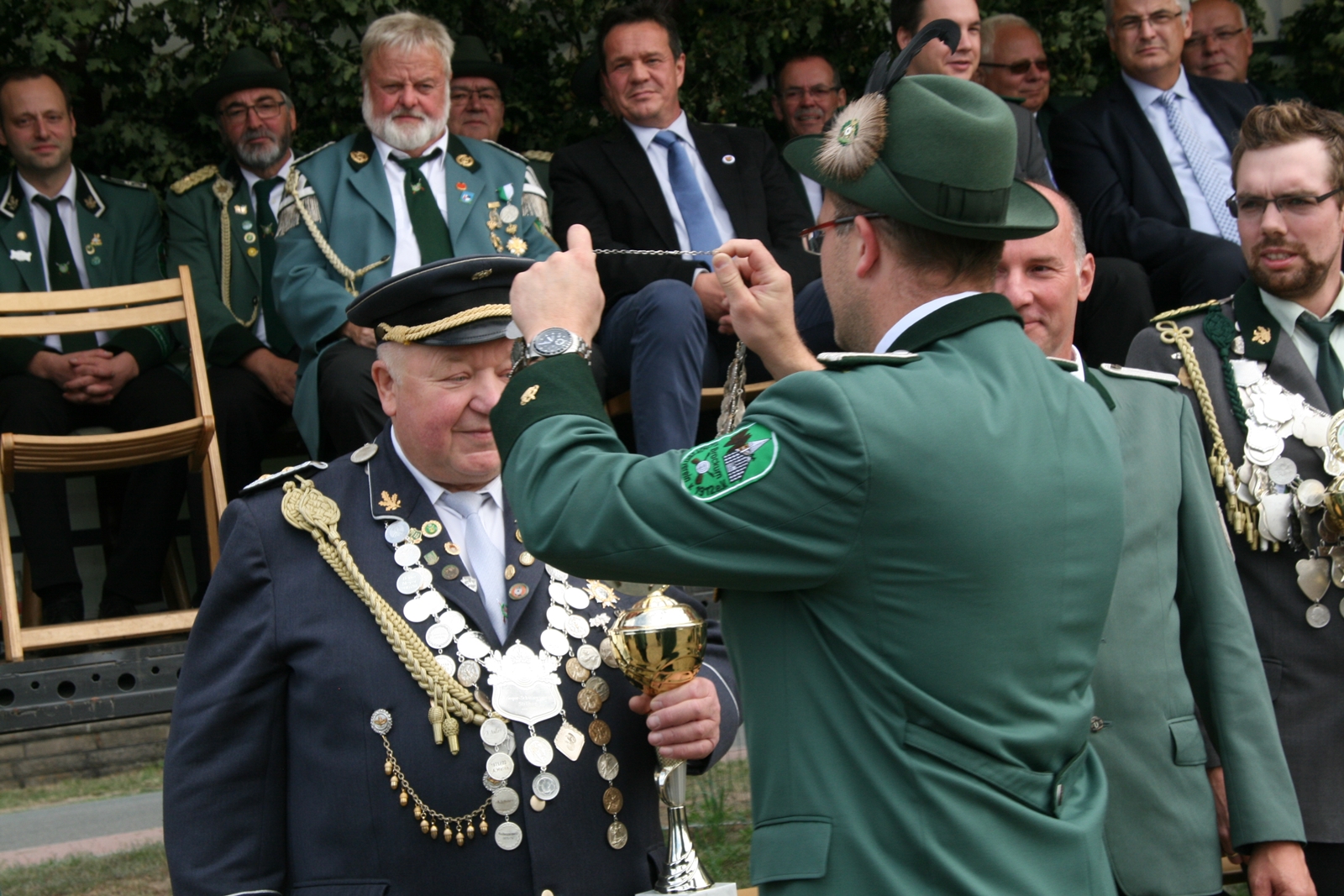Die Proklamation verlief wie immer sehr spannend, erst der "lose" Aufruf der fünf topplatzierten Könige beginnend mit Tobias Kölpin vom SV Drentwede, Werner Beckmeyer KSV Ströhen, Mandy Luchtmann SV Wesenstedt-Harmhausen u. Udo Höpke vom SV Maasen. Der Jubel wollte auch nicht enden, als Mandy Luchtmann als zweite aufgerufen wurde! Werner Beckmeyer streckte vor Freude beide Arme in die Höhe, denn nun gab es in seinem Verein wieder etwas Großes zu feiern, im Juni hatte man gerade das 125 jährige Bestehen gefeiert und nun war "man" Kreiskönig! Ihm wurde sodann die Kreiskönigskette umgelegt u. viele Glückwünsche nahm er freudig entgegen.