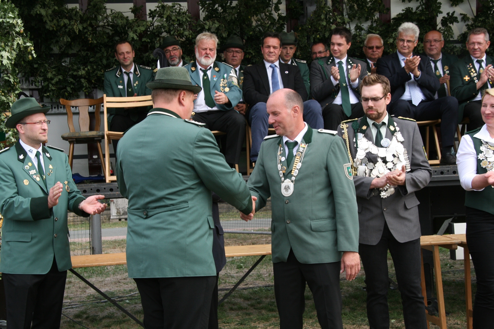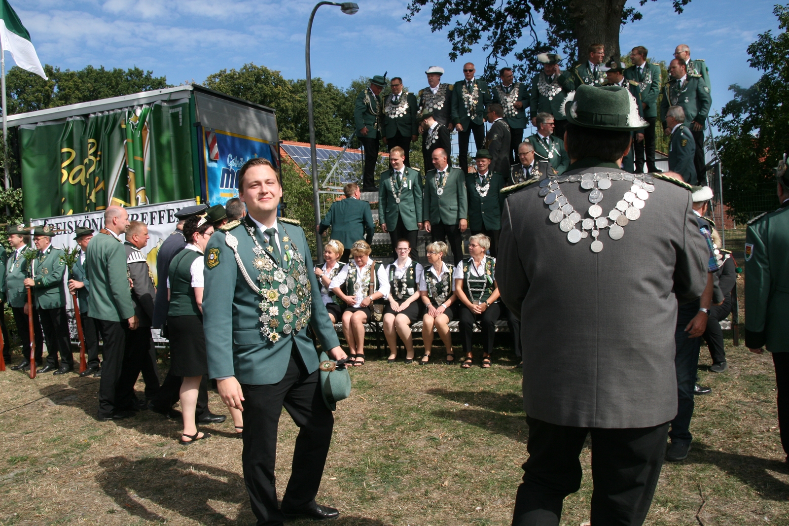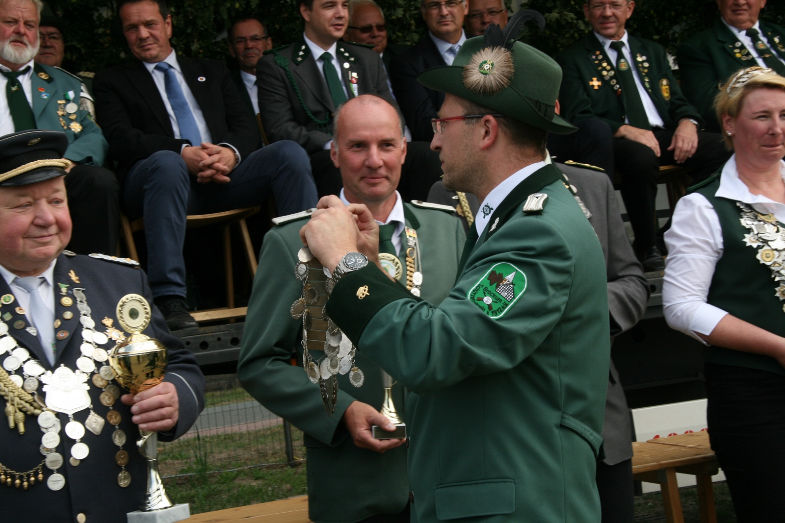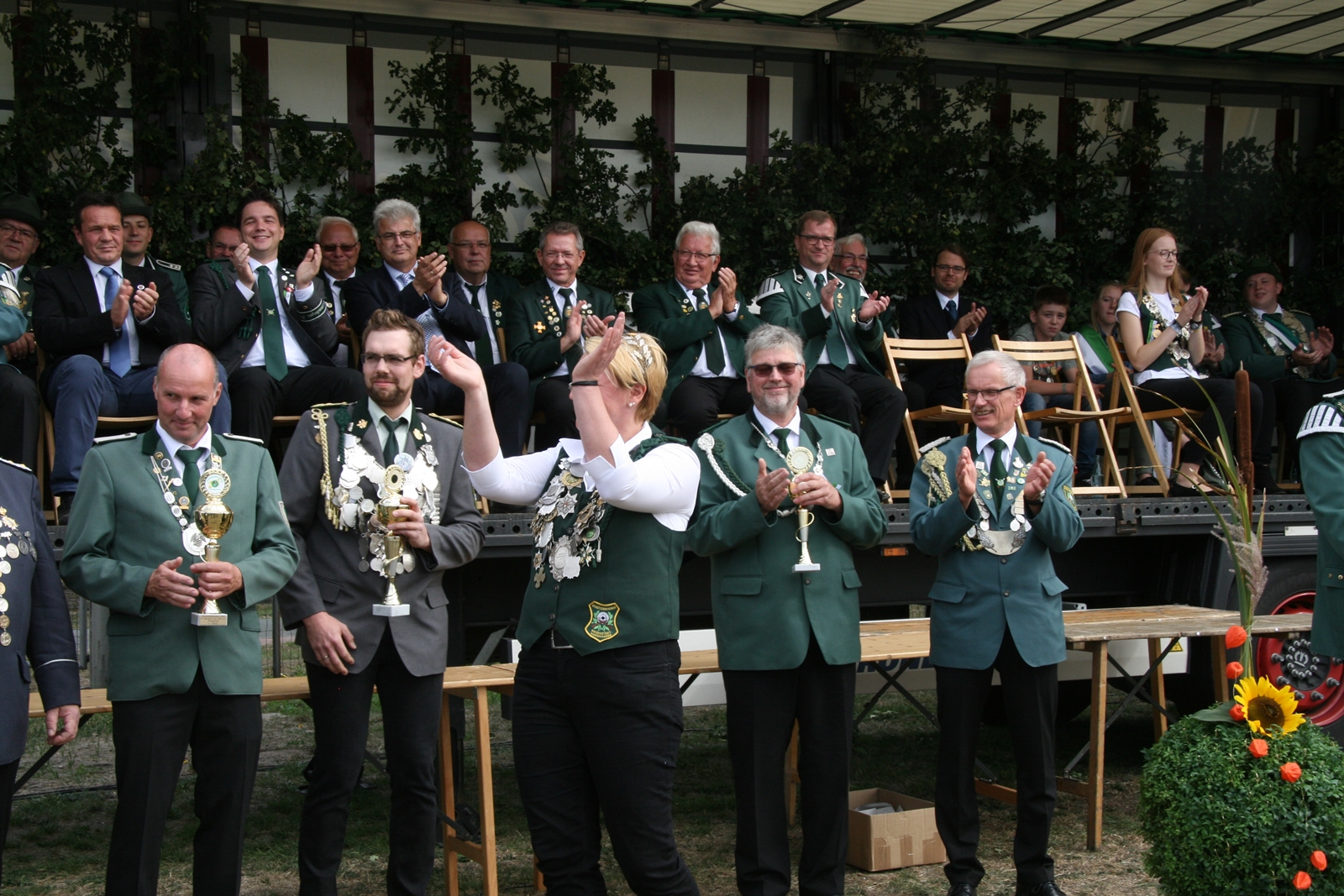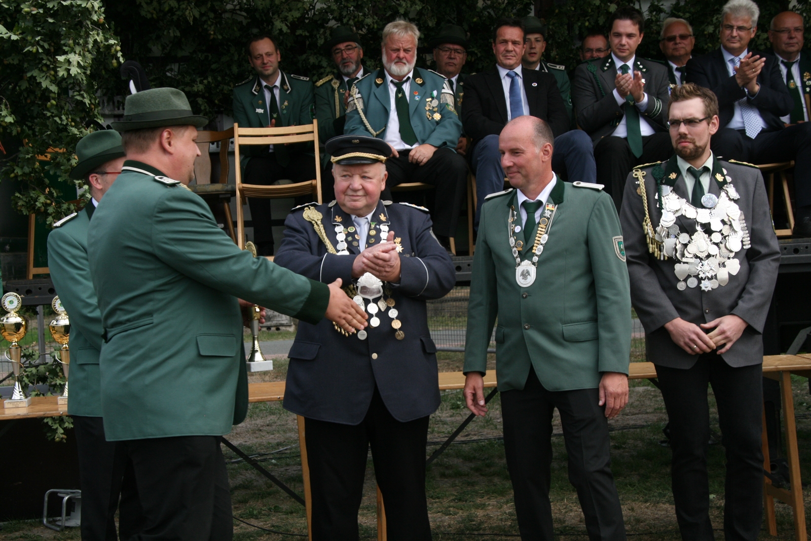 Die Proklamation verlief wie immer sehr spannend, erst der "lose" Aufruf der fünf topplatzierten Könige beginnend mit Tobias Kölpin vom SV Drentwede, Werner Beckmeyer KSV Ströhen, Mandy Luchtmann SV Wesenstedt-Harmhausen u. Udo Höpke vom SV Maasen. Der Jubel wollte auch nicht enden, als Mandy Luchtmann als zweite aufgerufen wurde! Werner Beckmeyer streckte vor Freude beide Arme in die Höhe, denn nun gab es in seinem Verein wieder etwas Großes zu feiern, im Juni hatte man gerade das 125 jährige Bestehen gefeiert und nun war "man" Kreiskönig! Ihm wurde sodann die Kreiskönigskette umgelegt u. viele Glückwünsche nahm er freudig entgegen.