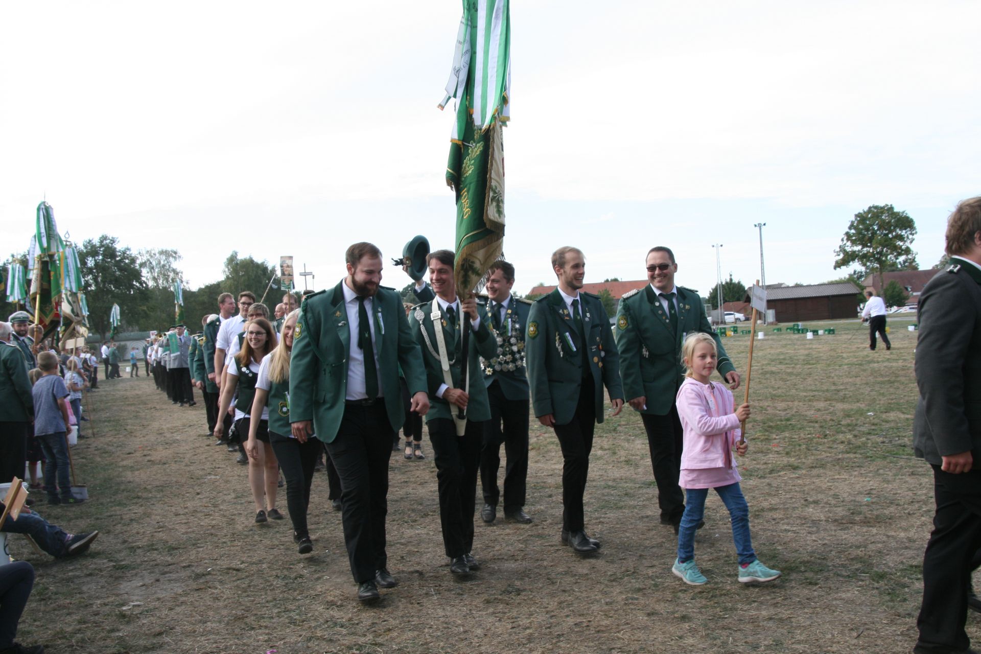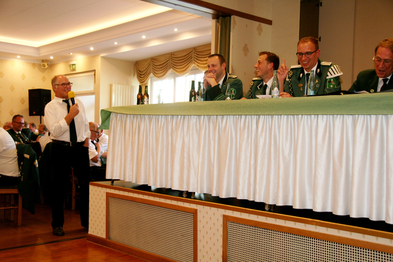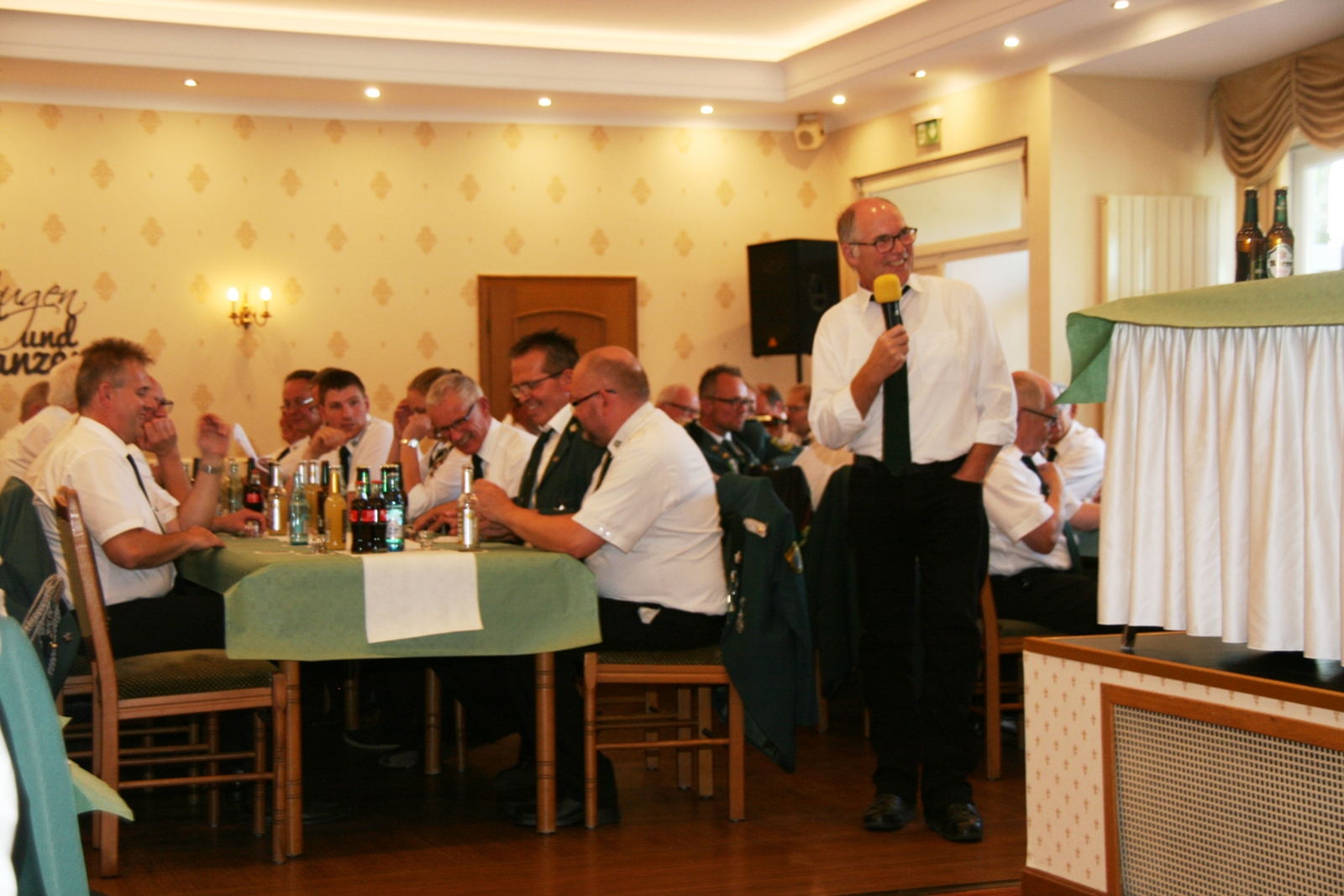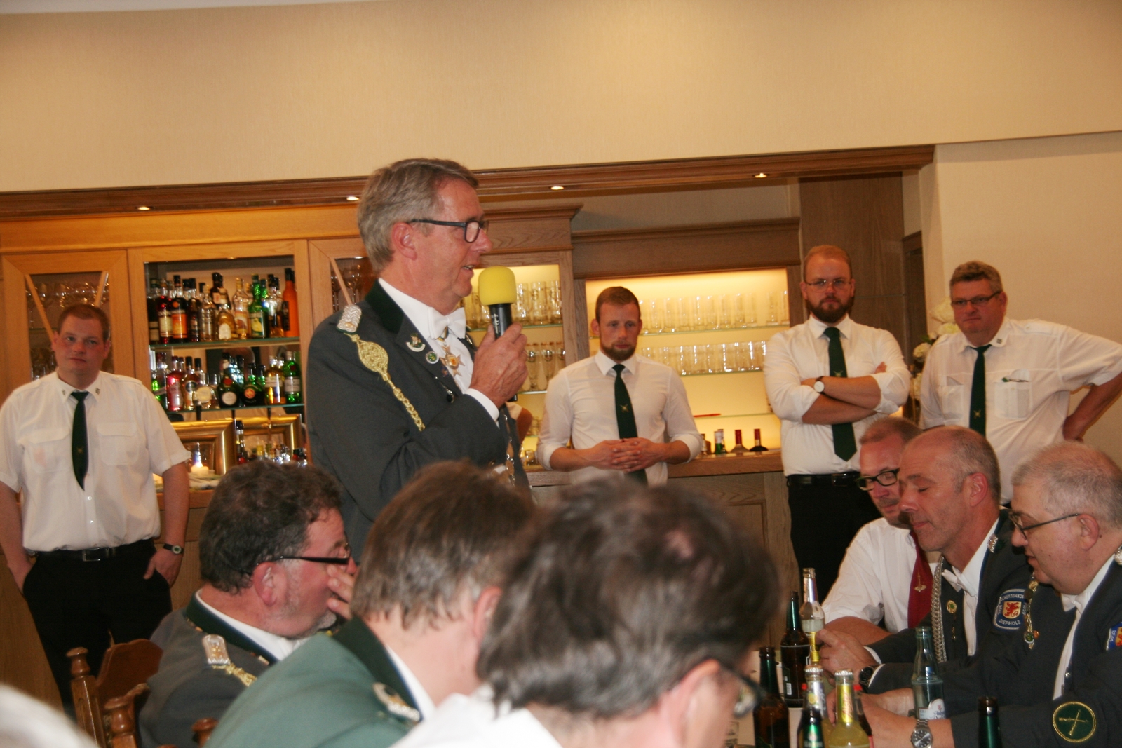 Präsident Sebastian Lampe begrüßte alle Schützinnen u. Schützen mit ihren Majestäten recht herzlich. Zu ihnen gehörten auch die Ehrengäste KKT-König 2017 Henry Meier vom SV Maasen, den neuen KKT-Schülerkönig Jan- Malte Stein SV Brockum, neue KKT-Jugendkönigin Kim-Tia Meyer SV Borstel, Bürgermeister Marco Lampe, Pastor Nico Lühmann, Stellvtr. Samtgemeindebürgermeister Joachim Hafer, die beiden Ehrenpräsidenten vom SV Brockum Günther Dreyer u. Karl-Heinz Buschmann und von der Kreiszeitung Melanie Russ. Sowie BZ-Präsident Karl-Friedrich Scharrelmann und seine beiden Vizepräsidenten Friedel Kelkenberg u. Günter Herzig, vom KV I Präsident Manfred Rüffer, vom KV II Präsident Peter Brandt und vom KV III Präsident Dieter Lüdeke und BZ-Pressewartin Marianne Vallan. Von der Politik waren es Stellvtr. Landrat Heiner Richmann, vom KSB Diepholz Axel Knöerig u. MdL Marcel Scharrelmann.