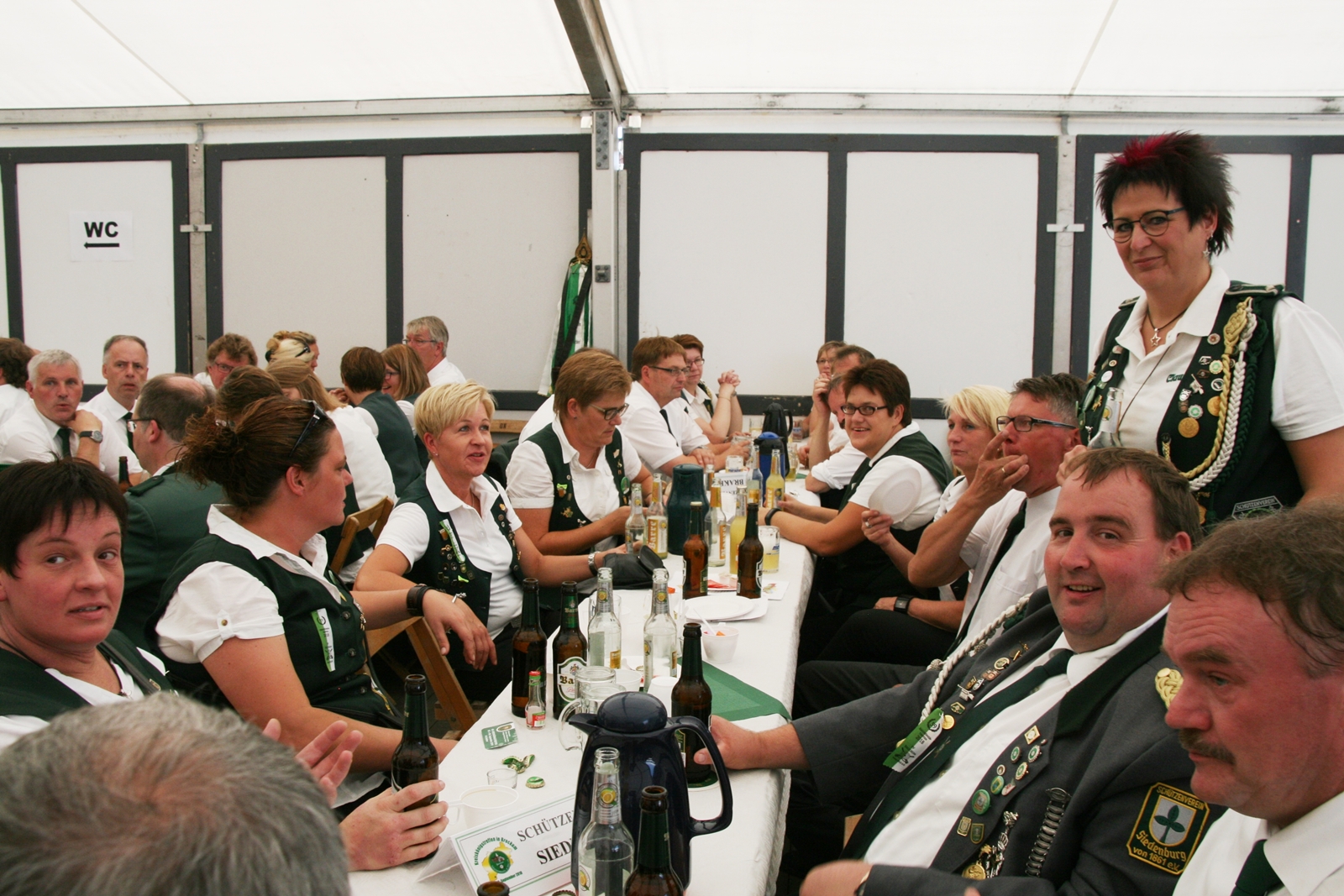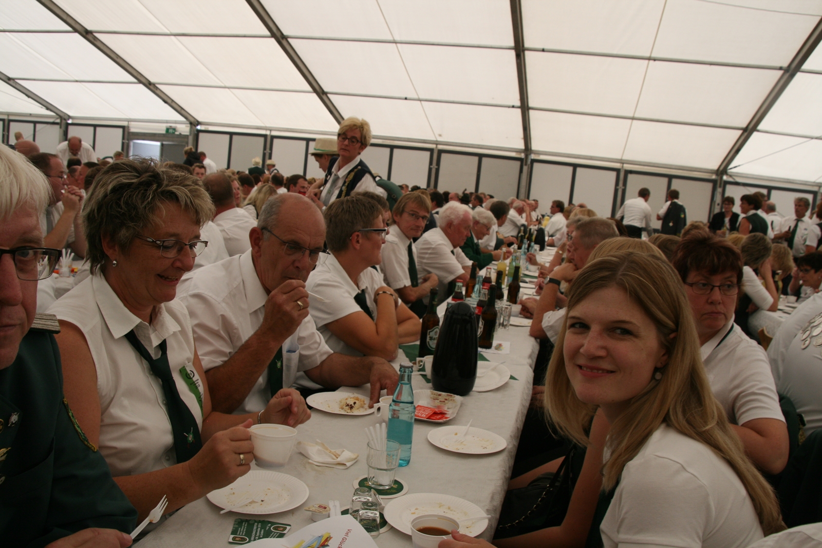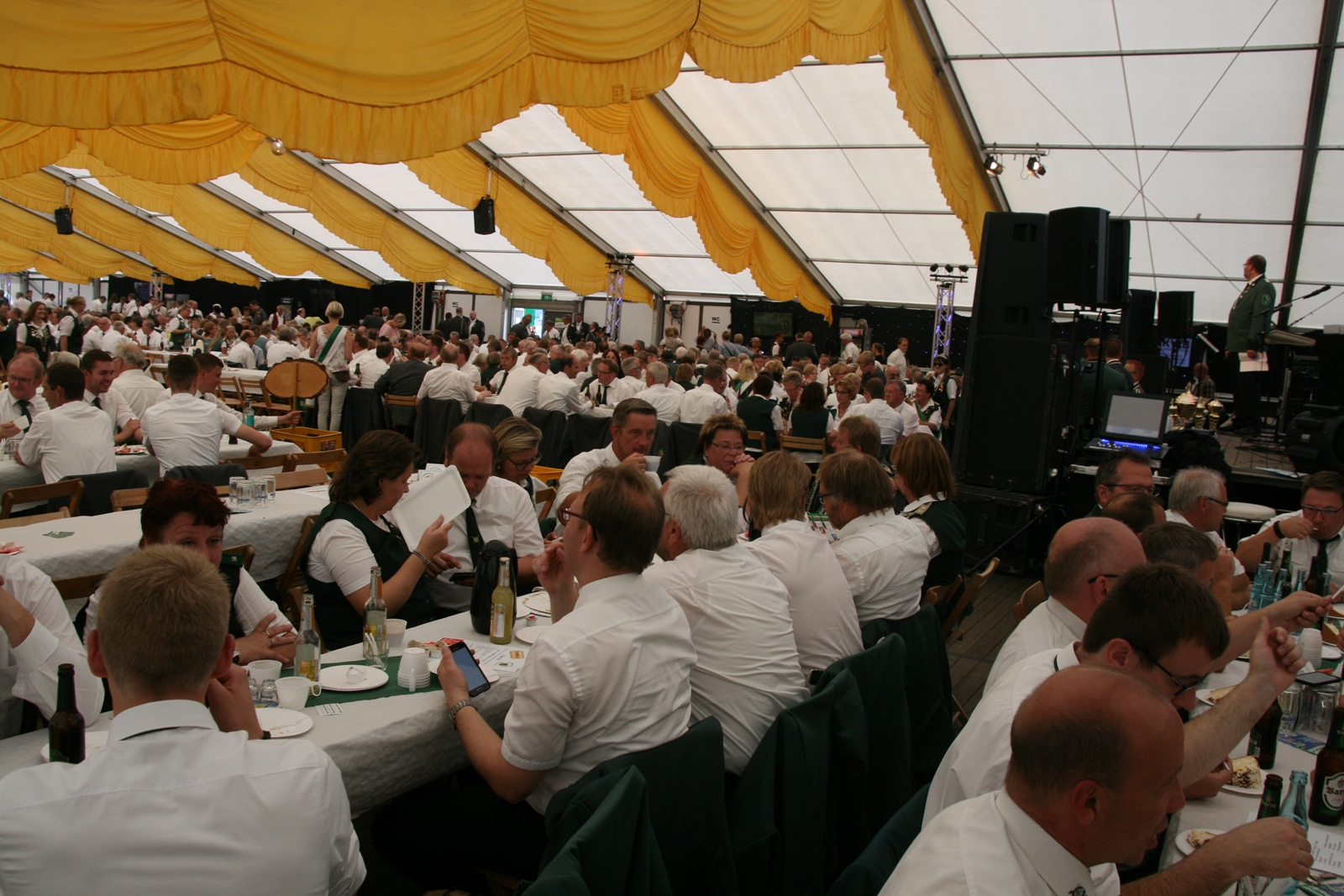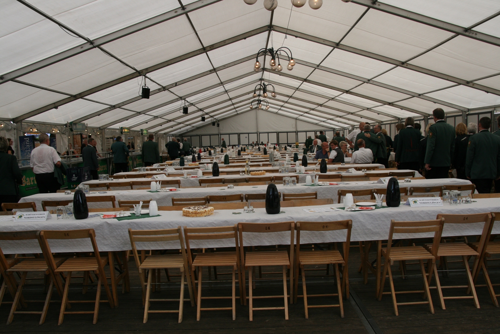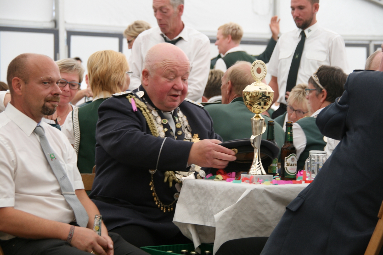 Anschließend gab es einen kurzen Marsch durchs Dorf ins Festzelt, dort wartete schon Kaffee u. Kuchen usw. auf die Schützen, mit anschließender Siegerehrung der im Vorfeld durchgeführten Schießwettbewerbe um die begehrten Pokale.