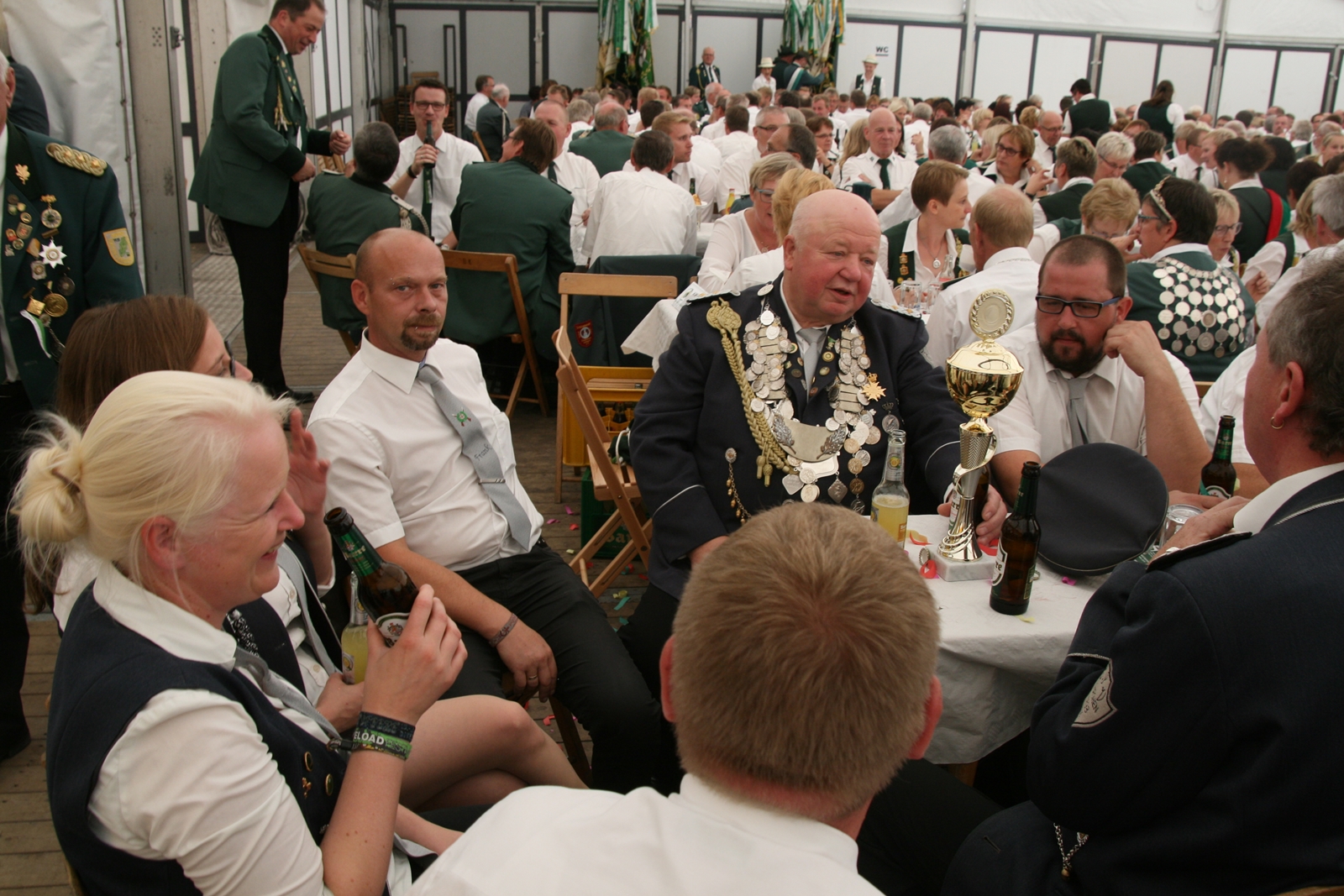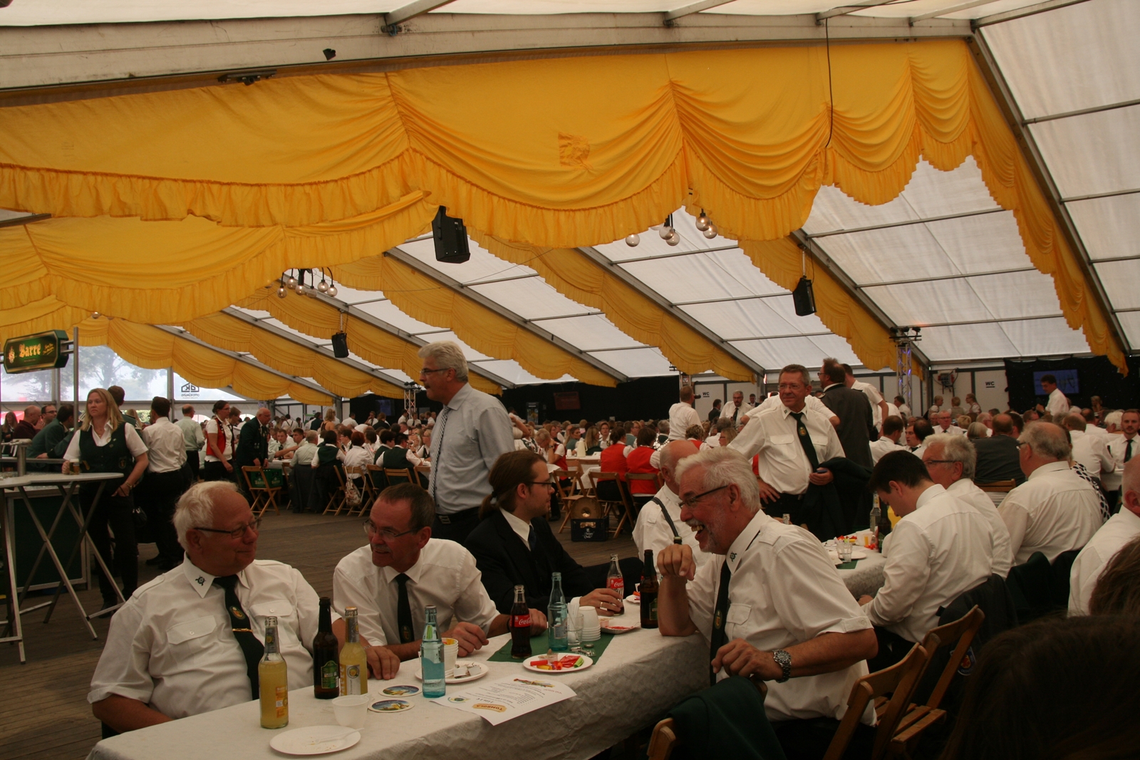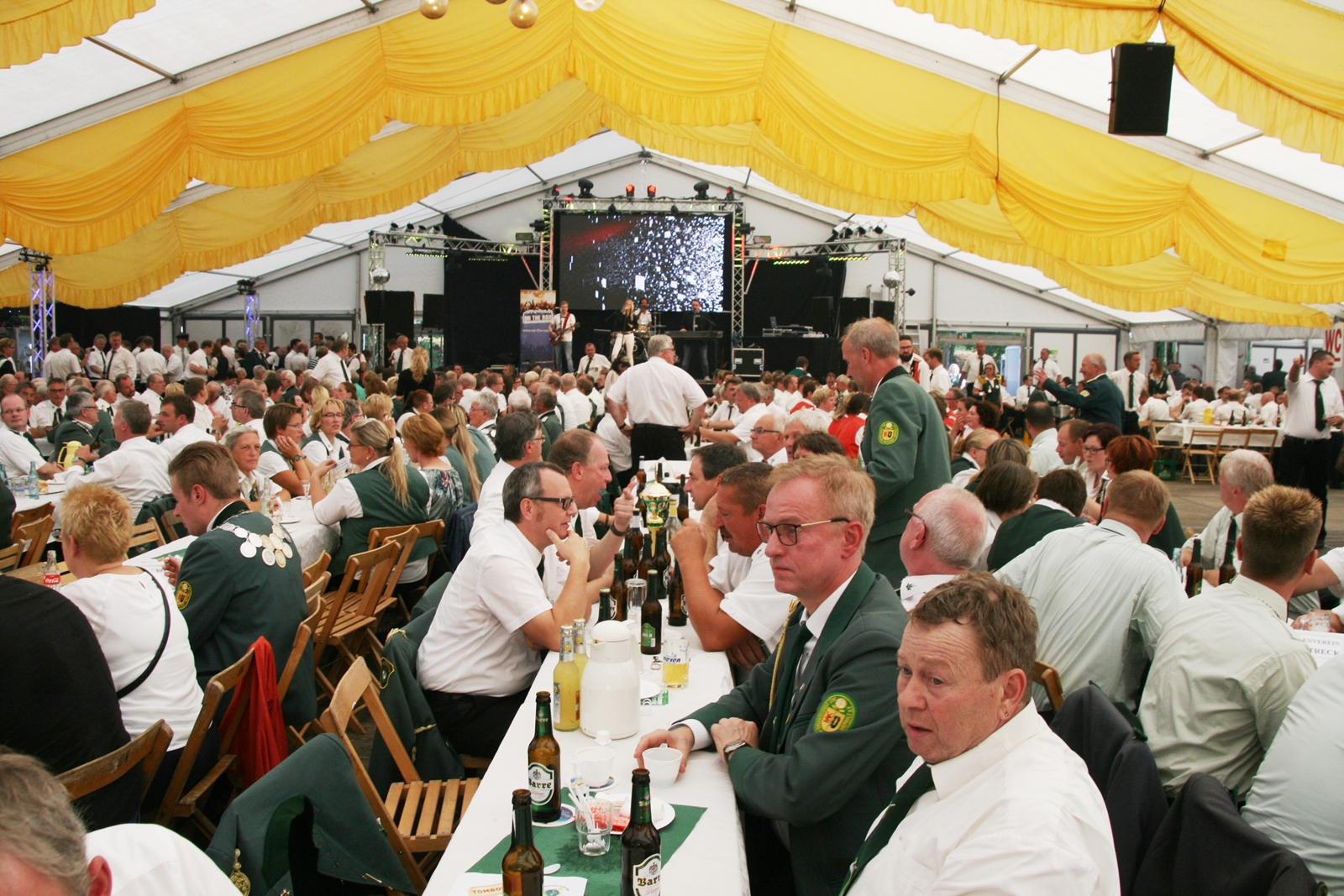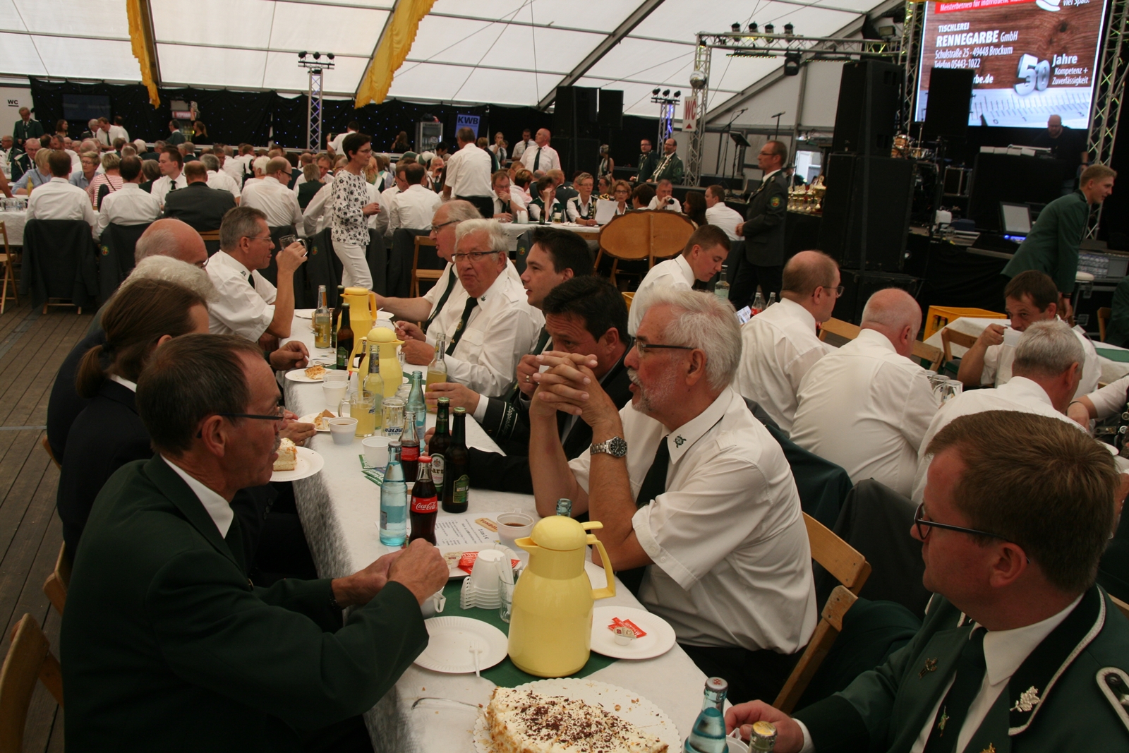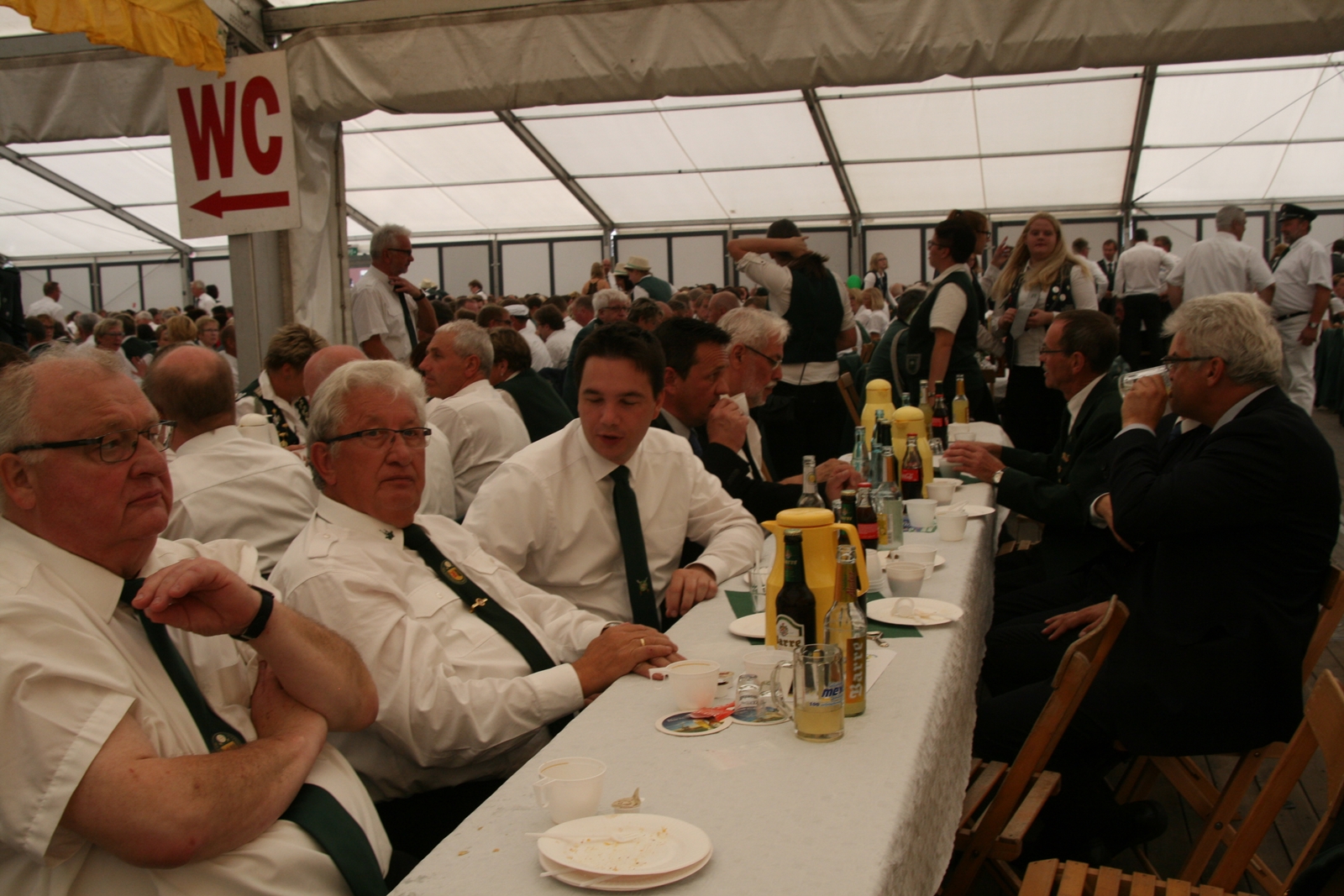 Anschließend gab es einen kurzen Marsch durchs Dorf ins Festzelt, dort wartete schon Kaffee u. Kuchen usw. auf die Schützen, mit anschließender Siegerehrung der im Vorfeld durchgeführten Schießwettbewerbe um die begehrten Pokale.