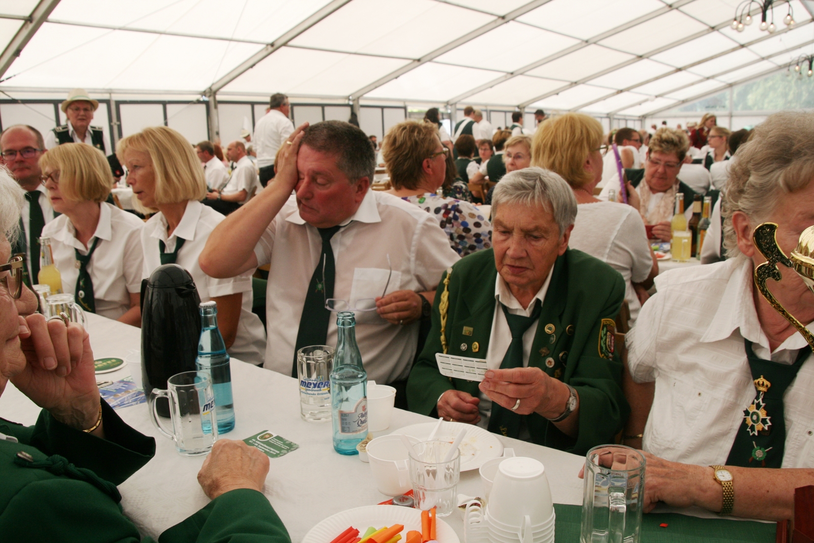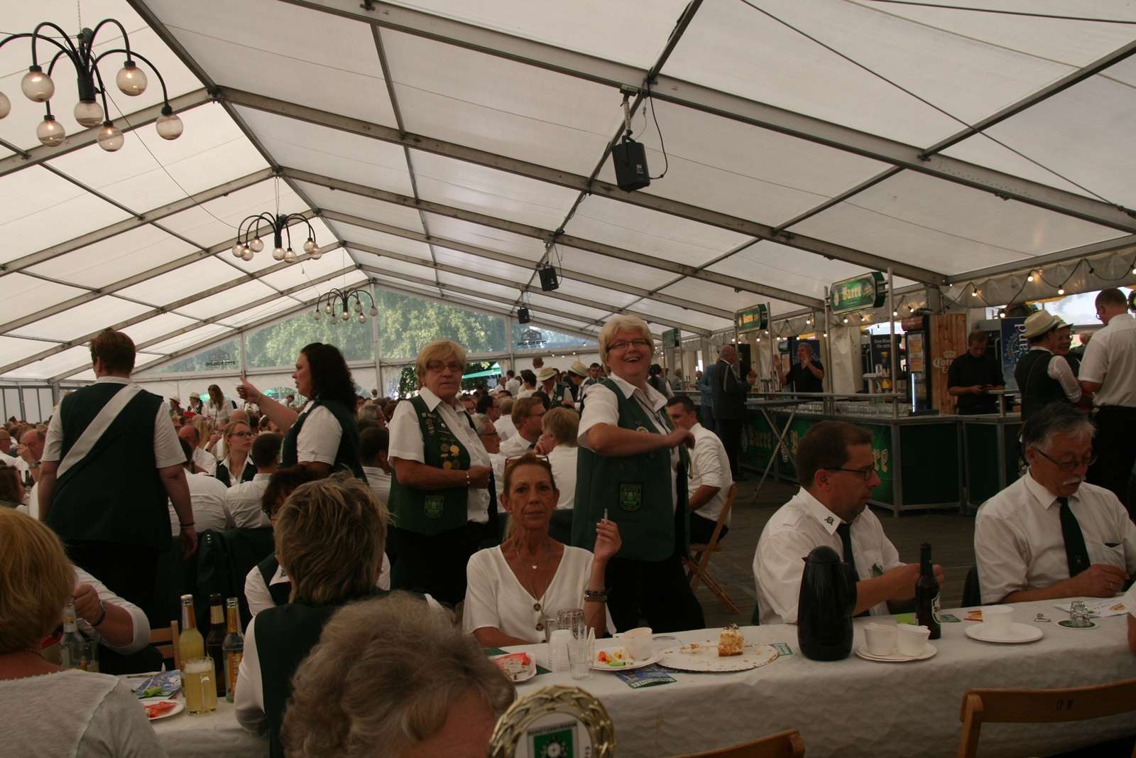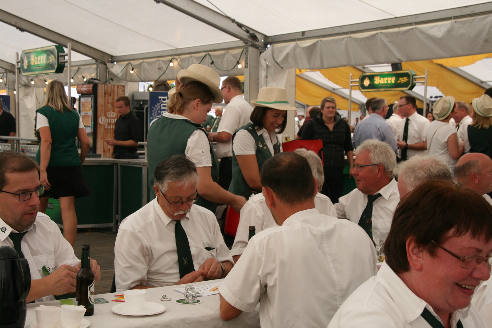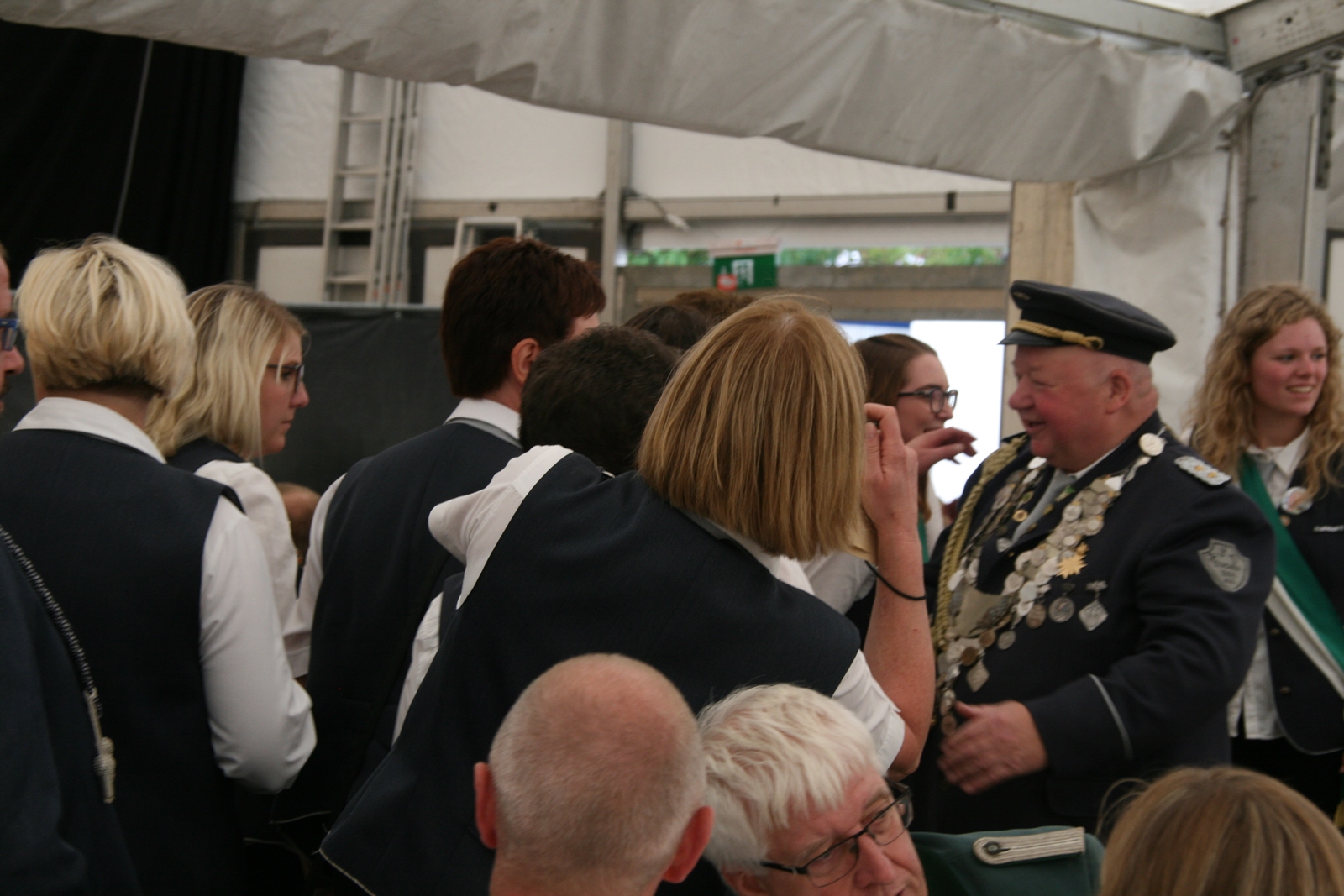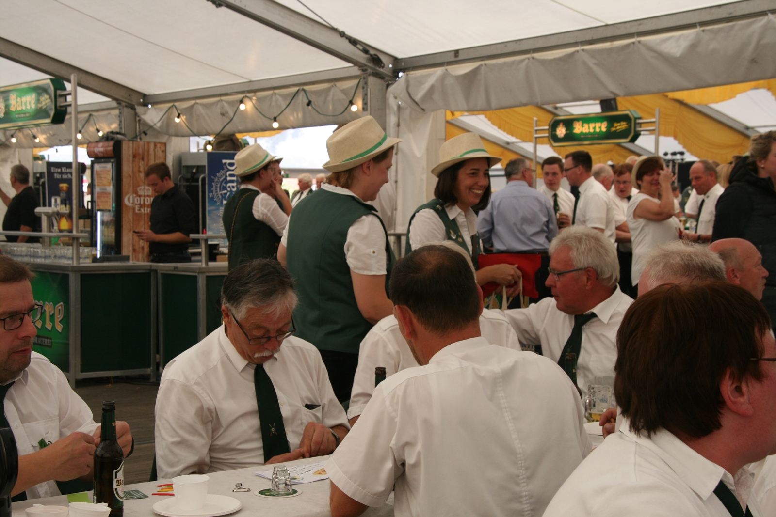 Anschließend gab es einen kurzen Marsch durchs Dorf ins Festzelt, dort wartete schon Kaffee u. Kuchen usw. auf die Schützen, mit anschließender Siegerehrung der im Vorfeld durchgeführten Schießwettbewerbe um die begehrten Pokale.