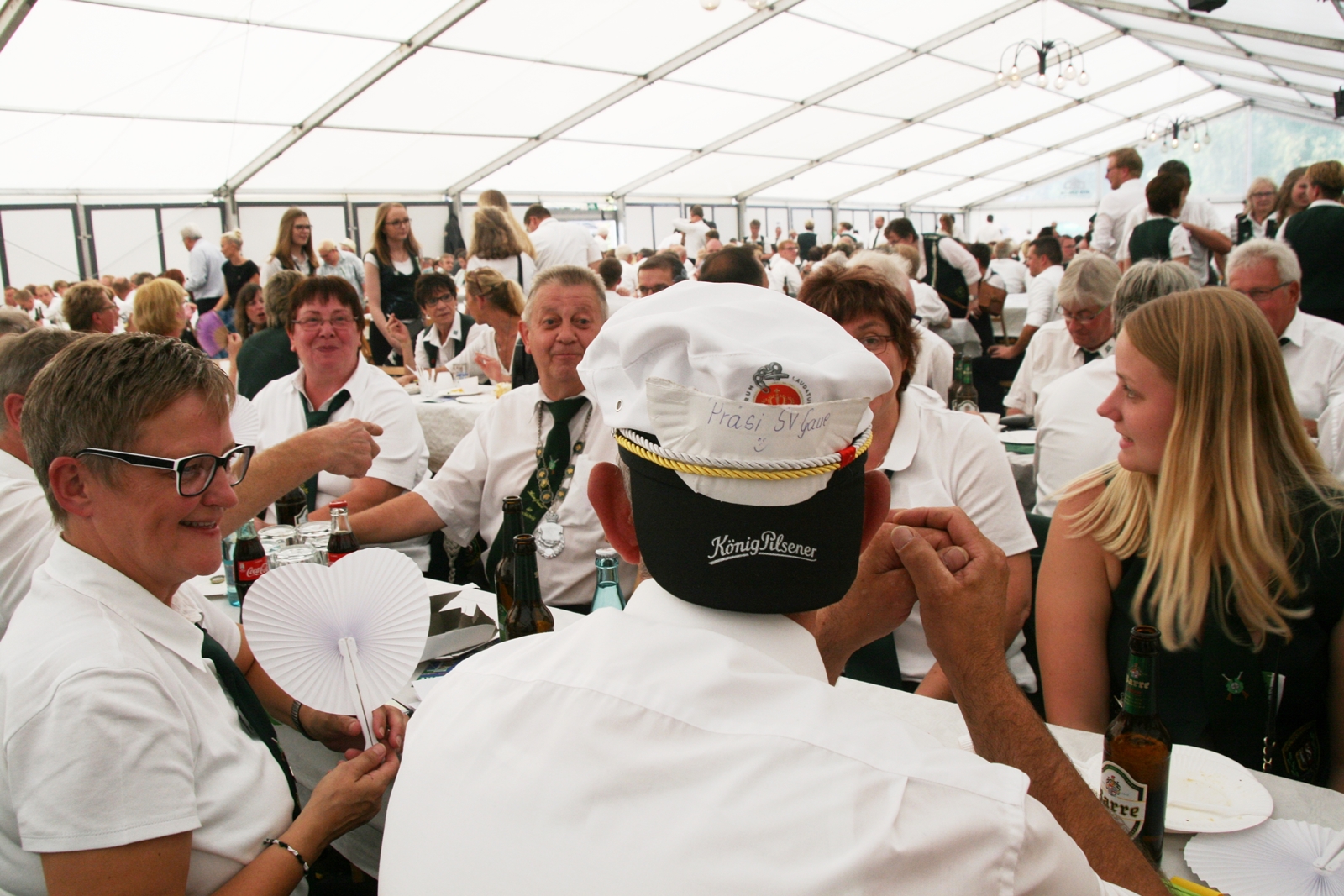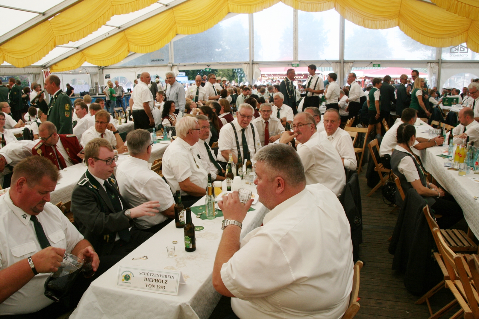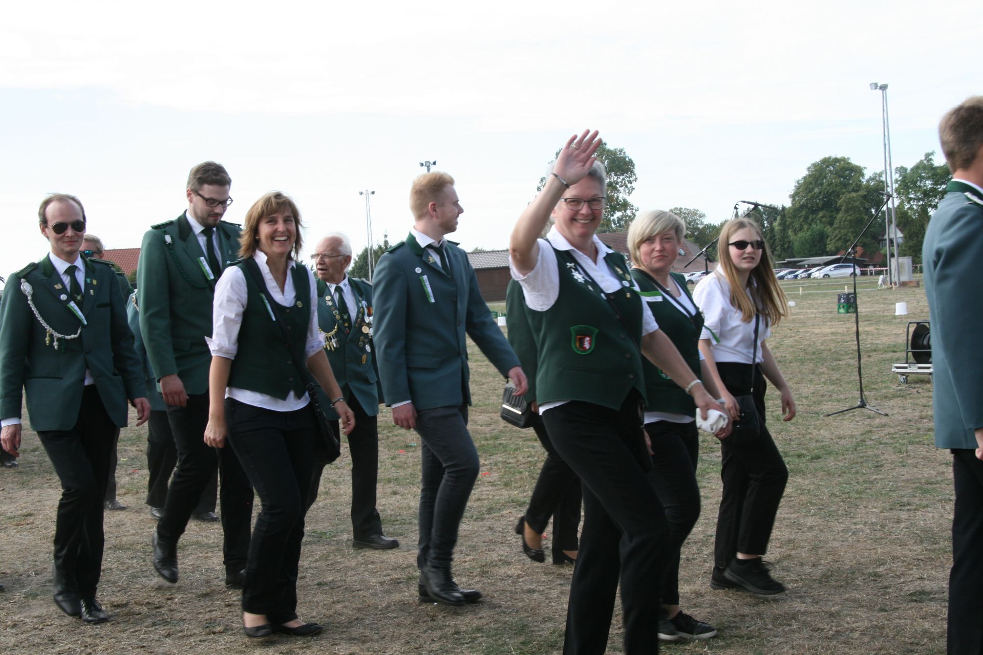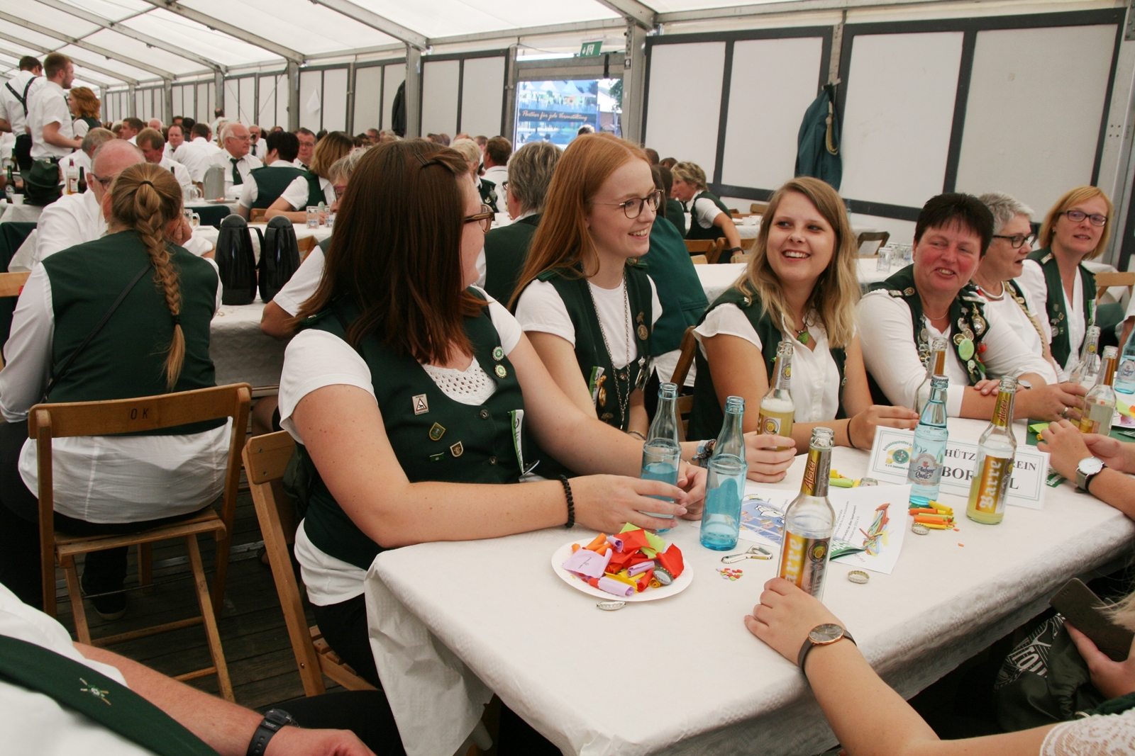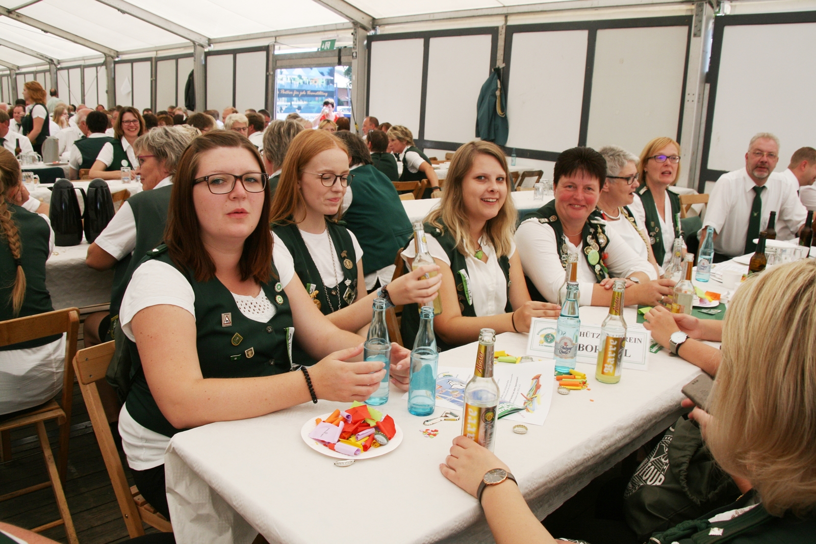 Anschließend gab es einen kurzen Marsch durchs Dorf ins Festzelt, dort wartete schon Kaffee u. Kuchen usw. auf die Schützen, mit anschließender Siegerehrung der im Vorfeld durchgeführten Schießwettbewerbe um die begehrten Pokale.