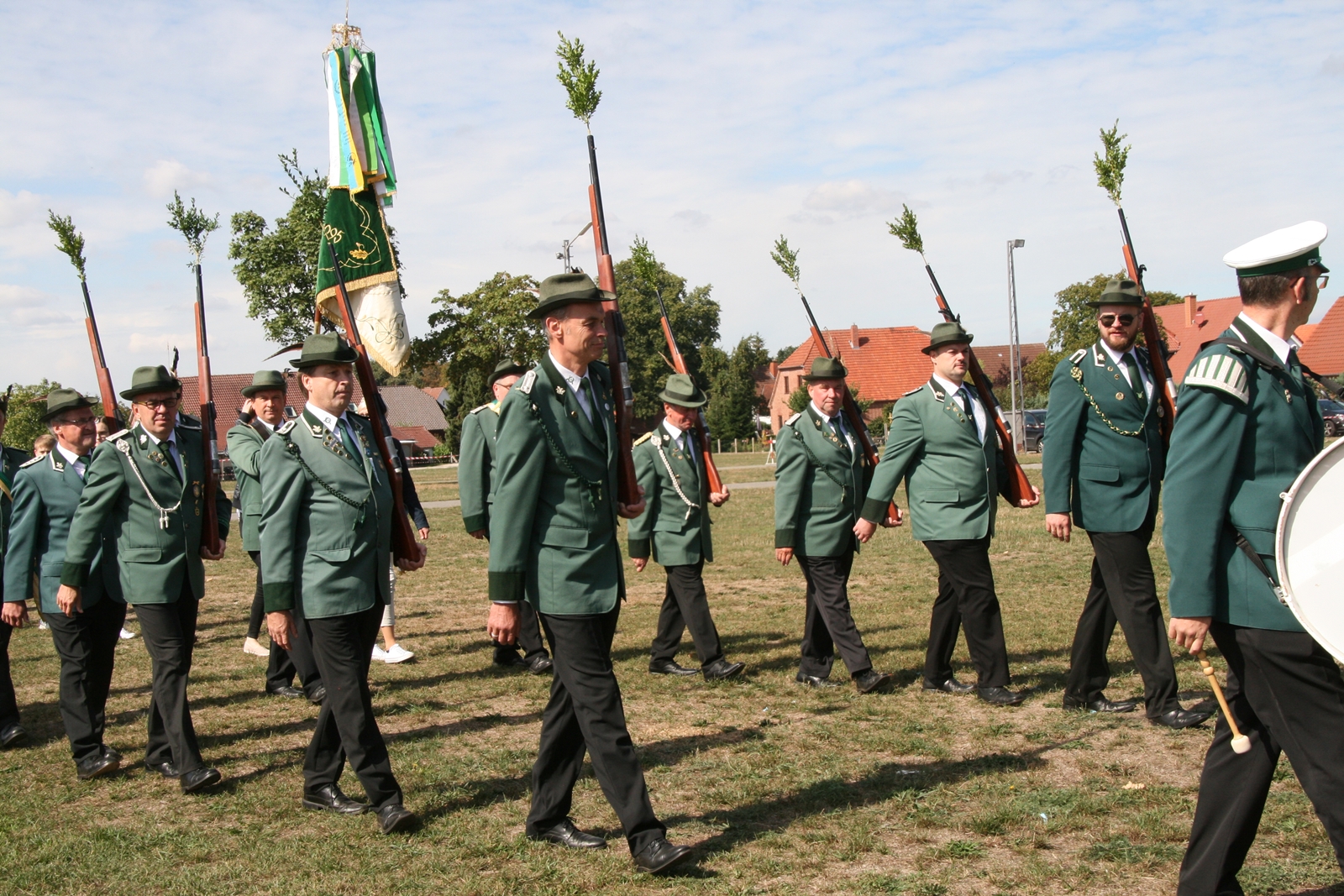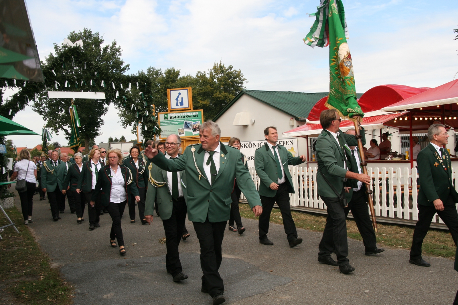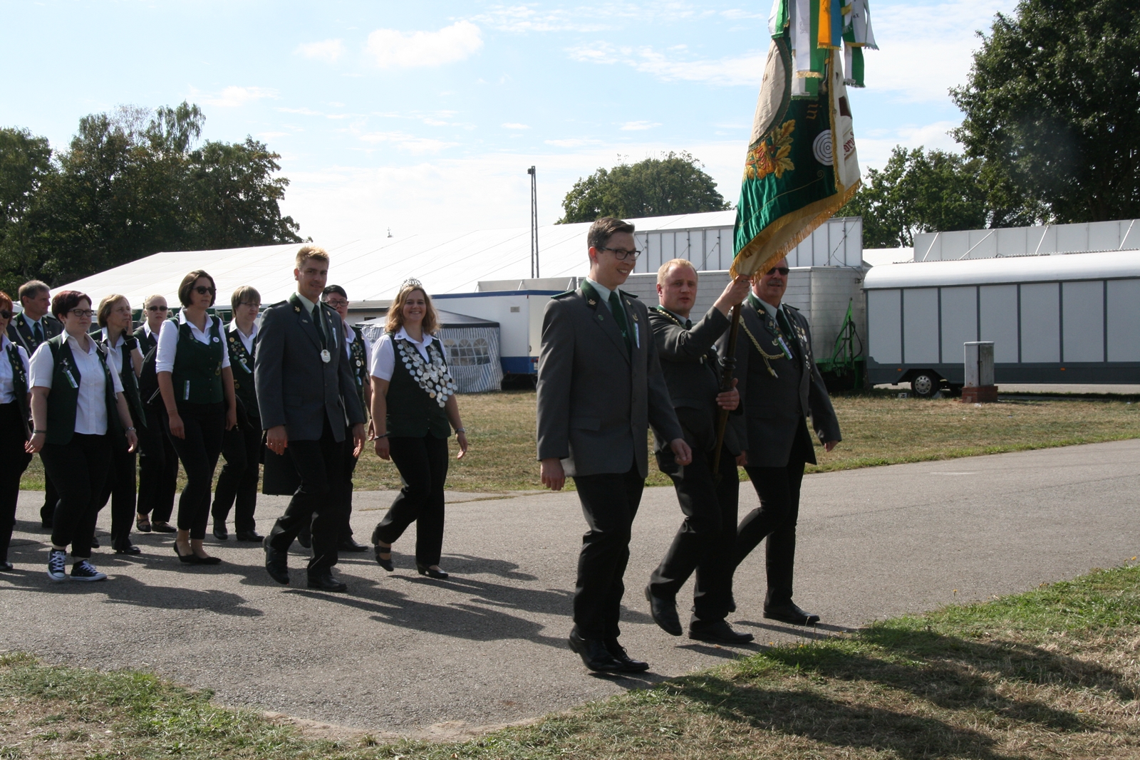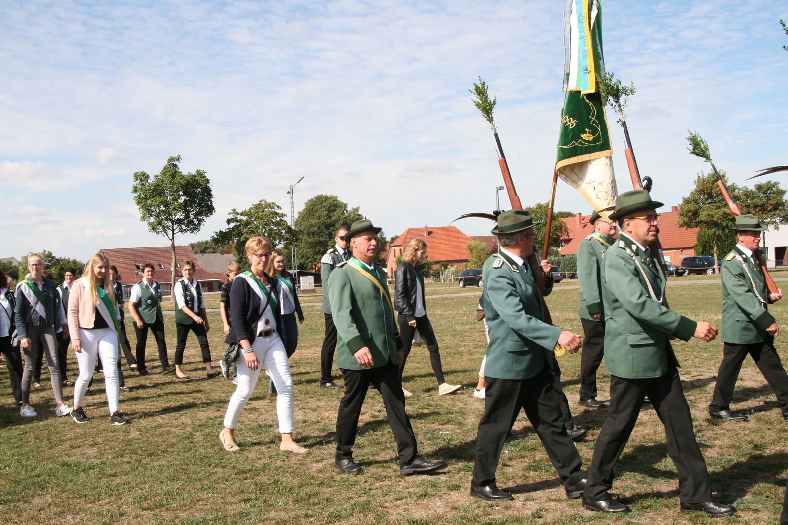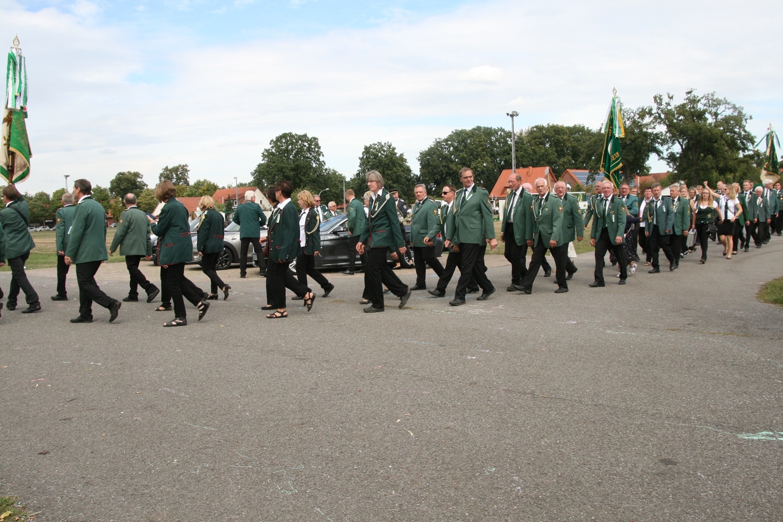 Anschließend gab es einen kurzen Marsch durchs Dorf ins Festzelt, dort wartete schon Kaffee u. Kuchen usw. auf die Schützen, mit anschließender Siegerehrung der im Vorfeld durchgeführten Schießwettbewerbe um die begehrten Pokale.