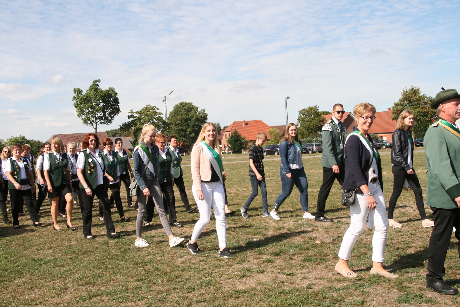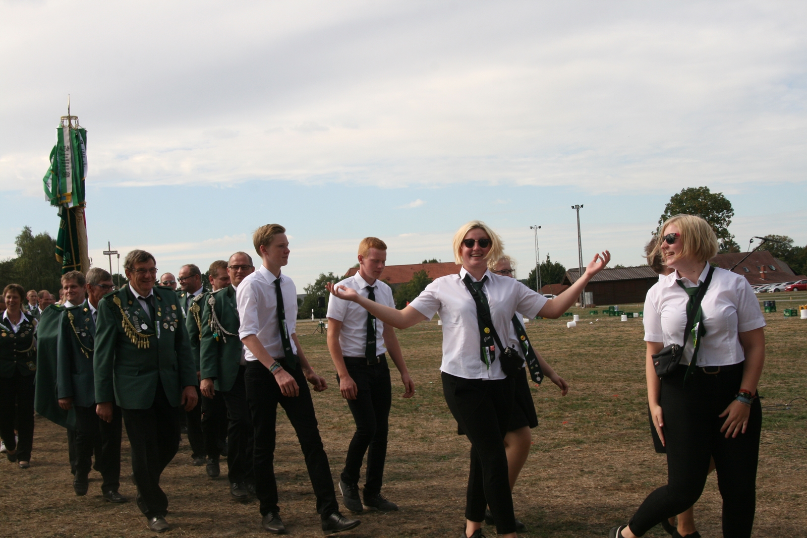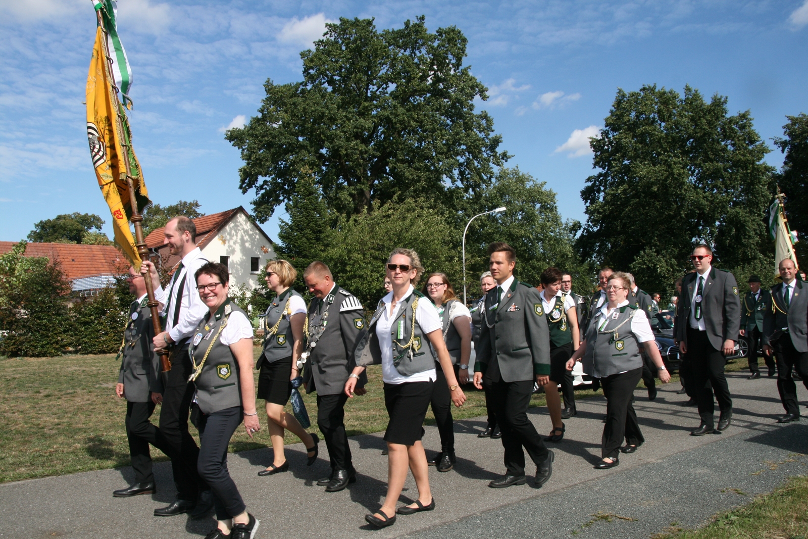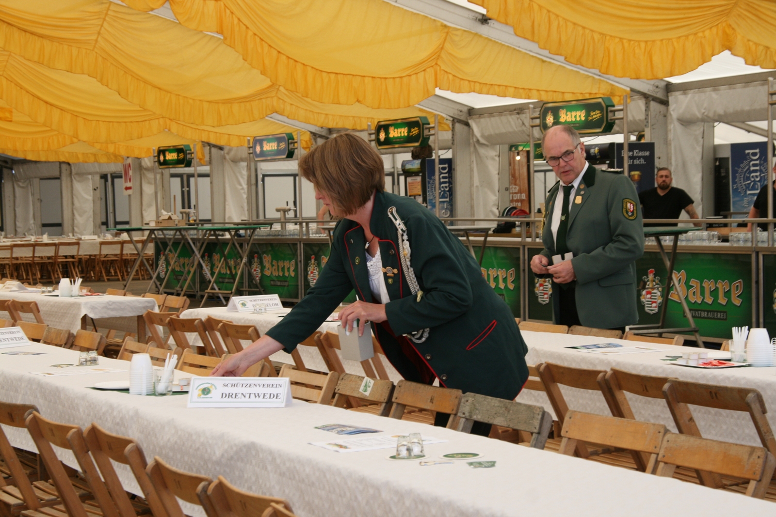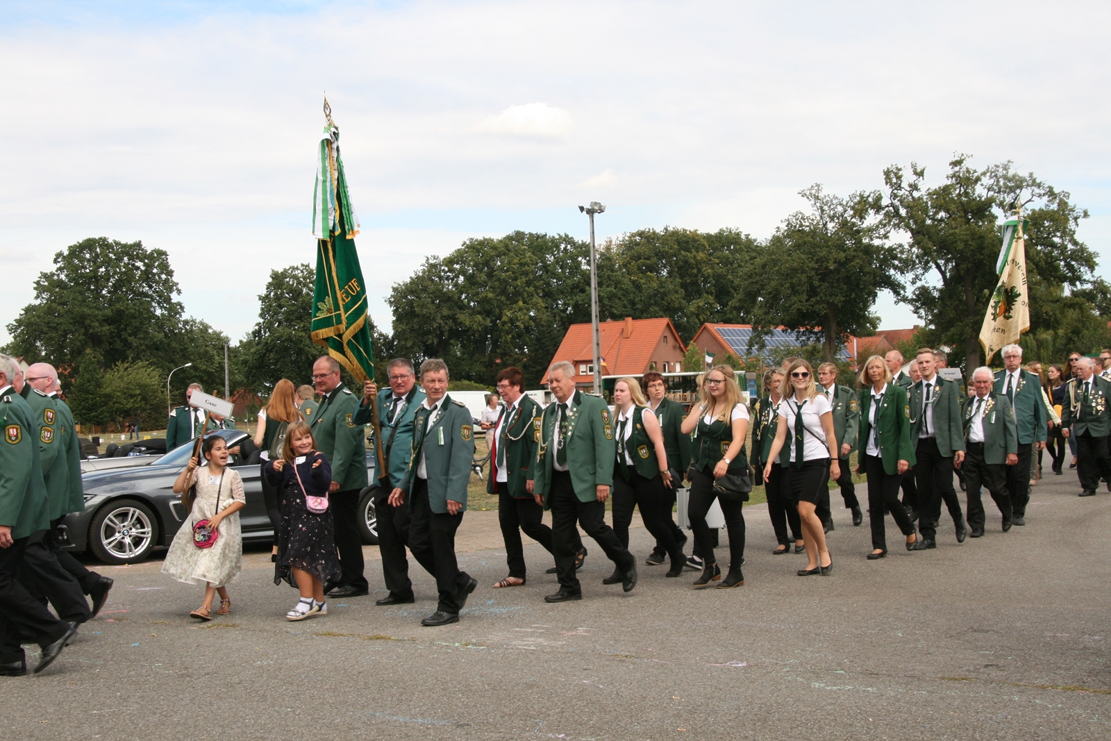 Anschließend gab es einen kurzen Marsch durchs Dorf ins Festzelt, dort wartete schon Kaffee u. Kuchen usw. auf die Schützen, mit anschließender Siegerehrung der im Vorfeld durchgeführten Schießwettbewerbe um die begehrten Pokale.