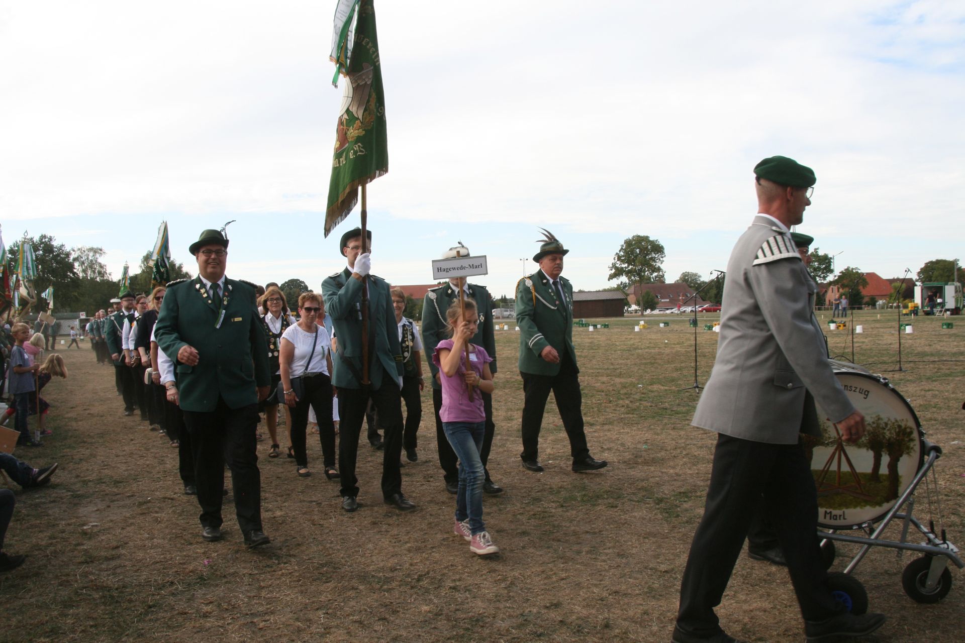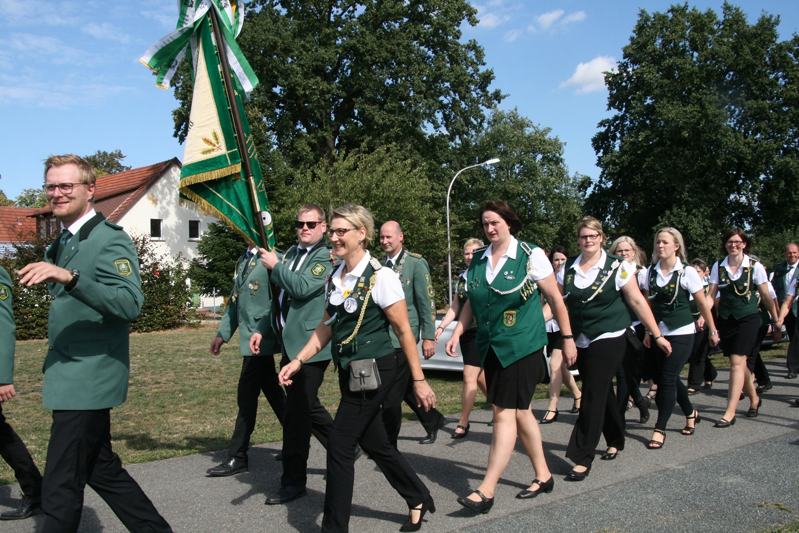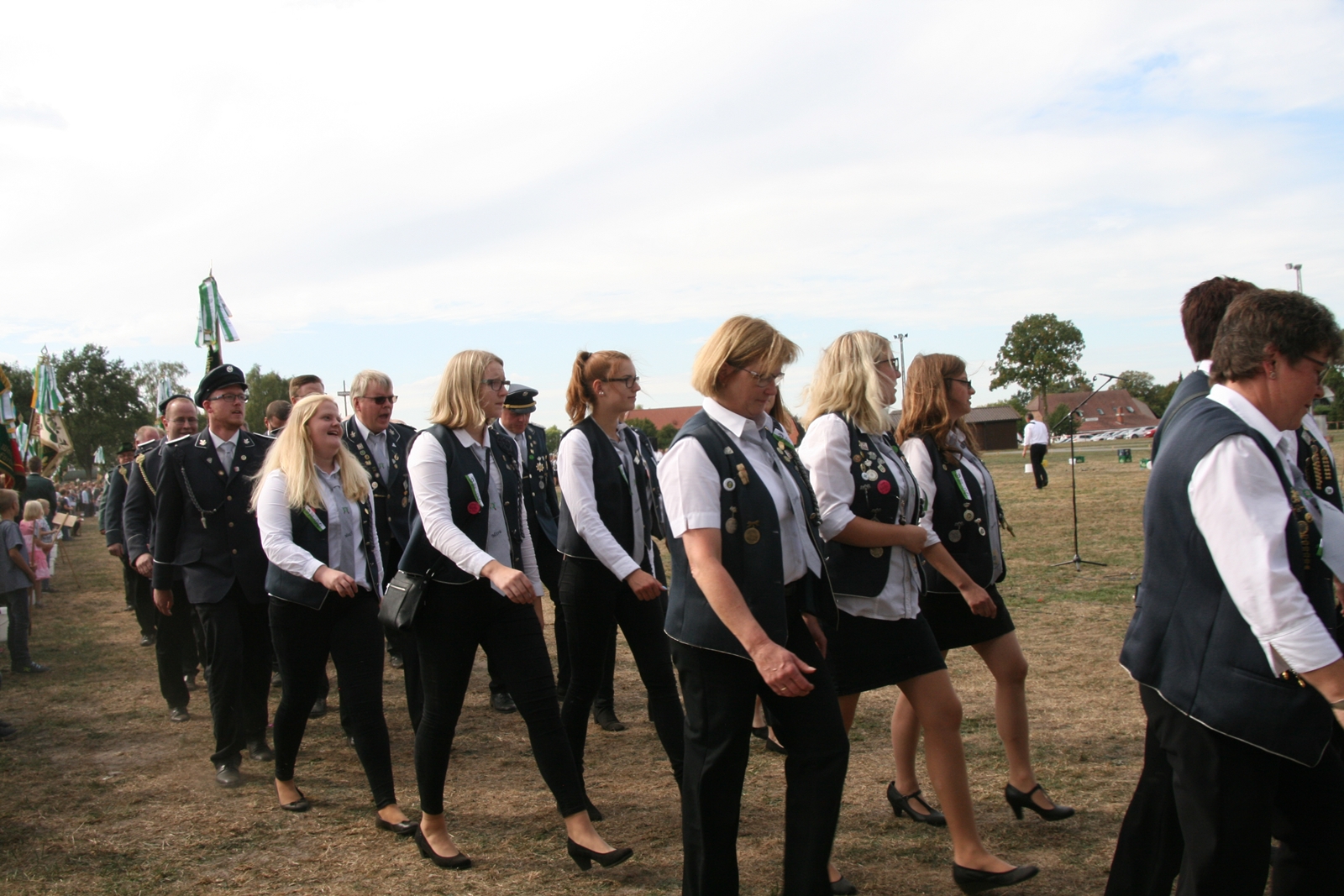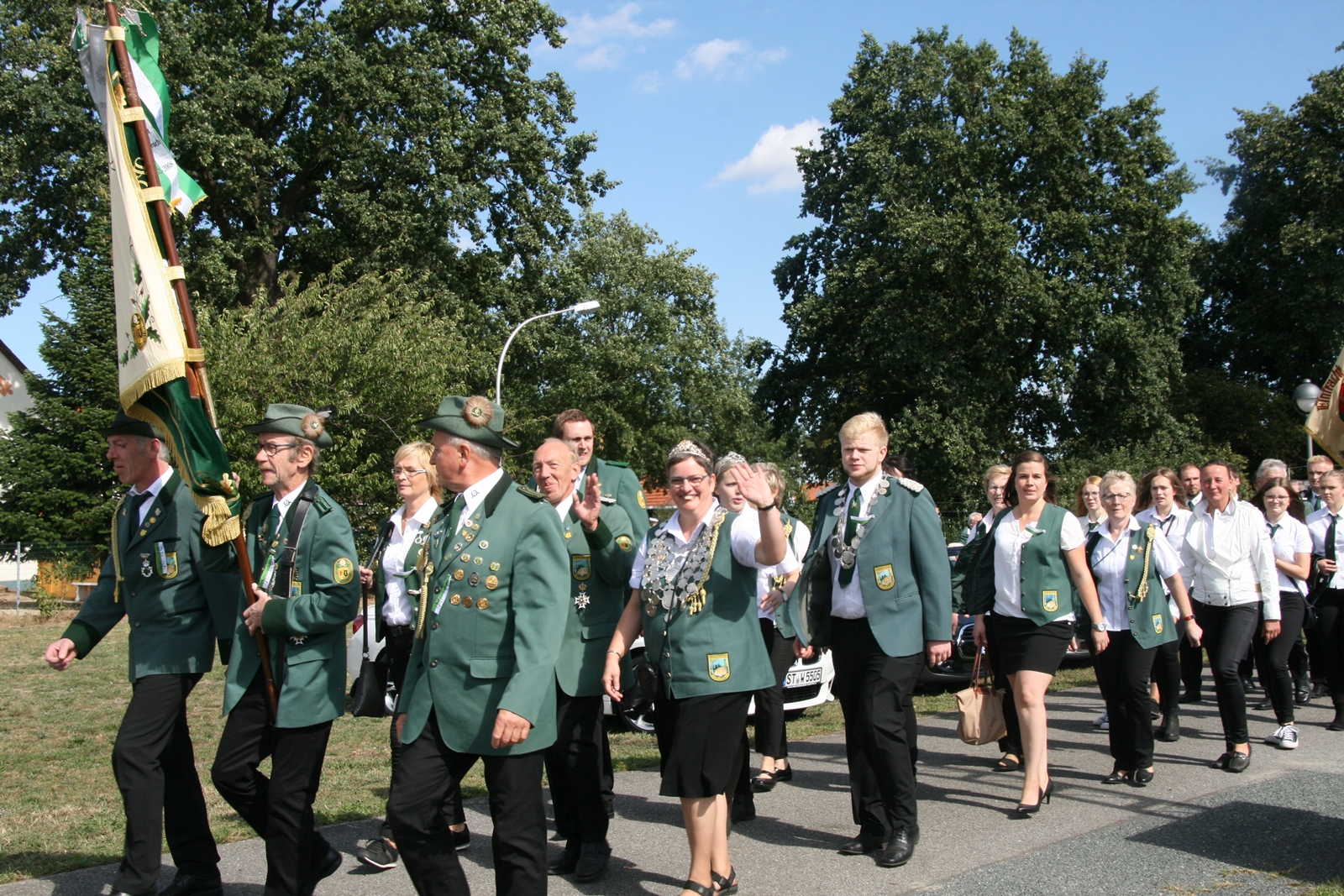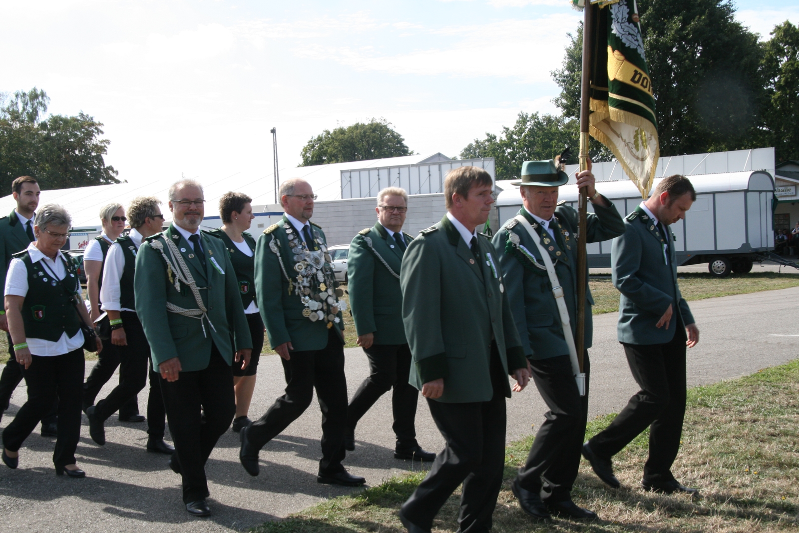 Anschließend gab es einen kurzen Marsch durchs Dorf ins Festzelt, dort wartete schon Kaffee u. Kuchen usw. auf die Schützen, mit anschließender Siegerehrung der im Vorfeld durchgeführten Schießwettbewerbe um die begehrten Pokale.