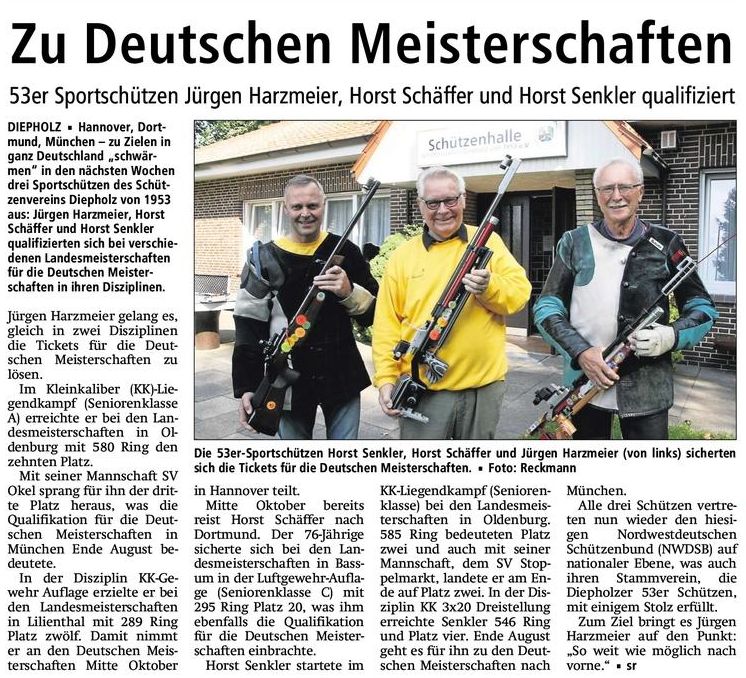 Der Artikel der Kreiszeitung hebt die Leistungen der drei Altersschützen noch einmal besonders hervor.
