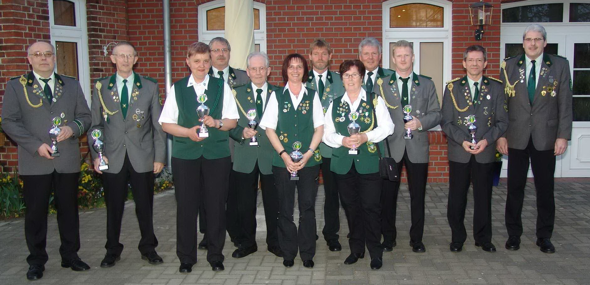Kreissportleiter Peter Brandt berichtete von 100 Starts bei der Kreismeisterschaft und vom Wanderpokalschießen der vier Kreisverbände, wobei man wieder einmal den dritten Platz belegte. Gemeinsam mit seinem Stellvertreter Uwe Müller überreichte er Pokale an die Plazierten der Kreismeisterschaft.