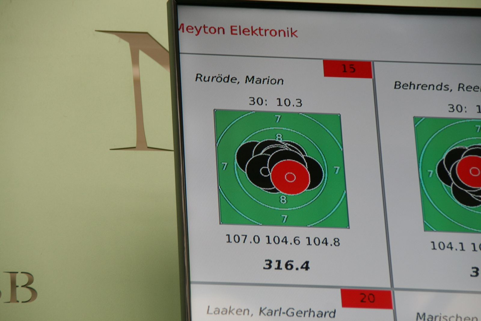Seine Vereinskollegin Sylvia Johnson Seniorinnen I, ist mit 317,3 Ring auf Rang 4 „gerutscht“, es fehlte nur ein Zehntel zu Platz drei und zwei Zehntel auf Platz zwei! In der gleichen Klasse konnte sich Vereinskollegin Rosemarie Fortmann mit 316,6 Ringen auf Platz 11 von den 83 Teilnehmerinnen platzieren.