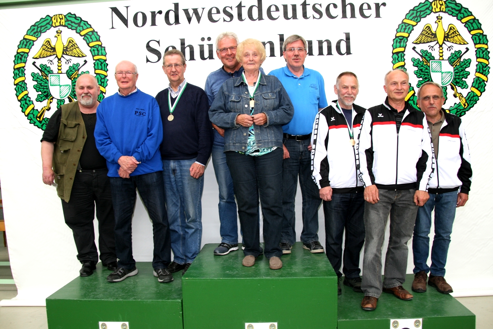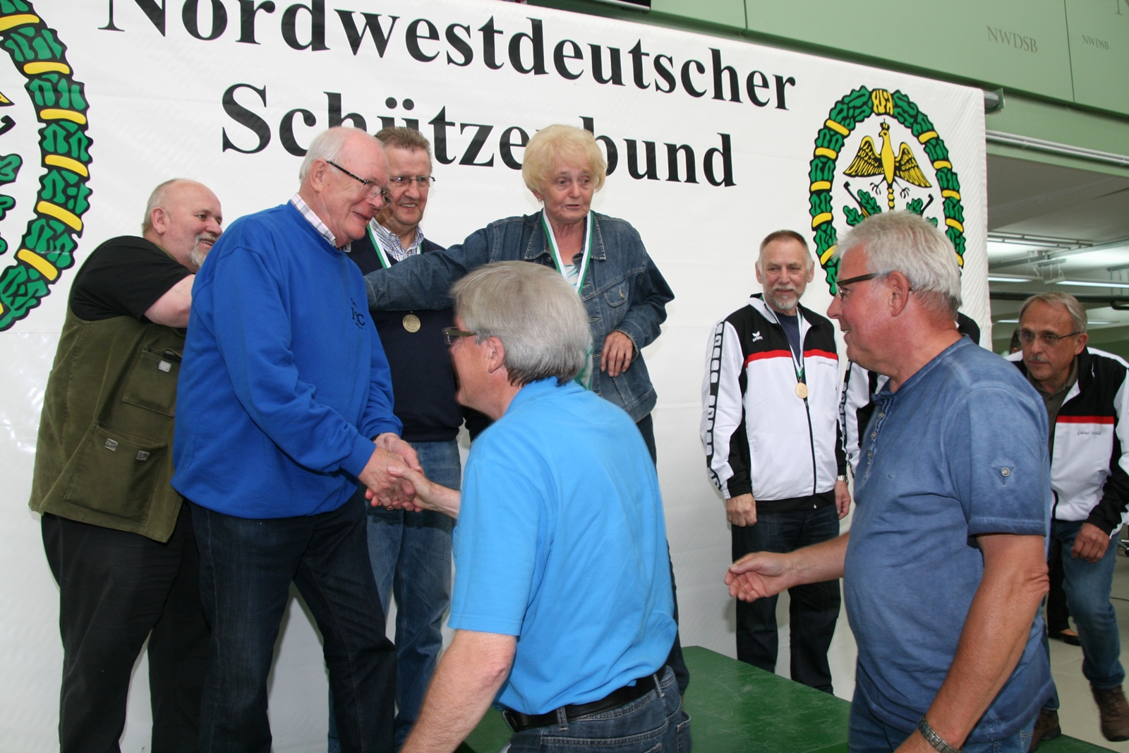 Vom Schützenverein Drebber von 1900 haben sich damit acht Schützen für die Deutsche Meisterschaft vom 14. bis 16. Oktober in Dortmund qualifiziert, zwei Mannschaften zu je drei Schützen (Uwe Bergmann, Rosemarie Fortmann, Jürgen Harzmeier, Karl-Heinz Brandt, Hermann Winkelmann-Bünte und Inge Lübbers) und die Einzelschützen Herbert Vormdohre und Johann Knake.