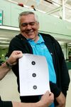 Noch „Jungschütze“ Stefan Runge hat bei seiner ersten Landesmeisterschaftsteilnahme gleich „zugeschlagen“: mit 316,1 Ringen setzte er sich an die Spitze der 93 Teilnehmer in der Seniorenklasse 0, NWDSB-Vizepräsident Uwe Drecktrah überreichte dem Überglücklichen die GOLDMEDAILLE!