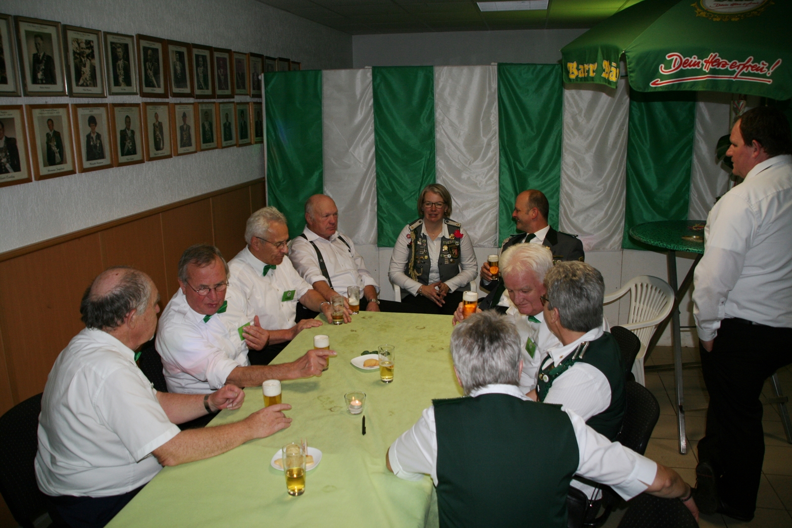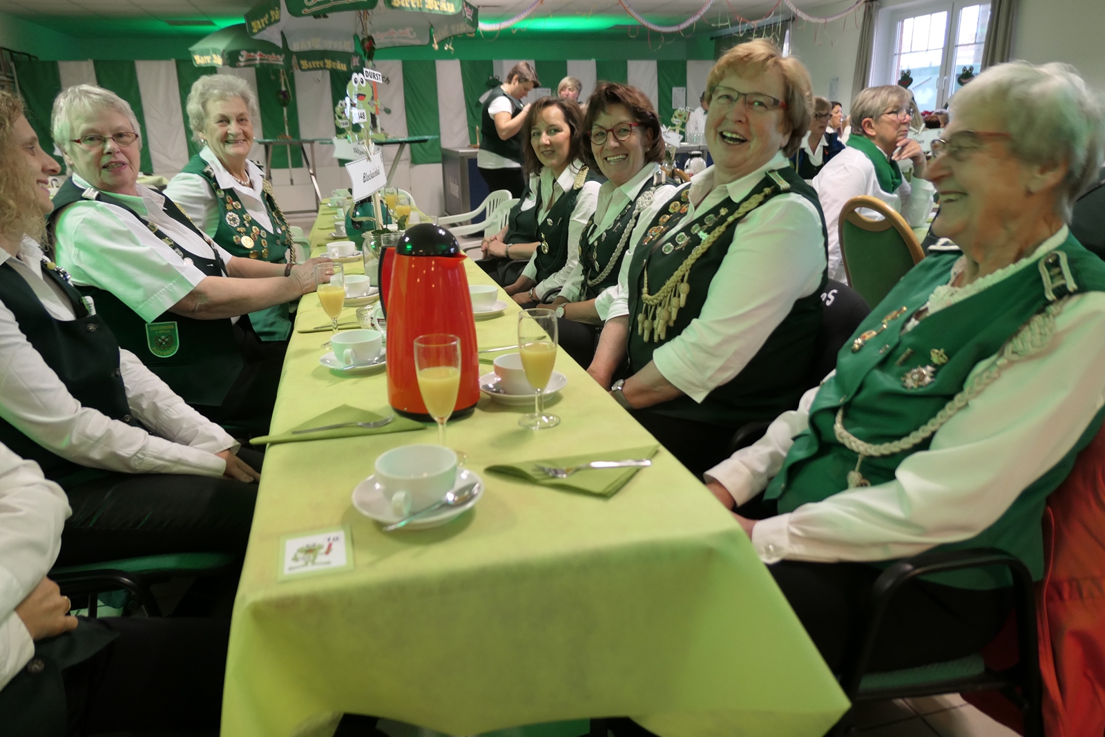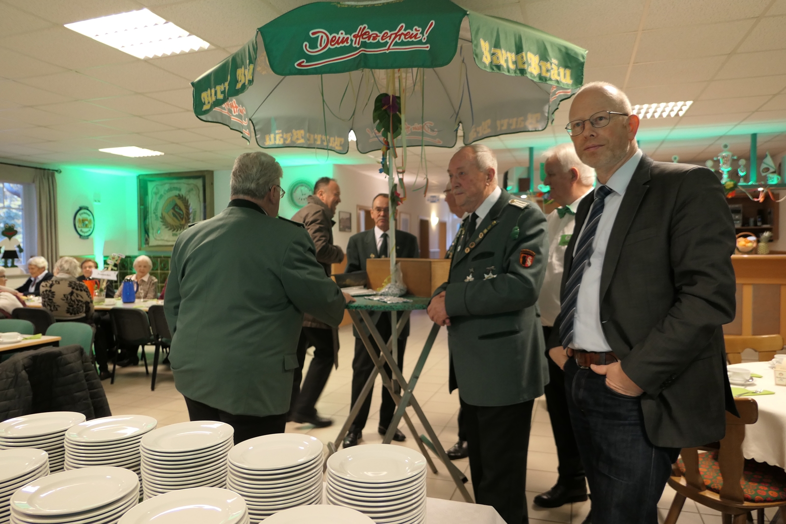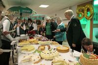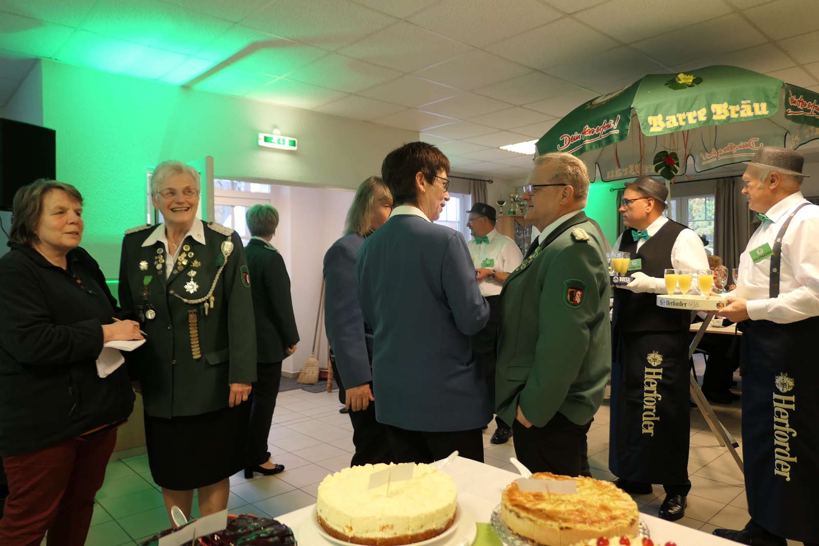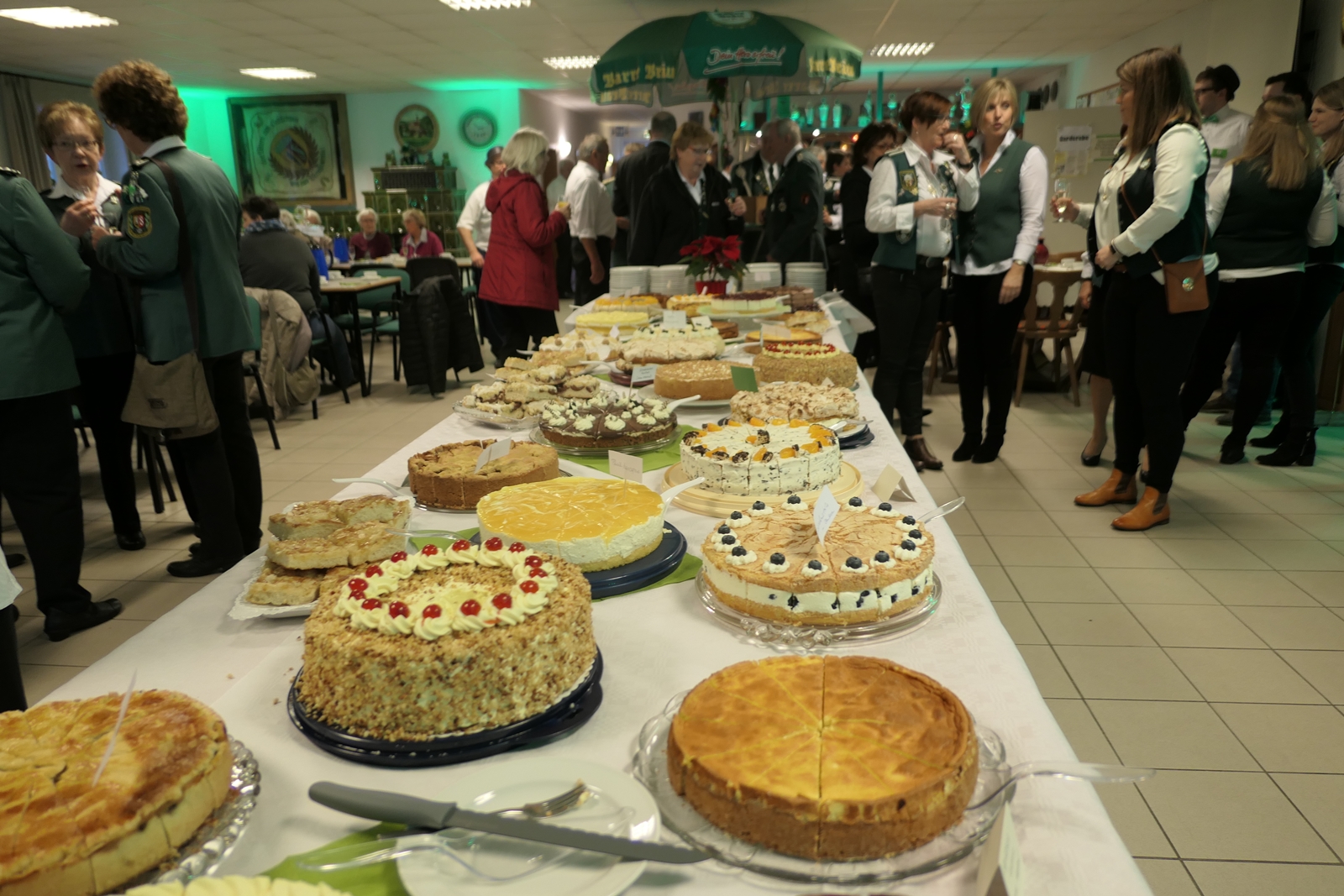 Das tolle, reichhaltige Kuchenbuffet war dann das Ziel aller. Die 1848er Schützenbrüder mit Melone und „Fliege“ ausgestattet, hatten das Zepter für die Bedienung in der Hand, ein kurzer Wink von den Damen mit ihrer „Ützen-Kelle“ und sie brachten die gewünschten Getränke.
