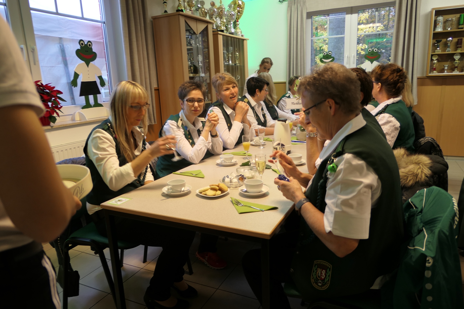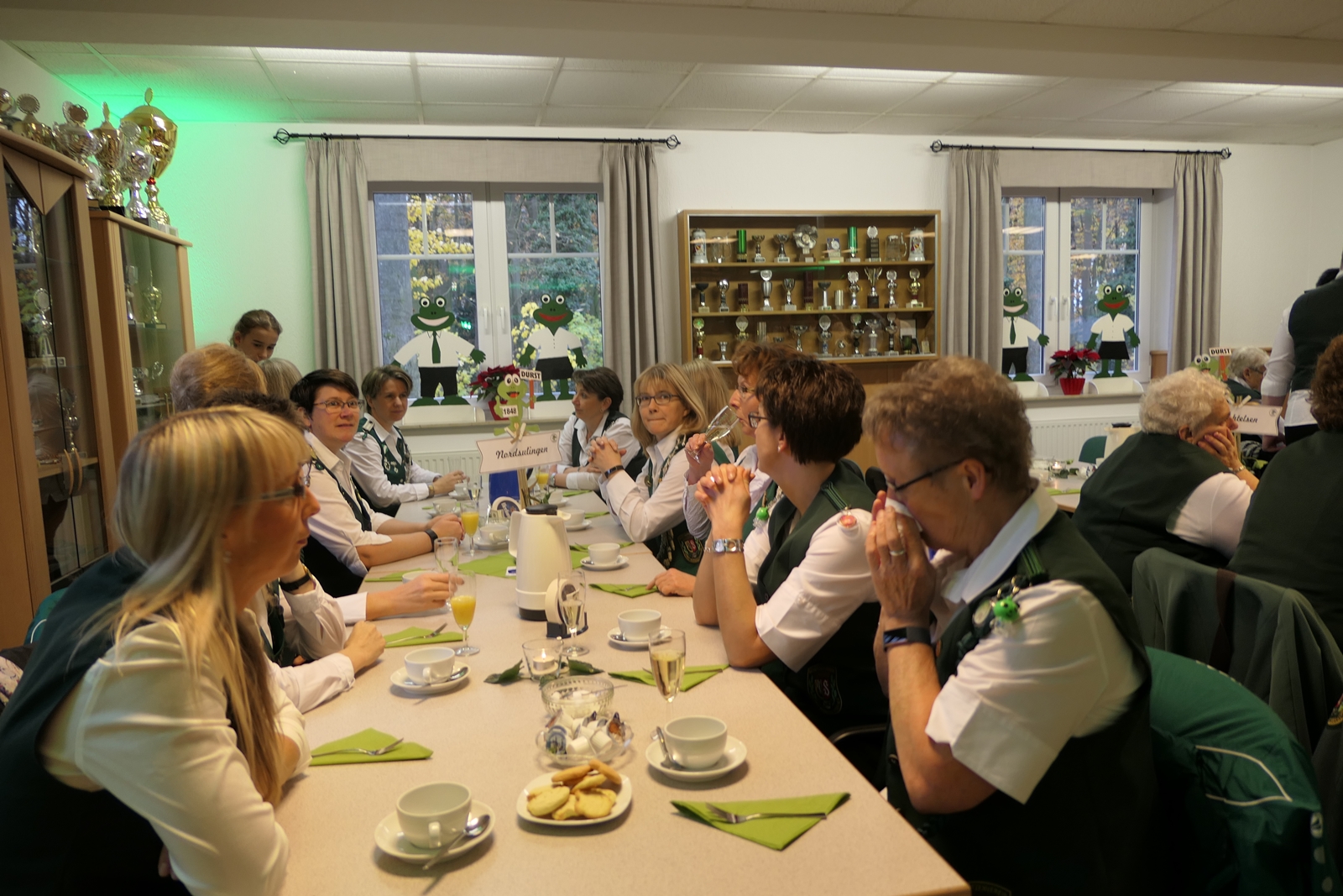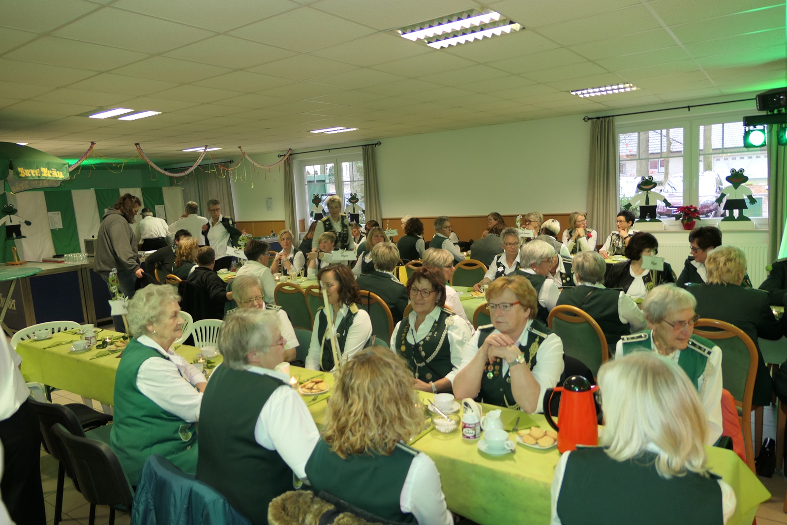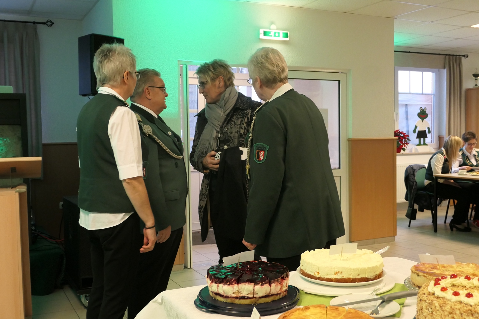 Das tolle, reichhaltige Kuchenbuffet war dann das Ziel aller. Die 1848er Schützenbrüder mit Melone und „Fliege“ ausgestattet, hatten das Zepter für die Bedienung in der Hand, ein kurzer Wink von den Damen mit ihrer „Ützen-Kelle“ und sie brachten die gewünschten Getränke.