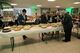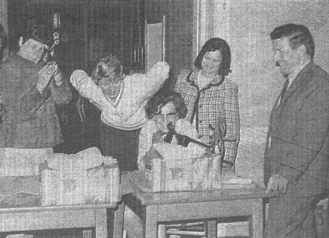 Die Aufnahme zeigt einige Mitglieder der Damensportgruppe des SV von 1848 Sulingen beim Training mit aufmerksam zuschauendem Vizepräsidenten Wolfgang Schäfer bei Zielübungen im Cafe Eickhoff. Am Luftgewehr sitzend Margitta Husmann, von links: Isolde Evers LG Freihand, Karin von Seggern (Kenneweg) und Anita Schäfer.