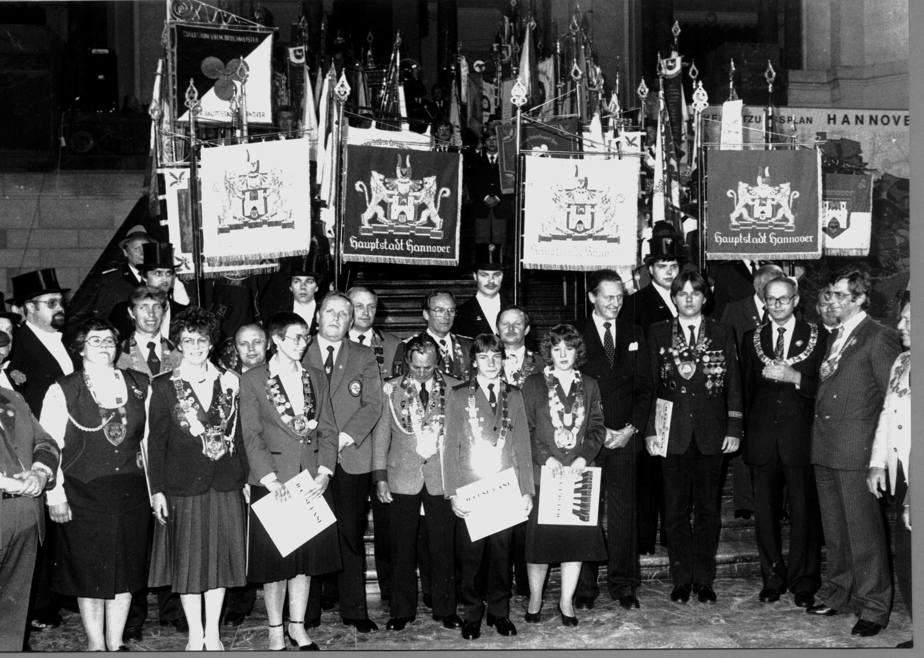 Viele Schützenmitglieder mit musikalischer Unterstützung des damaligen Spielmannszugs Sulingen von 1954, begleiteten die Königinnen, und Prinzessinnen sowie die Ritter, die aus dem 1848er Verein hervorgingen, gerne bei den Schützenfestumzügen in Hannover.