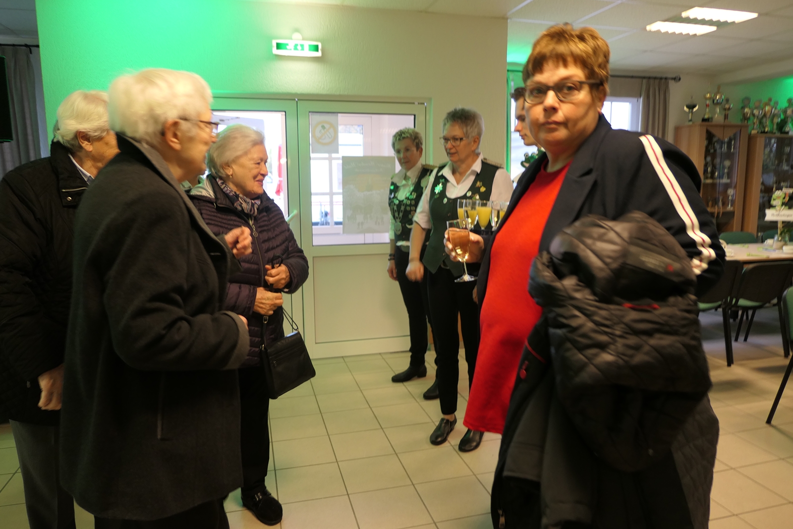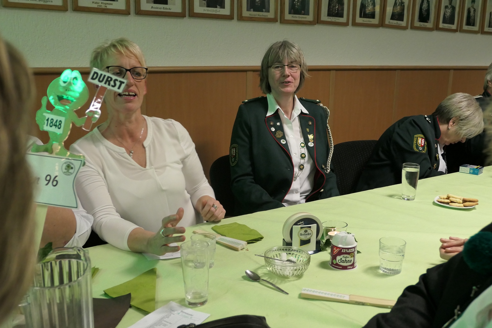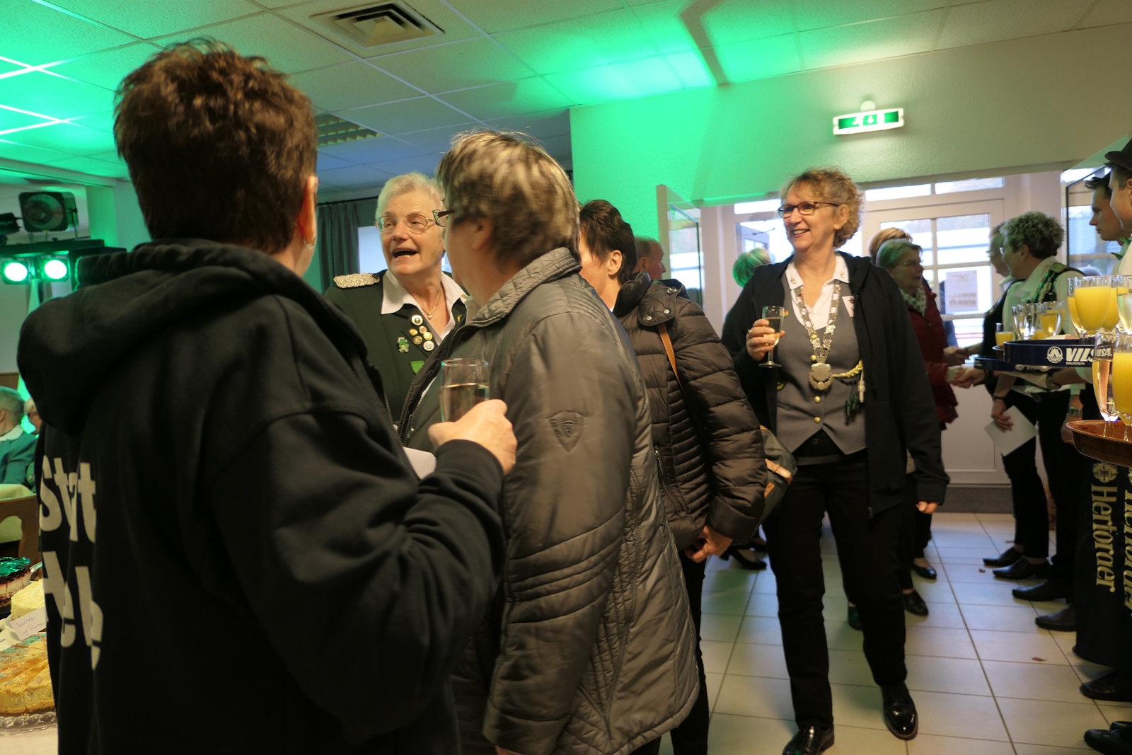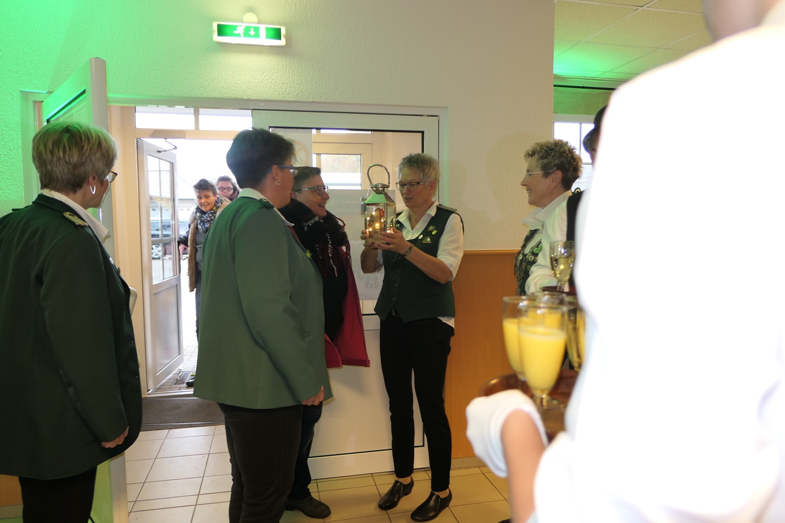 Die Glückwünsche zum Jubiläum der 1848er Damen, wurden von Königin Bianca Müller, Herta Ehlers, Hildegard Aufderhardt und Marlies Immoor-Koopmann entgegengenommen. Das Willkommensgetränk reichten Schützen, vornehm gekleidet mit Melone u. grüner Fliege, den eintreffenden Gästen.