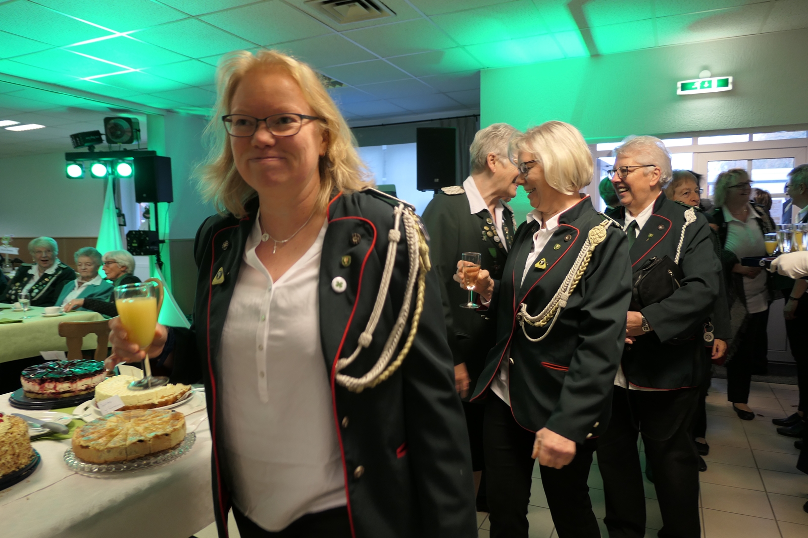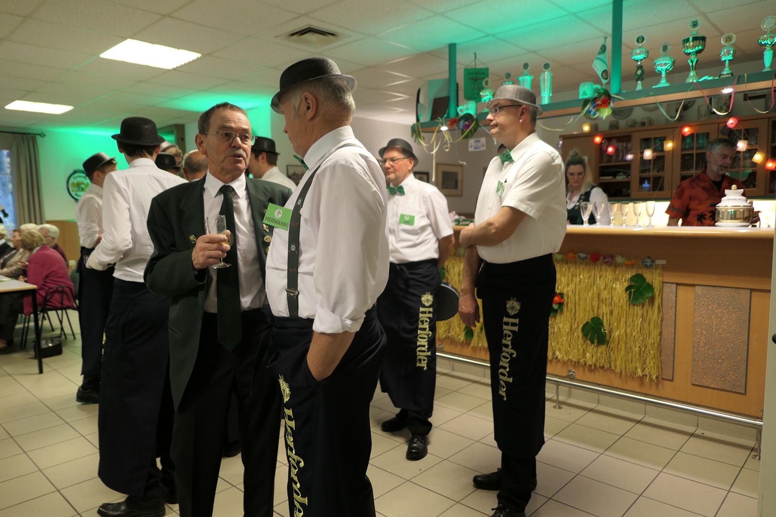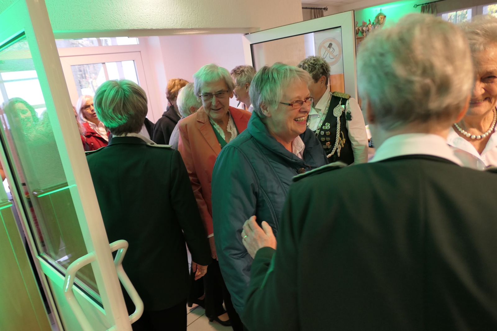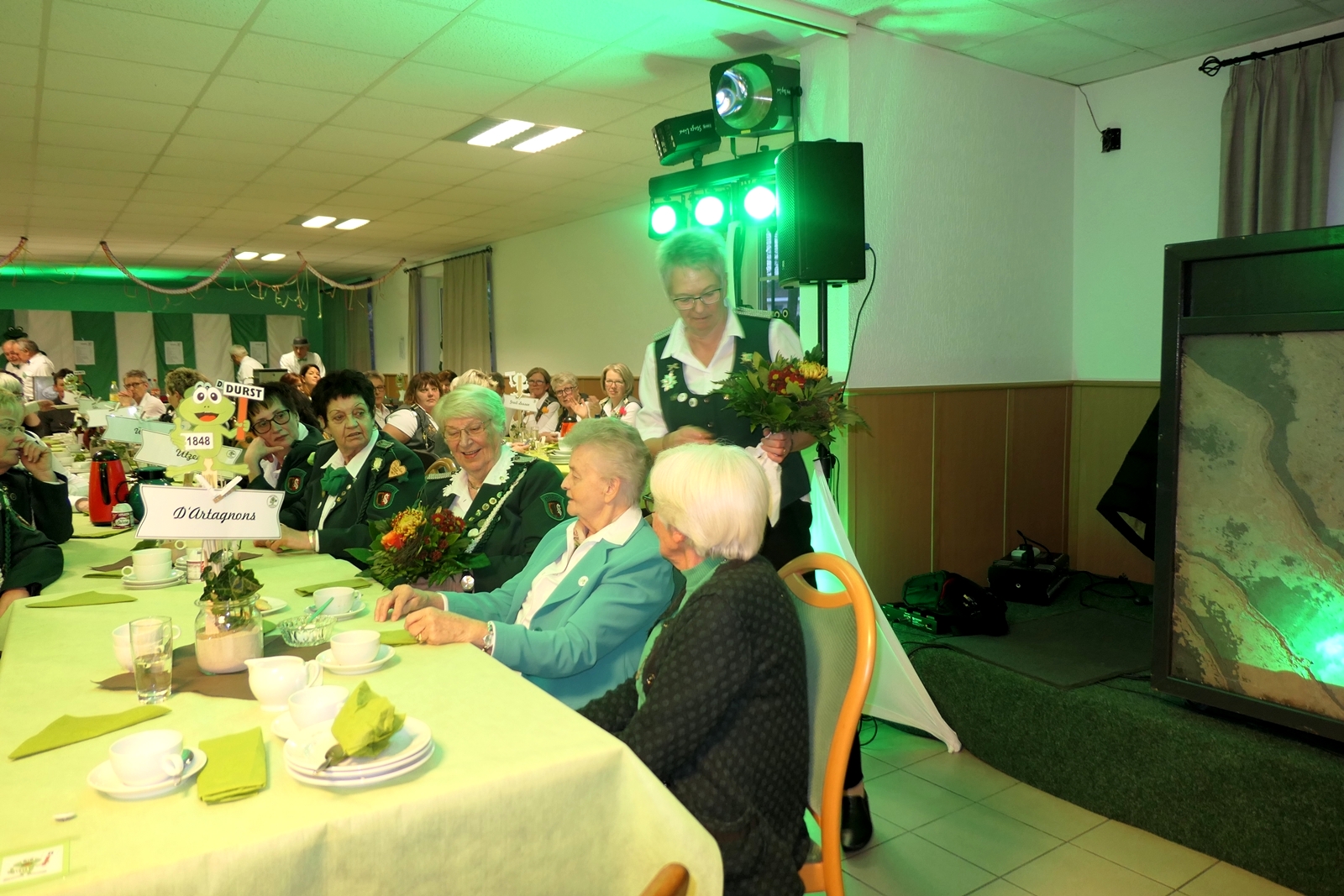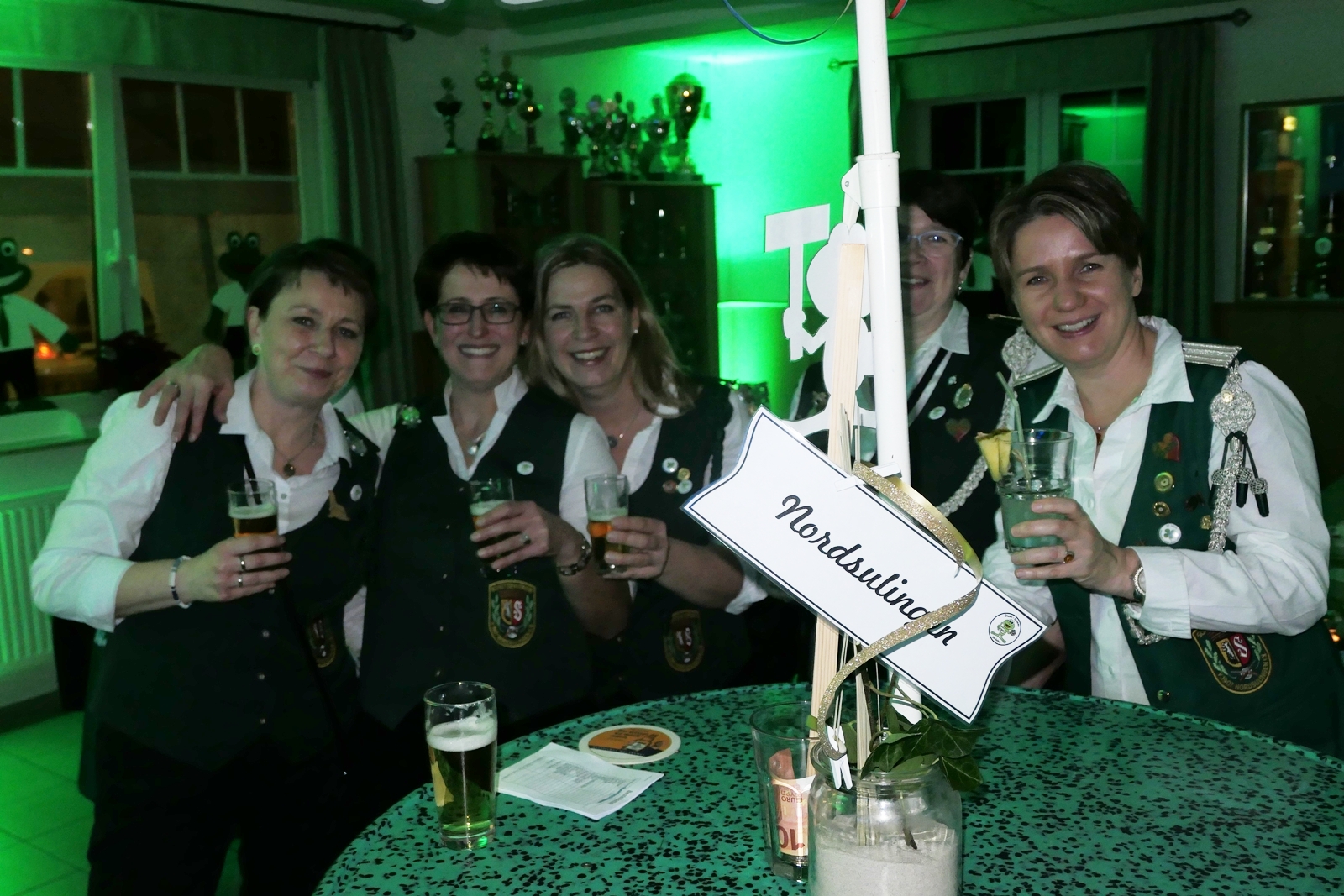 Die Glückwünsche zum Jubiläum der 1848er Damen, wurden von Königin Bianca Müller, Herta Ehlers, Hildegard Aufderhardt und Marlies Immoor-Koopmann entgegengenommen. Das Willkommensgetränk reichten Schützen, vornehm gekleidet mit Melone u. grüner Fliege, den eintreffenden Gästen.