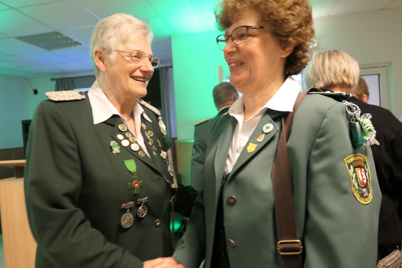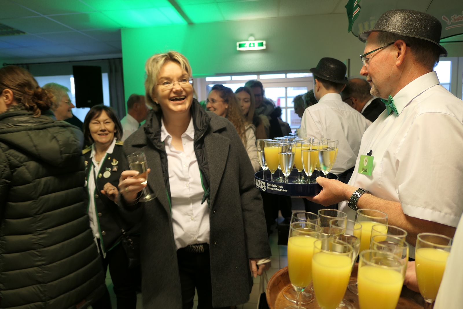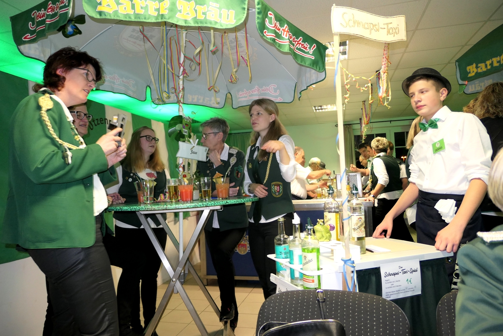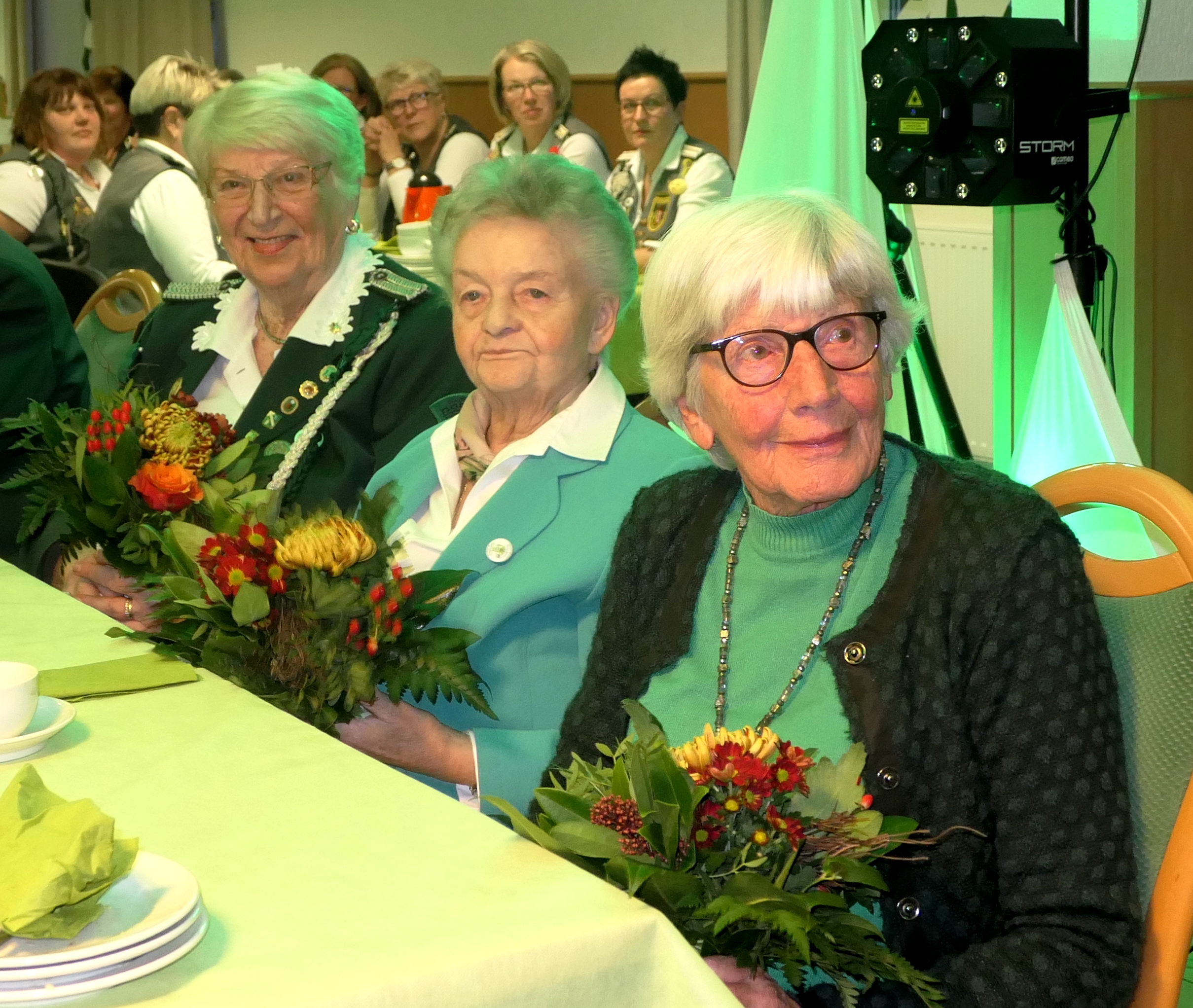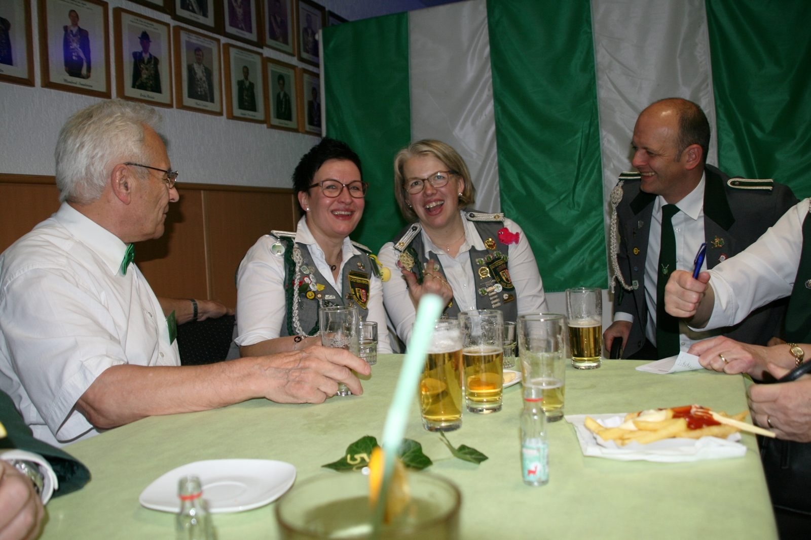 Die Glückwünsche zum Jubiläum der 1848er Damen, wurden von Königin Bianca Müller, Herta Ehlers, Hildegard Aufderhardt und Marlies Immoor-Koopmann entgegengenommen. Das Willkommensgetränk reichten Schützen, vornehm gekleidet mit Melone u. grüner Fliege, den eintreffenden Gästen.