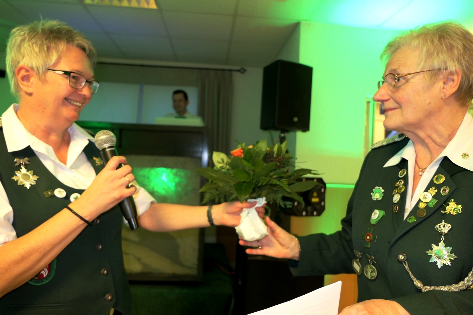 Den anwesenden drei Gründungsmitgliedern Karin von Seggern, Inge Kording und Ursula Nagel überreichte Herta Ehlers Blumensträuße. Sie dankten damit den Damen, dass sie sich damals „getraut“ haben dem Schützenverein beizutreten, und Marlies Immoor-Koopmann erhielt von ihr ebenfalls einen Strauß für ihren Rückblick.
