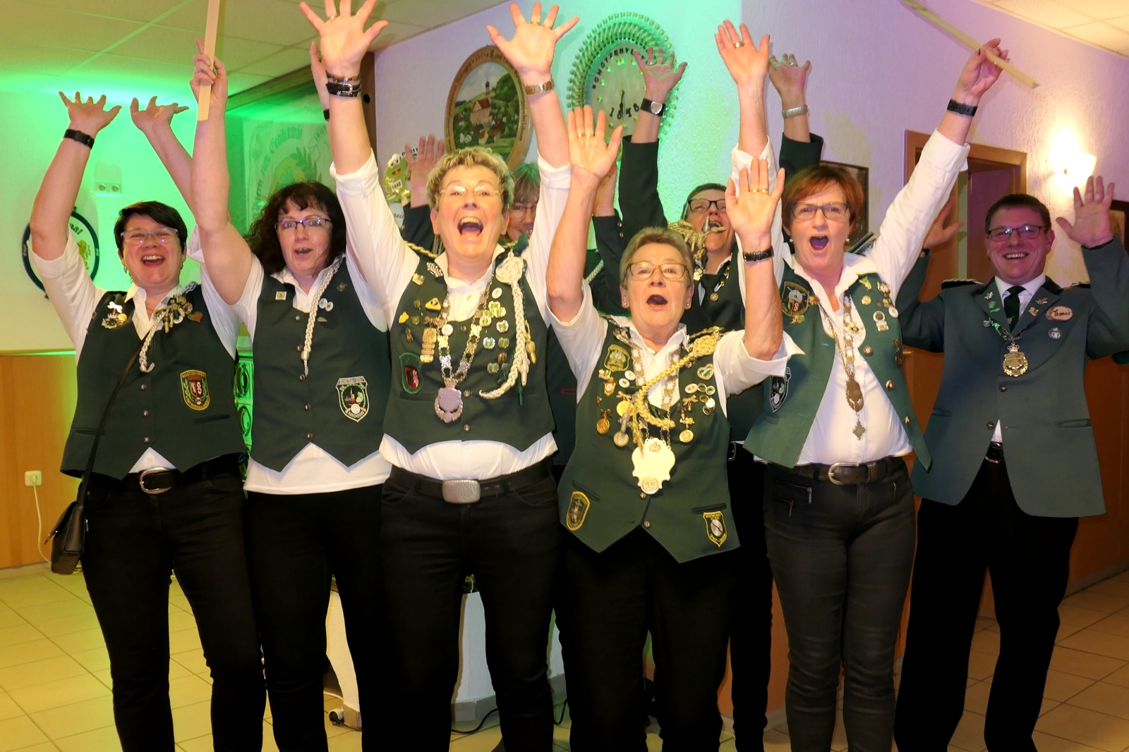 Seit 1974 sind ja auch die Damen berechtigt, um die Königswürde zu kämpfen. In diesem Jahr passend zum Jubiläum, sind alle Königstitel in weiblicher Hand. Bianca Müller ist die elfte Königin des Vereins, Kinderkönigin ist Pia-Lotte Leymann und Jugendkönigin ist Anja Gössele, als Kohlkönigin fungiert in diesem Jahr Catherine Dohrmann.