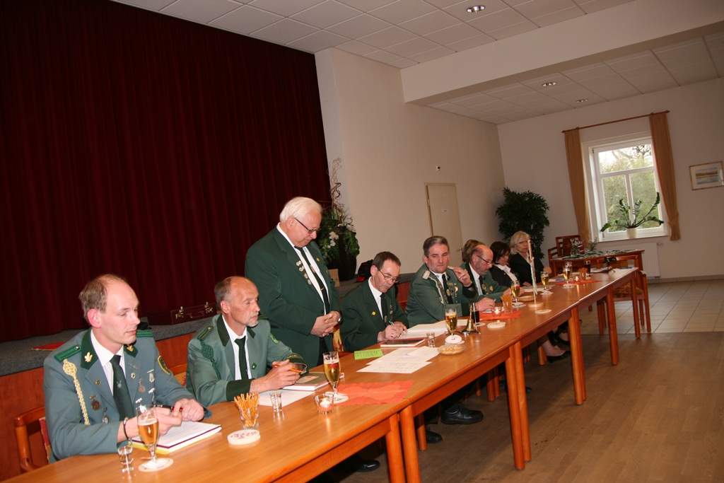 Am 24. April begrüsste Kreisverbandspräsident Dieter Lüdeke pünktlich 19:30 Uhr alle recht herzlich im Dorfgemeinschaftshaus in Schwaförden, der Schützenverein Mallinghausen war in diesem Jahr Ausrichter des Delegiertentages. Sein besonderer Gruß galt Günter Herzig als Vizepräsident des Bezirksschützenverbandes, Bernd Bolte, als Präsident des ausrichtenden Vereins mit seinem „Thekenteam“, Kreisverbandsjugendkönig Jonas Ehlers vom Schützenverein von 1848 Sulingen, Kreisverbandskinderkönigin Elaine Becker von der Schützengesellschaft von 1896 Sulingen, Pressewartin Marianne Vallan sowie alle anwesenden Majestäten. 53 Delegierte waren aus den Vereinen Brake, Blockwinkel, Ehrenburg, Mallinghausen, Schwaförden, SG von 1896 Sulingen und SV von 1848 Sulingen anwesend. Zur Totenehrung hatten sich alle von den Plätzen erhoben, man gedachte ehrend aller im vergangenen Jahr Verstorbenen.
