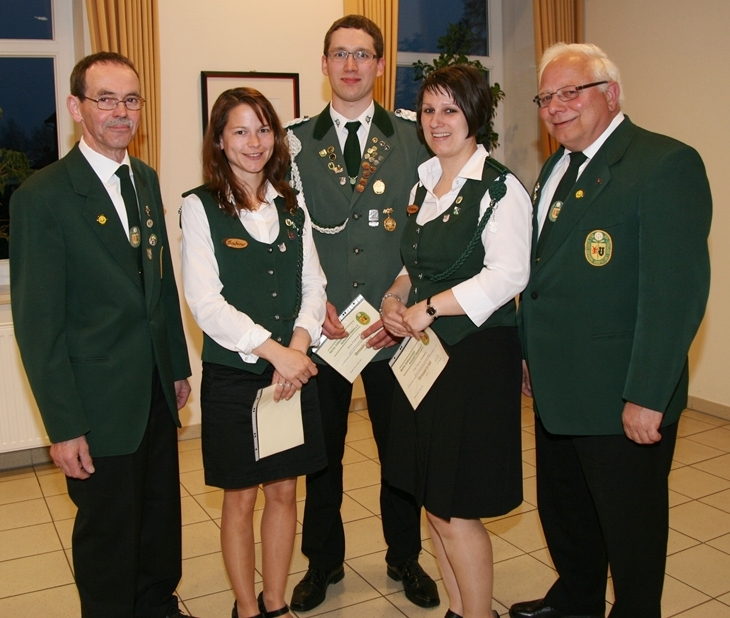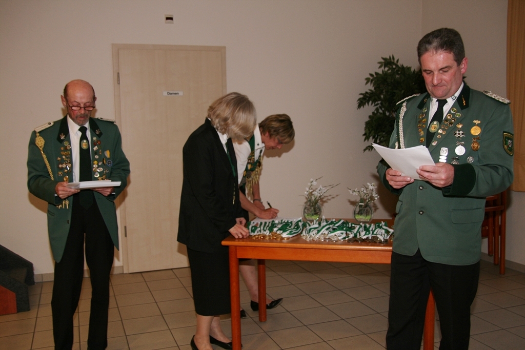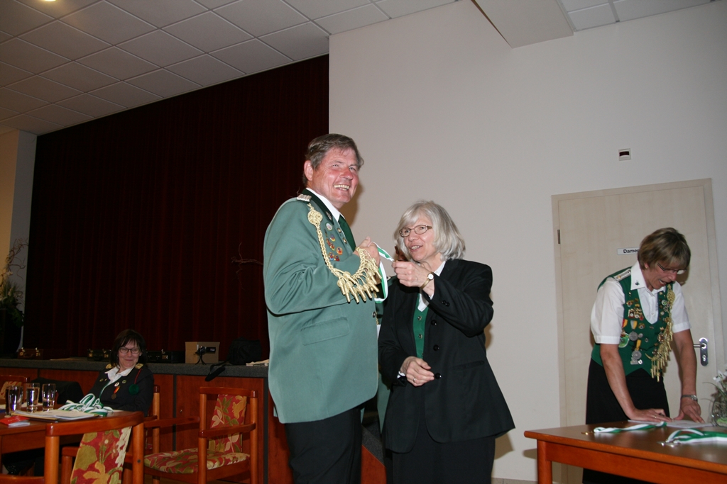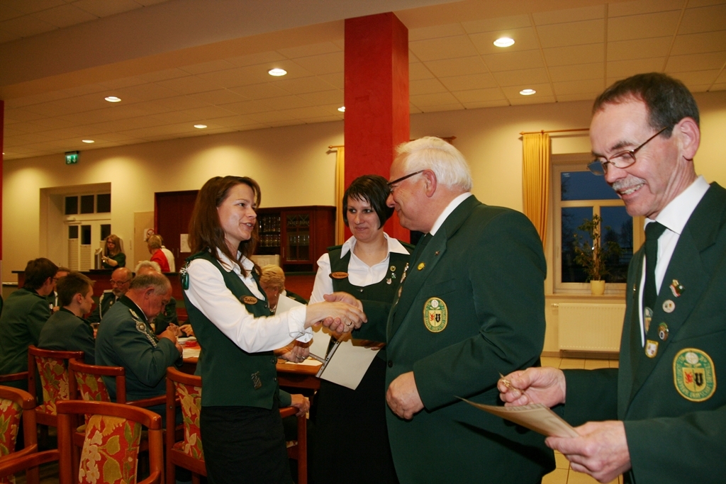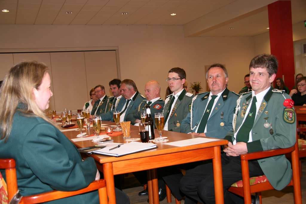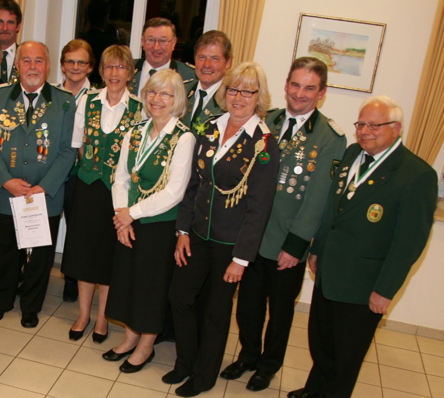 Mit der Ehrengabe des Kreisverbandes wurden Rosemarie Wowries als 2. Prinzessin des NWDSB 2014 und DM-Teilnahme LG Auflage in Dortmund und Sabine Prochazka für ihre Teilnahme an den Deutschen Meisterschaften im 60 Schuß Liegendprogramm in München ausgezeichnet. Eingerahmt von Präsident Dieter Lüdeke, Stellvert. Sportleiter Günter Prochazka und Sportleiter Udo Bolte.