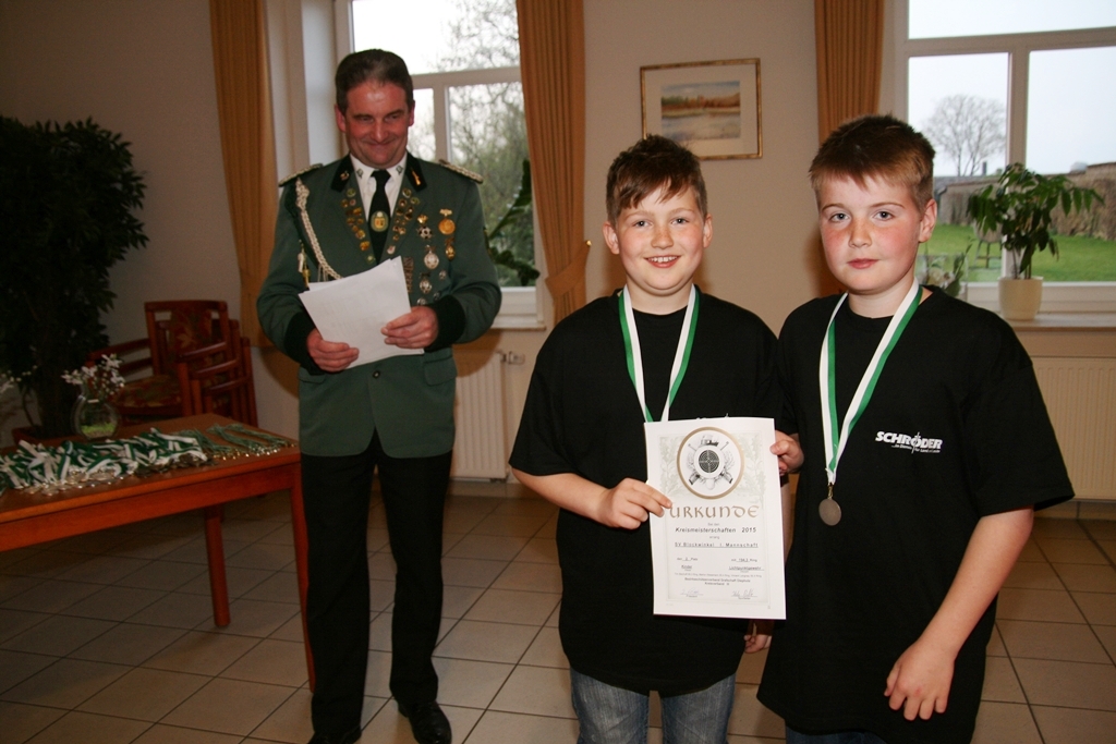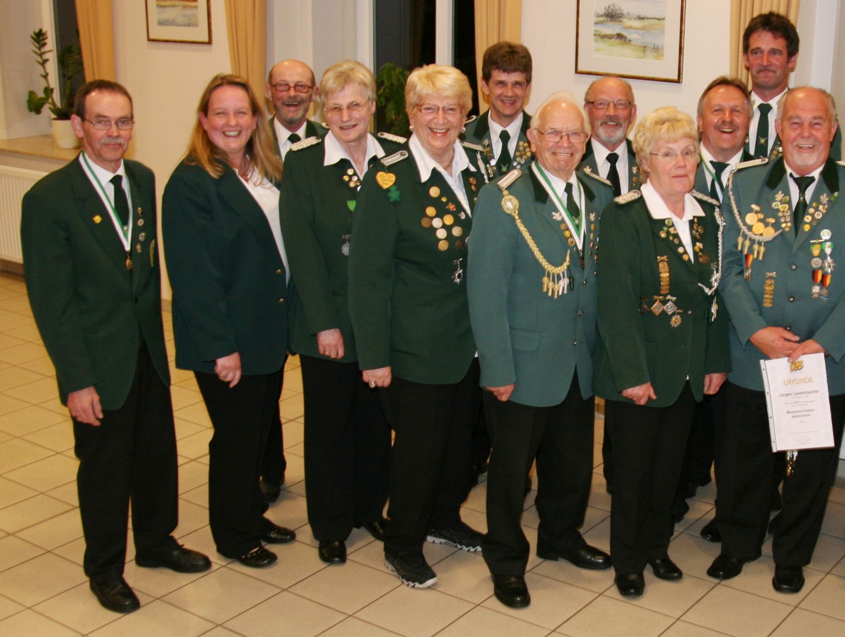 Alle anwesenden Kreismeister, links KV III-Präsident Dieter Lüdeke und rechts Bezirksvizepräsident Günter Herzig