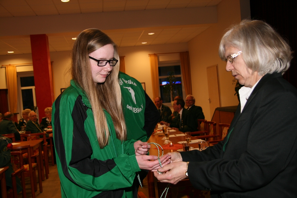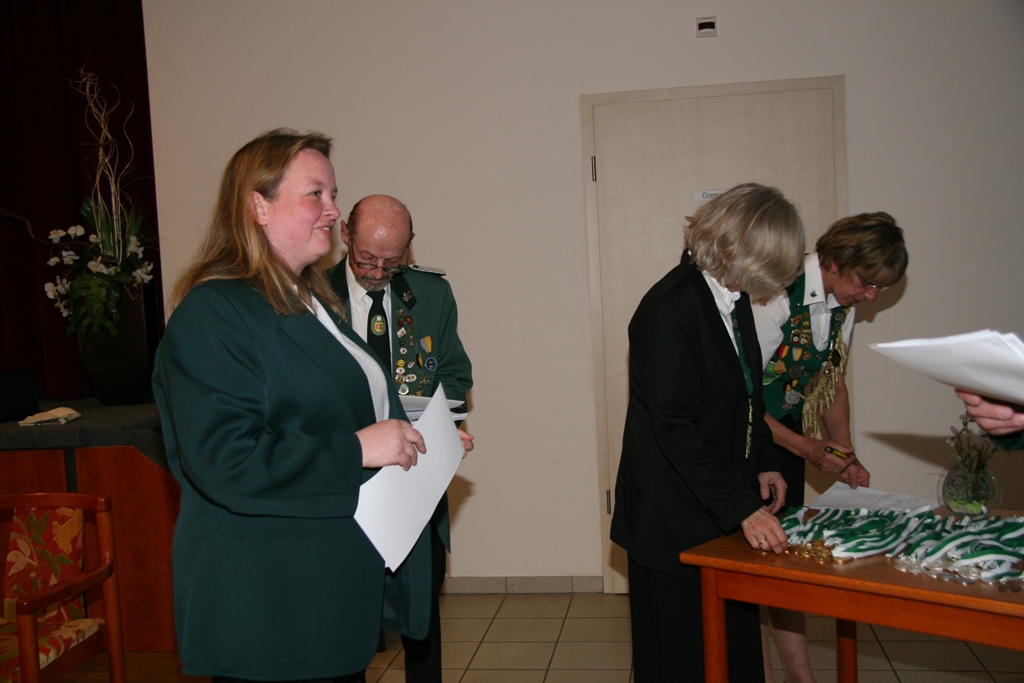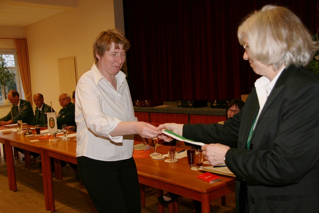 Damensportleiterin Sabine Prochazka erinnerte an das „NWDSB-Prinzessinnenjahr“ von Rosemarie Wowries. Zur Landesverbandsmeisterschaft hatten sich einige Damen in ihren Disziplinen qualifiziert: Marianne Vallan für LG Auflage und KK-Liegendkampf, Karin Husmann KK Liegendkampf, beide vom SV von 1848 Sulingen, Sina Mohrlüder vom SV Ehrenburg mit der Luftpistole und Luftgewehr Freihand, Ortrud Thiele LG Auflage und Rosemarie Wowries LG Auflage und Kleinkaliber Auflage, Sabine Prochazka LG Freihand, LG und KK Auflage und KK 60 Schuß Liegend, alle vom SV Blockwinkel. Rosemarie Wowries qualifizierte sich für die Deutsche Meisterschaft KK Auflage in Hannover. Der zweite LM-Platz in KK Liegend reichte für Sabine Prochazka zur DM in München Hochbrück, dort erreichte sie mit 585 Ringen den hervorragenden 9. Rang. Beim Bezirks-Damenvergleichsschießen in Kirchdorf „sprang“ ein 2. Platz heraus, Tagesbeste bei LG Auflage wurde dort Sabine Prochazka. Damenleiterin Sabine Prochazka bedankte sich bei ihren Schützenschwestern für ihre Unterstützung bei den Wettkämpfen, und wünschte allen ein „Gut Schuß“ im laufenden Wettkampfjahr.