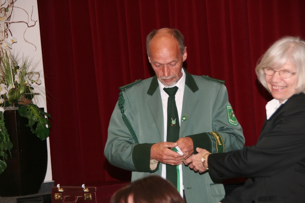Jürgen Lautenbacher vom SV von 1848 Sulingen, erhielt nachträglich von BZ-Vizepräsident Günter Herzig und KV III-Präsident Dieter Lüdeke das Meisterschützenabzeichen verliehen.