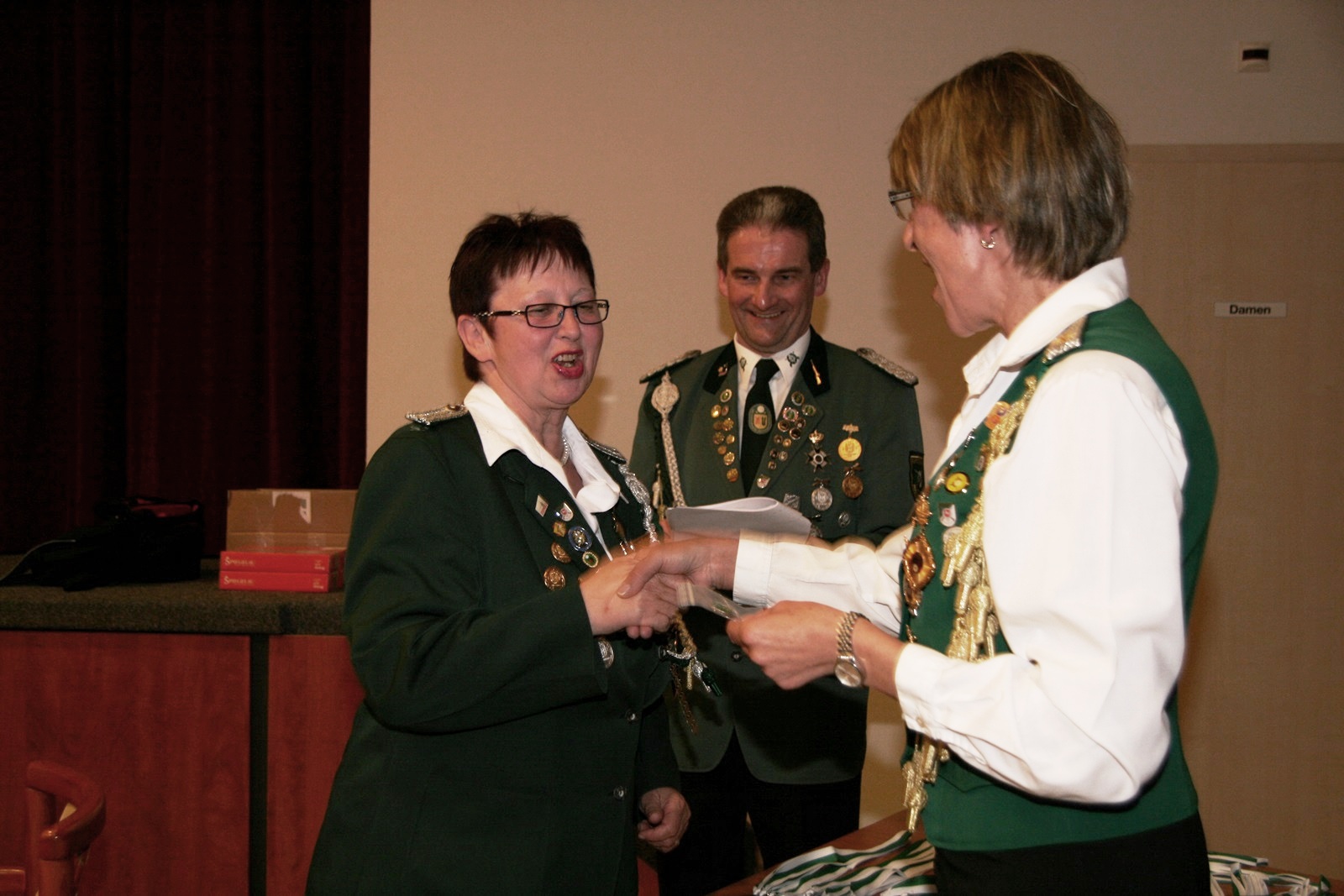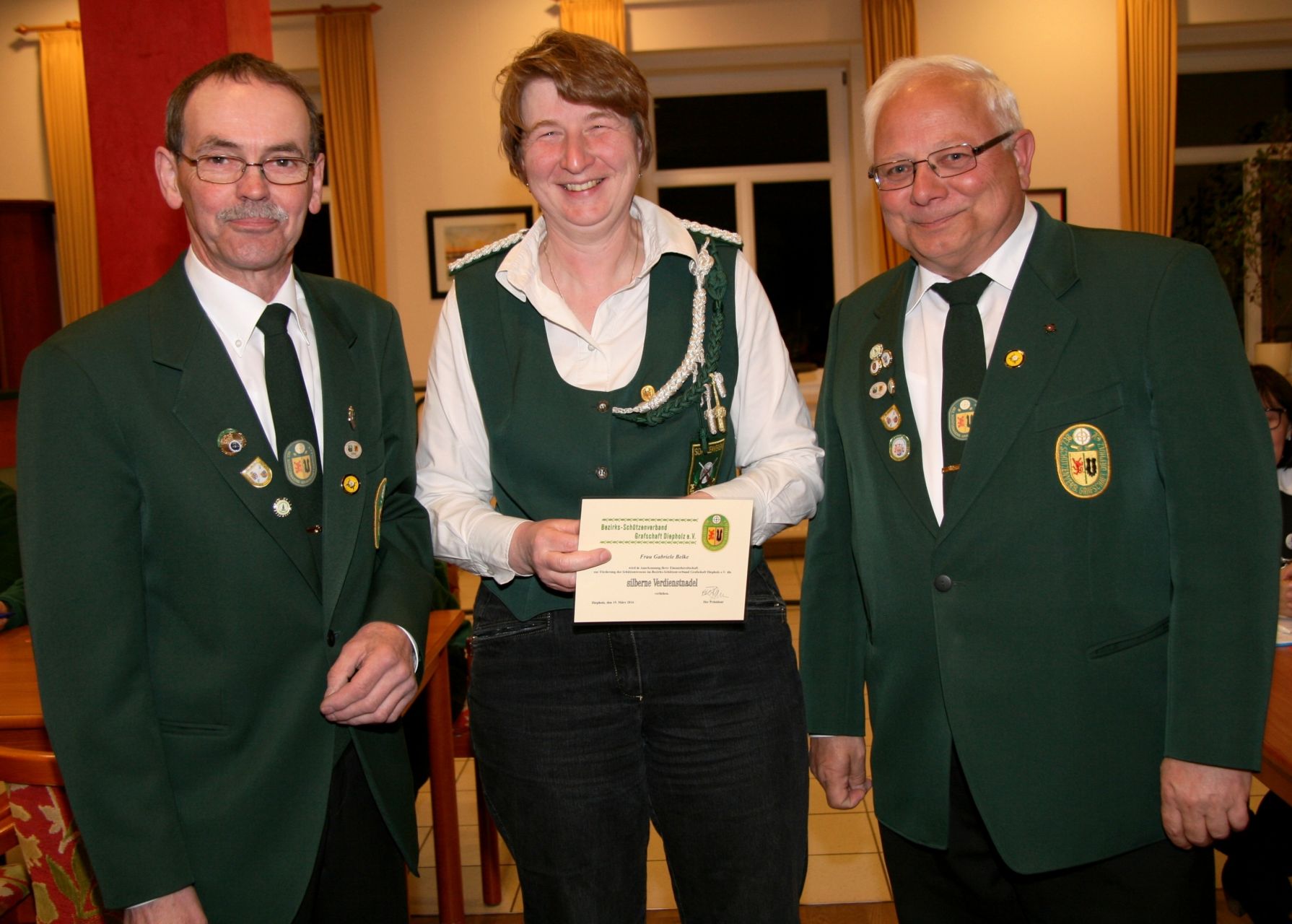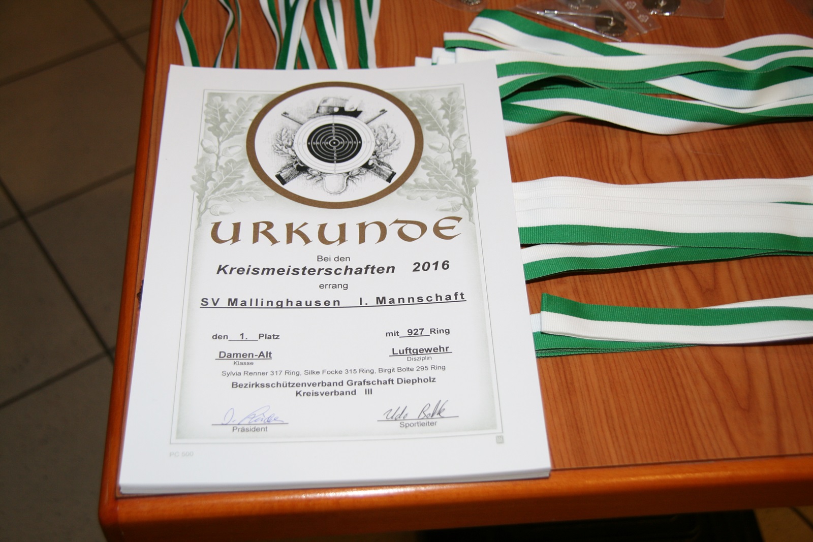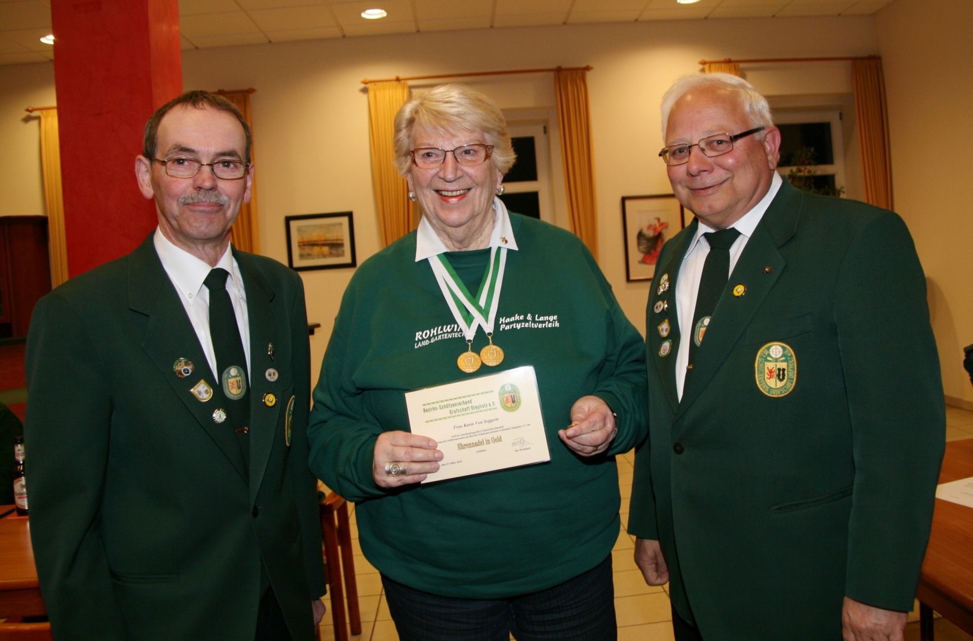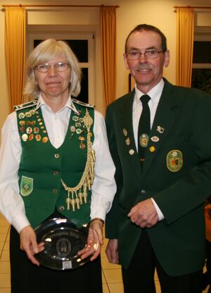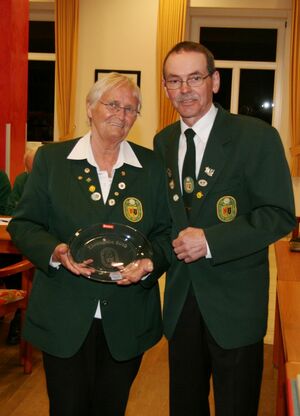 Zwei Schützendamen wurden nachträglich geehrt. Karin von Seggern vom SV von 1848 Sulingen erhielt von BZ-Vizepräsident Günter Herzig die Goldene Ehrennadel des Bezirks und Gabriele Belke vom SV Mallinghausen erhielt von ihm die Silberne Verdienstnadel des Bezirks.