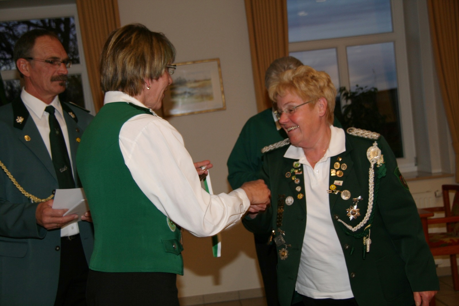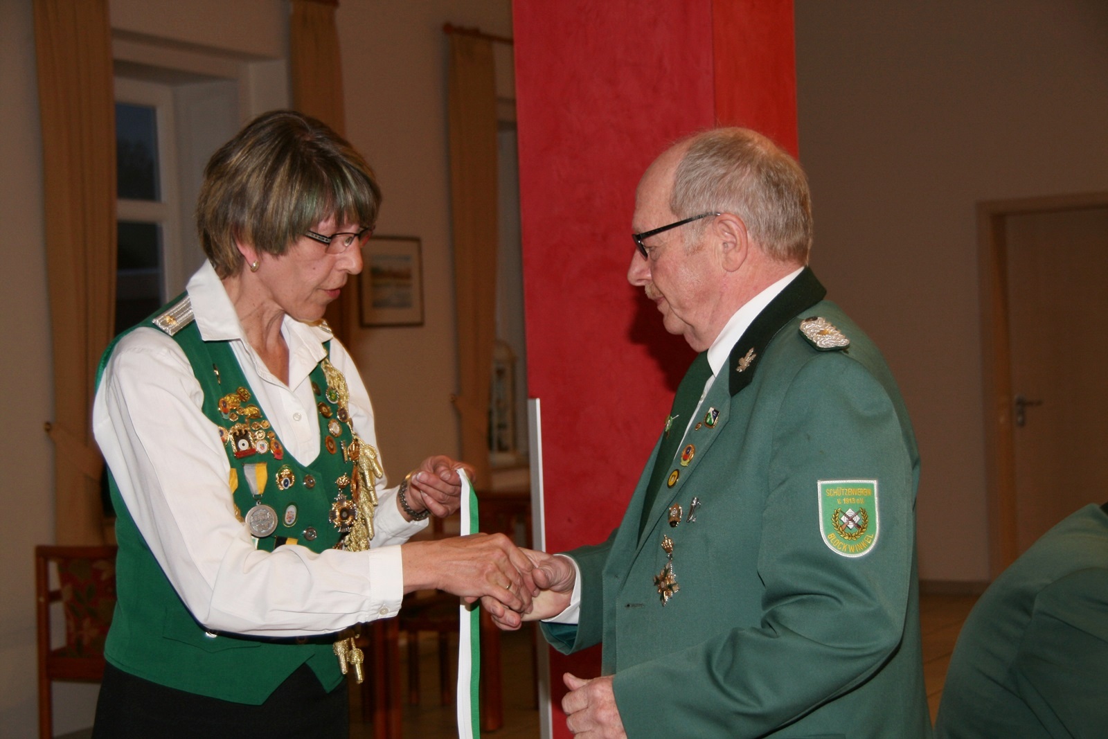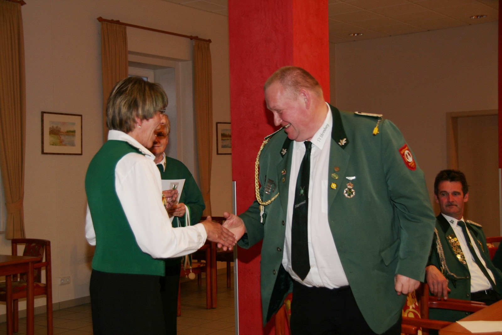 Zwei Schützendamen wurden nachträglich geehrt. Karin von Seggern vom SV von 1848 Sulingen erhielt von BZ-Vizepräsident Günter Herzig die Goldene Ehrennadel des Bezirks und Gabriele Belke vom SV Mallinghausen erhielt von ihm die Silberne Verdienstnadel des Bezirks.