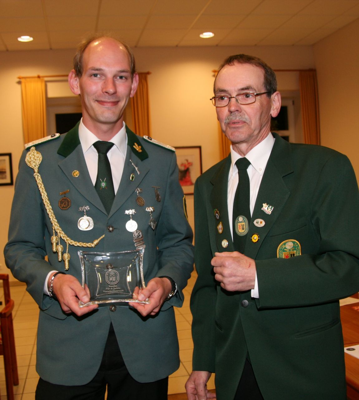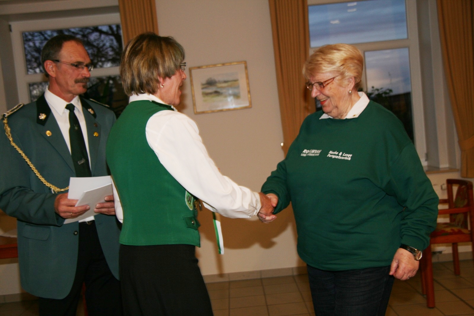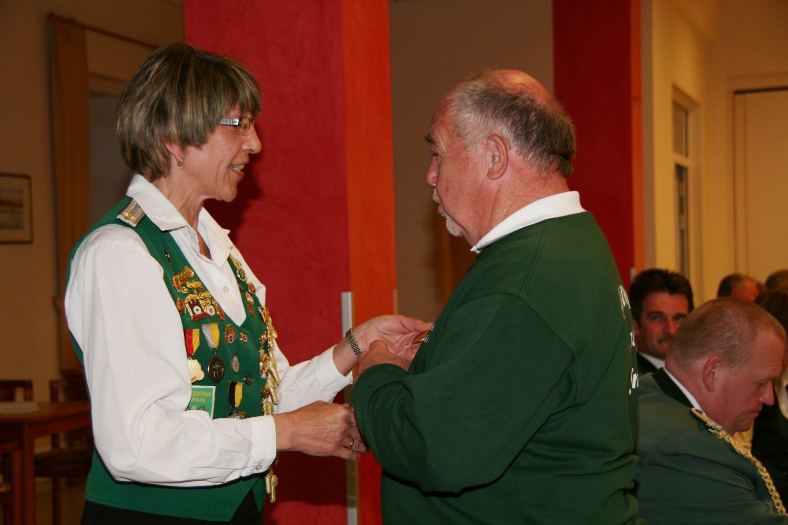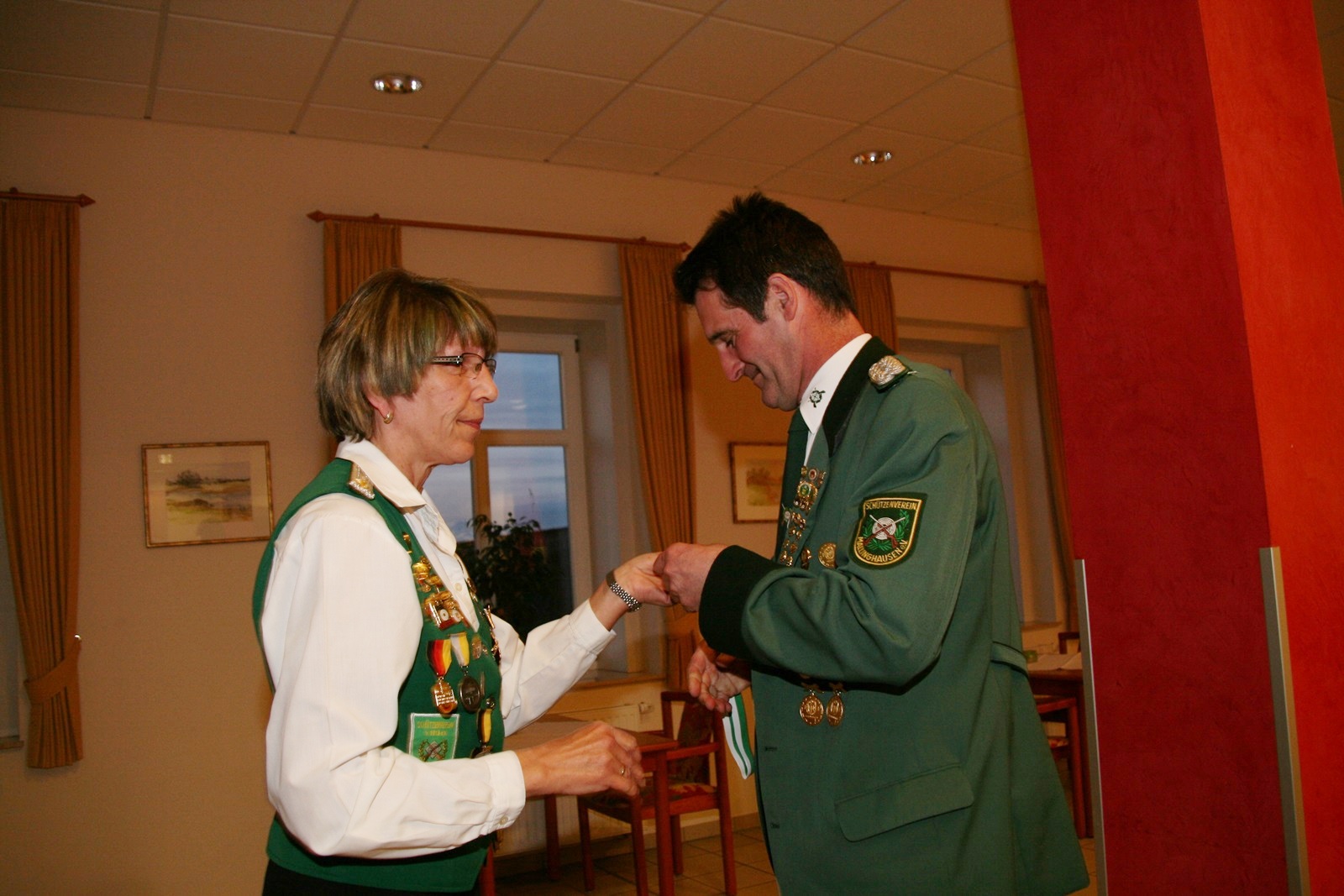 Zwei Schützendamen wurden nachträglich geehrt. Karin von Seggern vom SV von 1848 Sulingen erhielt von BZ-Vizepräsident Günter Herzig die Goldene Ehrennadel des Bezirks und Gabriele Belke vom SV Mallinghausen erhielt von ihm die Silberne Verdienstnadel des Bezirks.